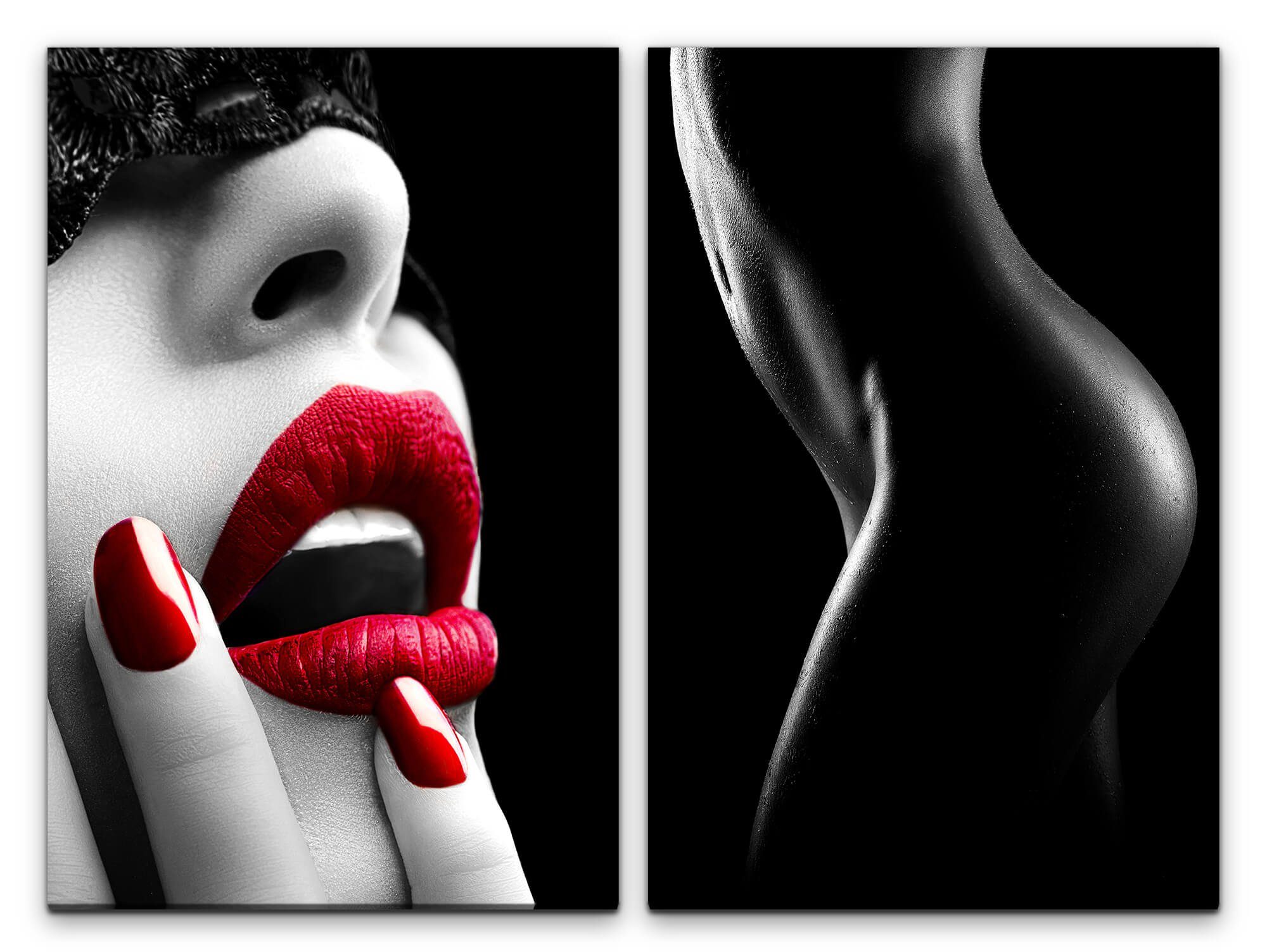 Sinus Art Leinwandbild 2 Bilder je 60x90cm Akt Rote Lippen Sinnlich Verführerisch Erotisch Weiblich