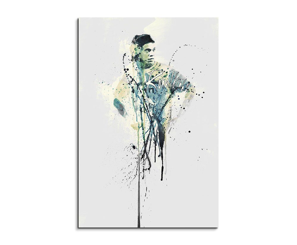 Sinus Art Leinwandbild Ronaldinho 90x60cm Keilrahmenbild Kunstbild Aquarell Art Wandbild auf Leinwand fertig gerahmt Origi