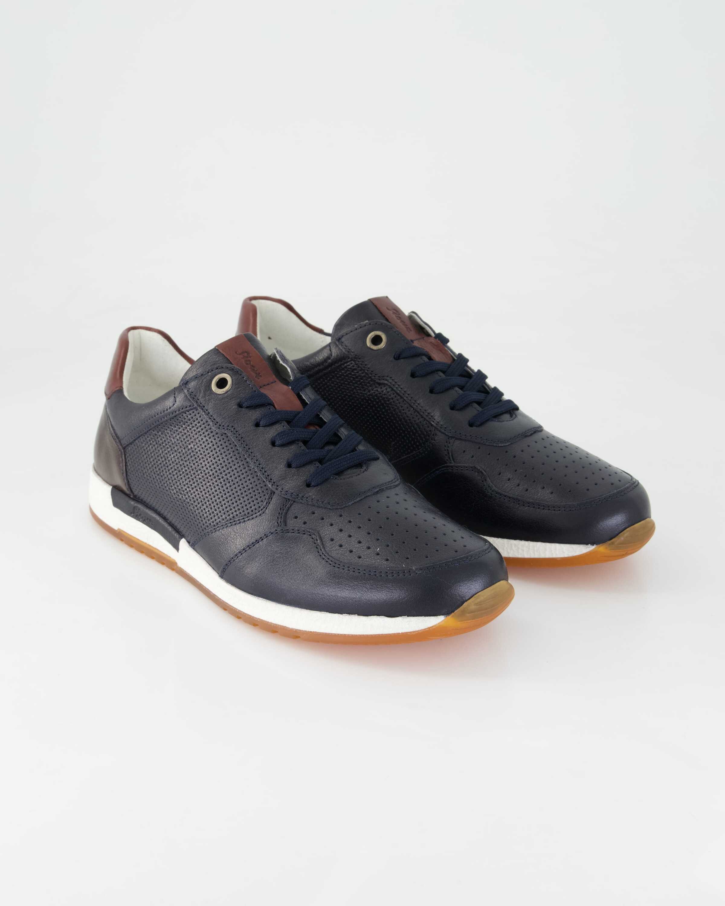 Der Sioux Herren Low Sneaker ROJARO-718 in Braun aus Glattleder überzeugt mit seinem eleganten Design und praktischen Details. Der verstärkte Zehen- und Fersenbereich sorgt für Stabilität und Schutz, während seitliche Prägungen und das gelochte Schuhdeck für eine ansprechende Optik sorgen. Die rutschhemmende, flexible Laufsohle bietet sicheren Halt, während das gepolsterte, herausnehmbare Lederfußbett für zusätzlichen Komfort sorgt. Die komfortable Schuhweite garantiert eine angenehme Passform. Modetipp: Dieser Sneaker lässt sich hervorragend zu smart-casual Outfits kombinieren und passt ideal zu Jeans oder Chinos.