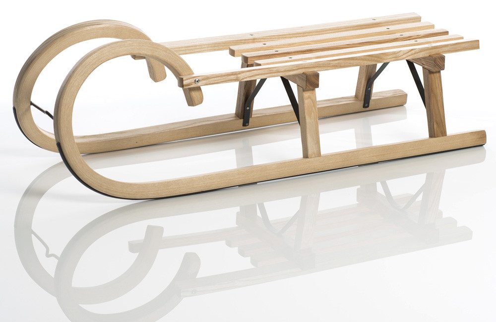 Ein traditioneller Hörnerrodel von Sirch, der auch in großen Stückzahlen nach wie vor nach alten Handwerksregeln gefertigt wird. Die dabei zur Anwendung gebrachte Massivholzbiegetechnik verleiht jedem Schlitten den unverwechselbaren Charakter eines Unikats. Все Holzteile sind aus massivem Eschenholz gefertigt, welches eine sehr hohe Elastizität besitzt. Der Rodel ist mit einem der neuen Spielzeugrichtlinien entsprechendem Lack behandelt. Die Sitzfläche besteht aus fünf geschraubten Holzlatten.