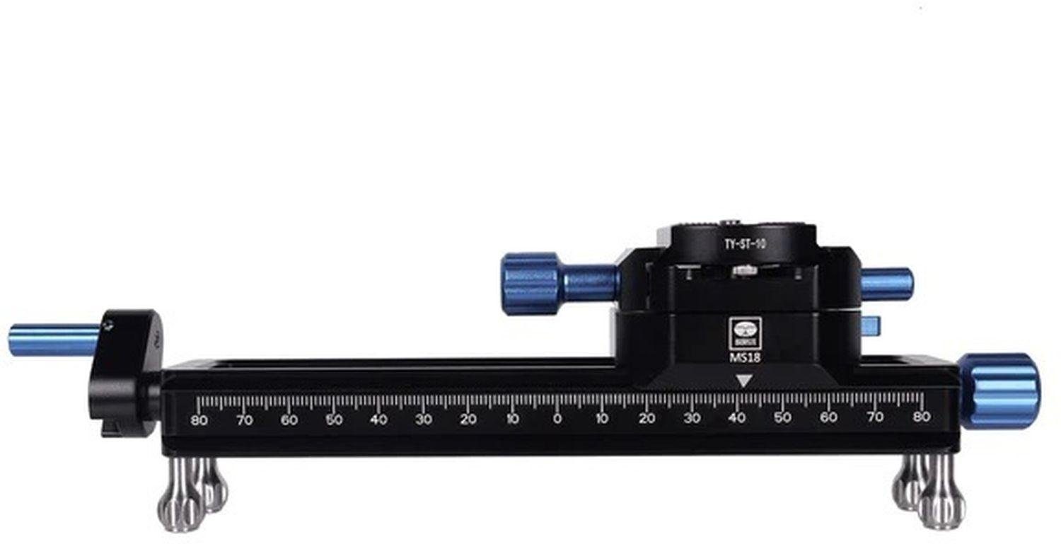 Diese Professionelle SIRUI MS18 Makroschlitten / Schiene mit einer eingravierten Skala sorgt es für eine bessere Reproduzierbarkeit.