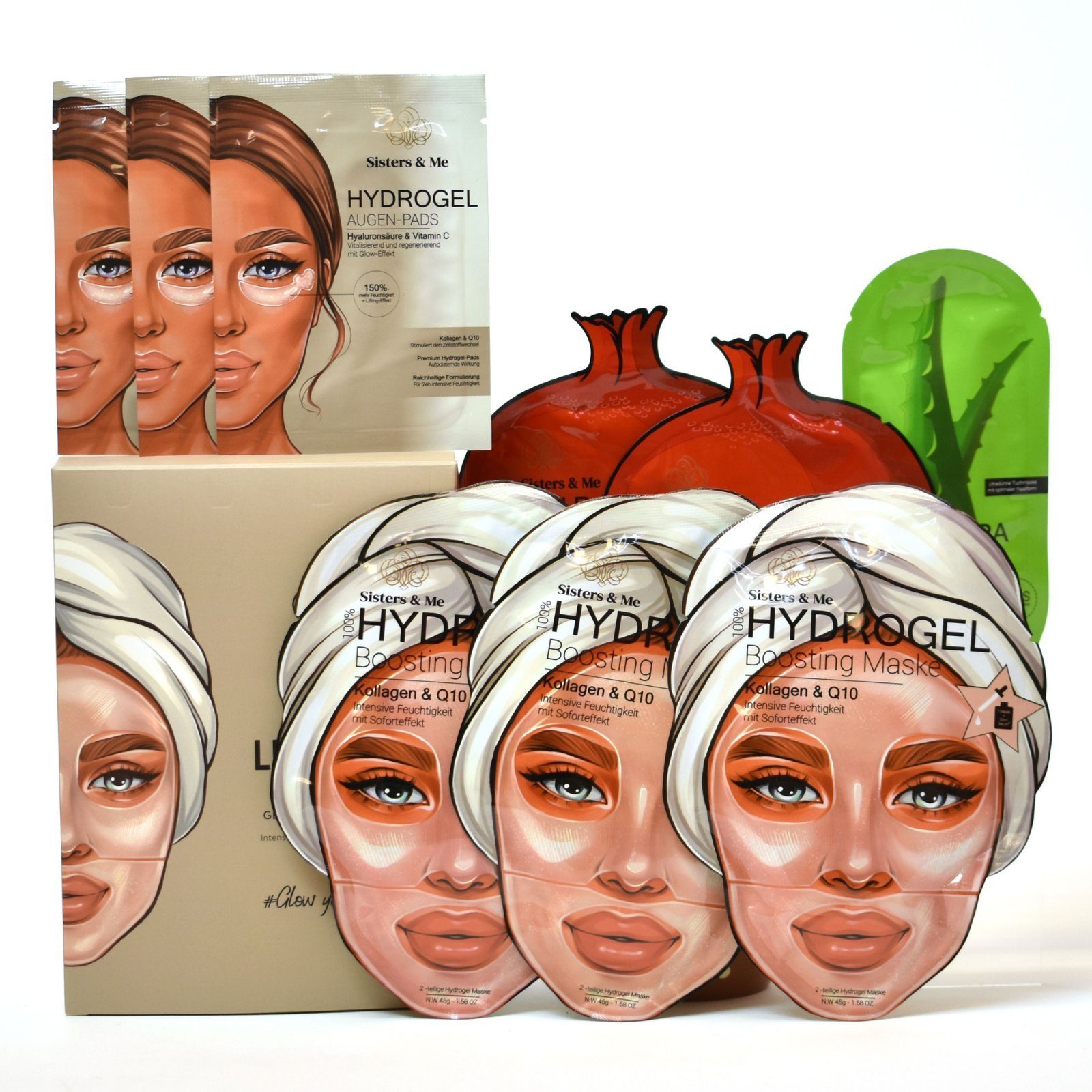 Inhaltsstoffe | HYDROGEL BOOSTING MASKE: INGREDIENTS: AQUA, GLYCERIN, PROPYLENE GLYCOL, BETAINE, TREHALOSE, CHONDRUS CRISPUS POWDER, CERATONIA SILIQUA GUM, BERGENIA CRASSIFOLIA ROOT EXTRACT, ALOE BARBADENSIS LEAF EXRACT, HYDROLYZED COLLAGEN, TOCOPHEROL, HYDROXYETHYLCELLULOSE, MATRINE, HYDROXYACETOPHENONE, 1,2-HEXANEDIOL, CARBOMER, ARGININE, SODIUM HYALURONATE, SEA SALT, UBIQUINONE------GRANATAPFEL: INGREDIENTS: AQUA, GLYCERIN, PROPYLENE GLYCOL, SEAWEED EXTRACT, RED POMEGRANTE EXTRACT, CRANBERRY EXTRACT, HONEY EXTRACT, SQUALANE, SACCHARIDE ISOMERATE, SODIUM HYALURONATE, CARBOMER, XANTHAM GUM, GLYCERYL STEARATE, POTASSIUM SORBATE-----Aloe Vera: INGREDIENTS: AQUA, GLYCERIN, ALOE BARBADENSIS LEAF JUICE, PROPYLENE GLYCOL, CENTELLA ASIATICA EXTRACT, SQUALANE, SACCHARIDE ISOMERATE, SODIUM HYALURONATE, CARBOMER, XANTHAM GUM, GLYCERYL STEARATE, POTASSIUM SORBATE----AUGEN PADS WEISS: INGREDIENTS: AQUA, GLYCERIN, PROPYLENE GLYCOL, BETAINE, CHONDRUS CRISPUS POWDER, CERATONIA SILIQUA GUM, TREHALOSE, ASCORBIC ACID, BERGENIA CRASSIFOLIA ROOT EXTRACT, ALOE BARBADENSIS LEAF EXRACT, HYDROLYZED COLLAGEN, MATRINE, TOCOPHEROL, HYDROXYPHENYL PROPAMIDOBENZOIC ACID, PENTYLENE GLYCOL, SODIUM HYALURONATE, SEA SALT, HYDROXYETHYLCELLULOSE, CARBOMER, HYDROXYACETOPHENONE, 1,2-HEXANEDIOL, ARGININE, UBIQUINONE |