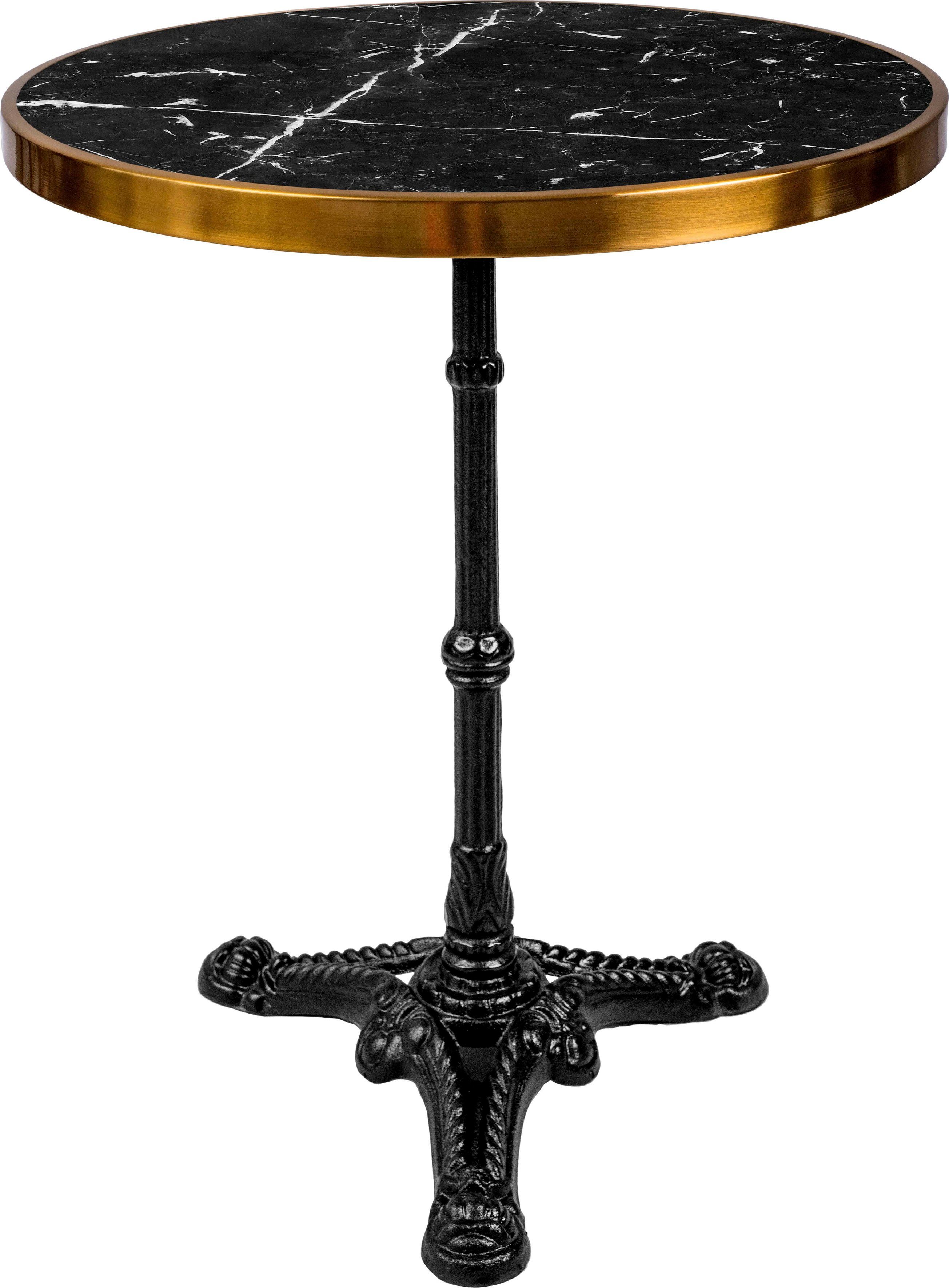 Im eleganten Stil präsentiert sich der runde Bistrotisch »This & That« aus dem Hause SIT. Er ist hervorragend für kleine Räume oder Nischen geeignet und setzt dekorative Akzente in deinen vier Wänden. Er wird durch sein Säulengestell mit dem verzierten Fuß und der stilvollen Tischplatte zum Blickfang im Raum. Sie ist aus poliertem Marmor gefertigt und besticht durch ihre kontrastfarbene Messingeinfassung in hochglänzender, edler Optik. Für einen stabilen Stand des Tisches besteht das Gestell aus Gusseisen, das hochwertig lackiert ist. Insgesamt stellt dir das Tischmöbel pflegeleichte Oberflächen zur Verfügung. Lässt sich vielseitig in Wohn-/Essbereich, Flur oder Küche kombinieren: der runde Bistrotisch »This & That« von SIT.
