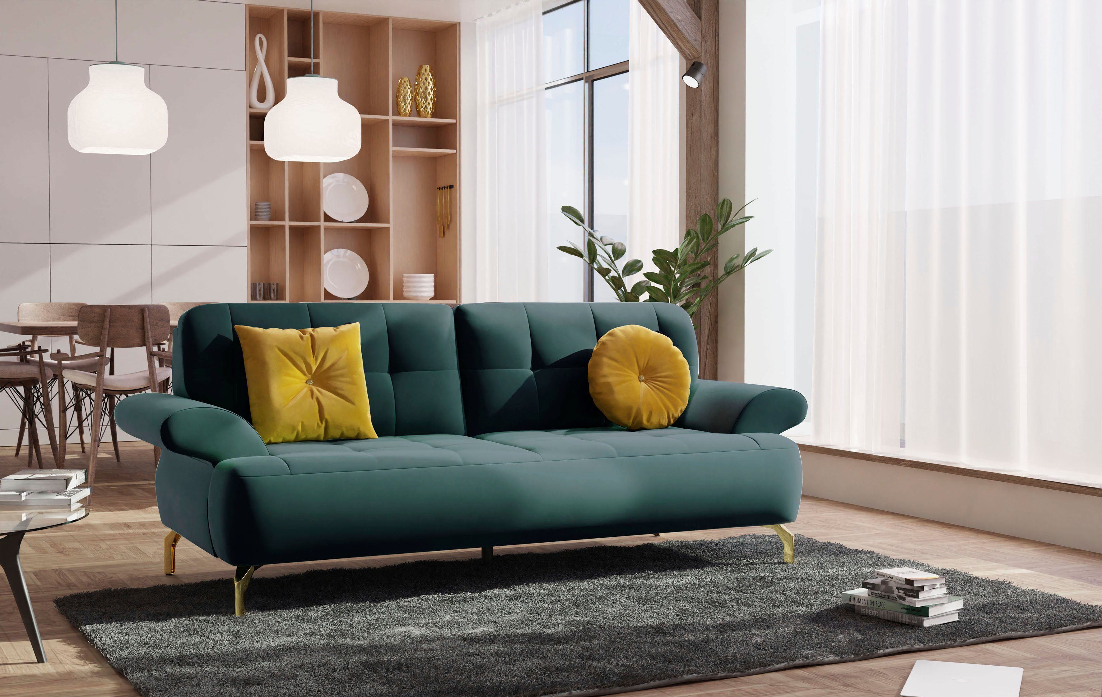 Dieser 2,5-Sitzer »Orient 1« von sit&more ist mit PUR-Schaumstoff gepolstert, der für eine gute Sitzqualität und lange Lebensdauer steht. Ein weiterer Vorteil sind die passenden Zierkissen, die nicht nur schöne Deko-Element sind, sondern auch für noch mehr Komfort sorgen. Die maximale Belastbarkeit pro Sitzplatz liegt bei einem Gewicht von 110 Kilogramm. Der Bezug aus Samtoptikstoff verleiht ihm eine weiche und samtartige Oberfläche. Dieses Modell wurde von Hand gefertigt.