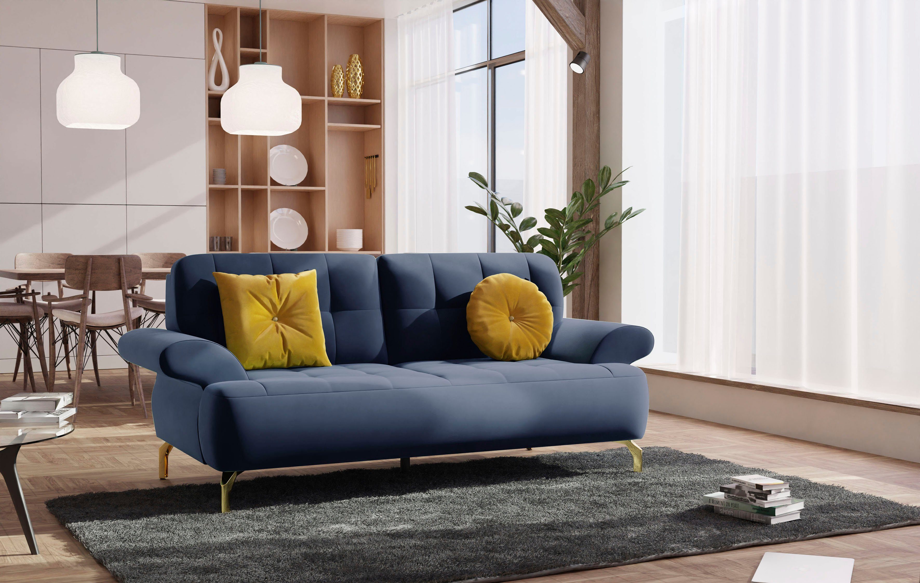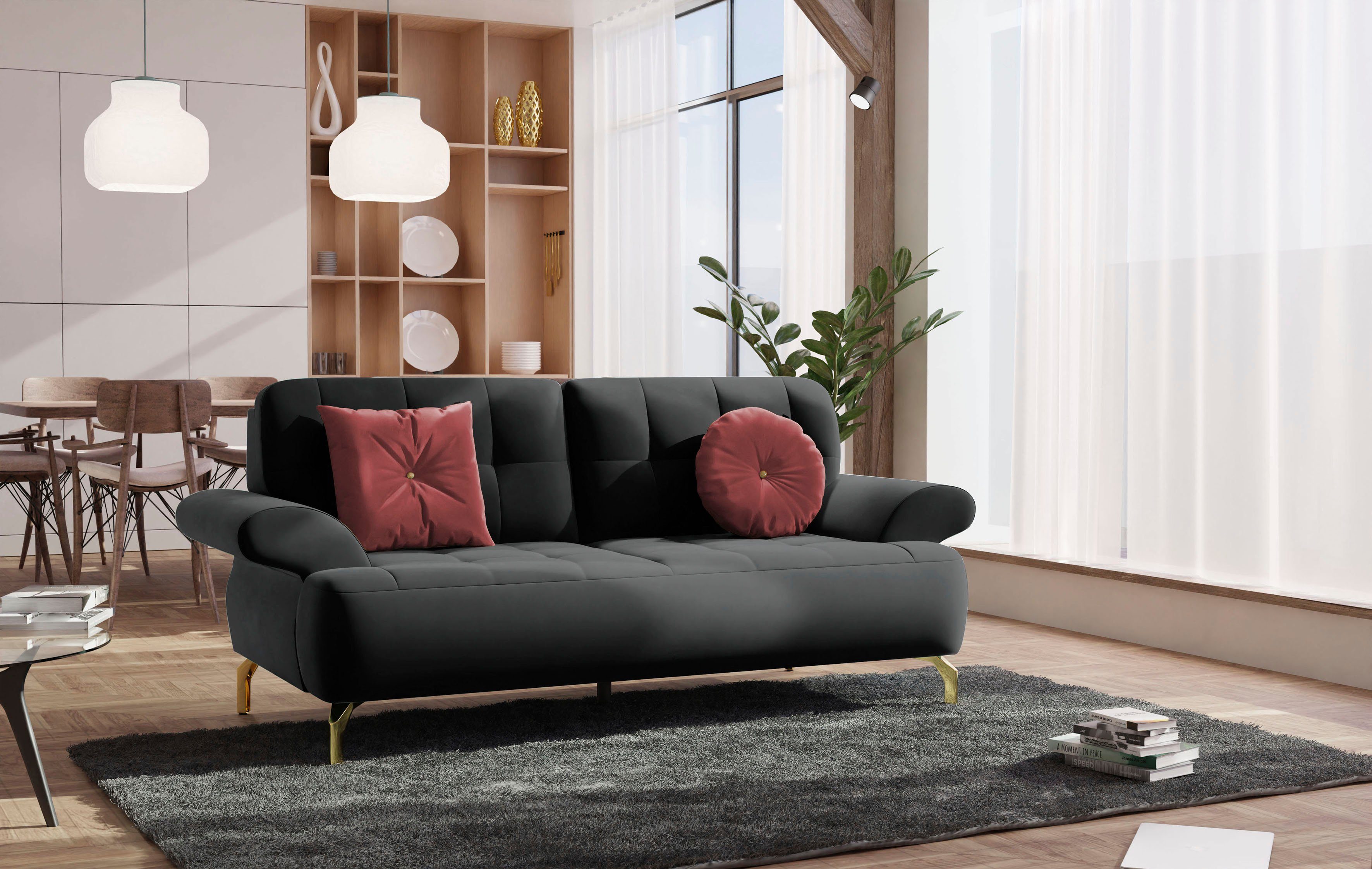 Wissenswertes | Zum Lieferumfang gehören 1 Zierkissen á 45x45 cm und 1 rundes Zierkissen mit einem Ø von 45 cm. Die Kissen sind jeweils zum Sofa farblich abgesetzt. |