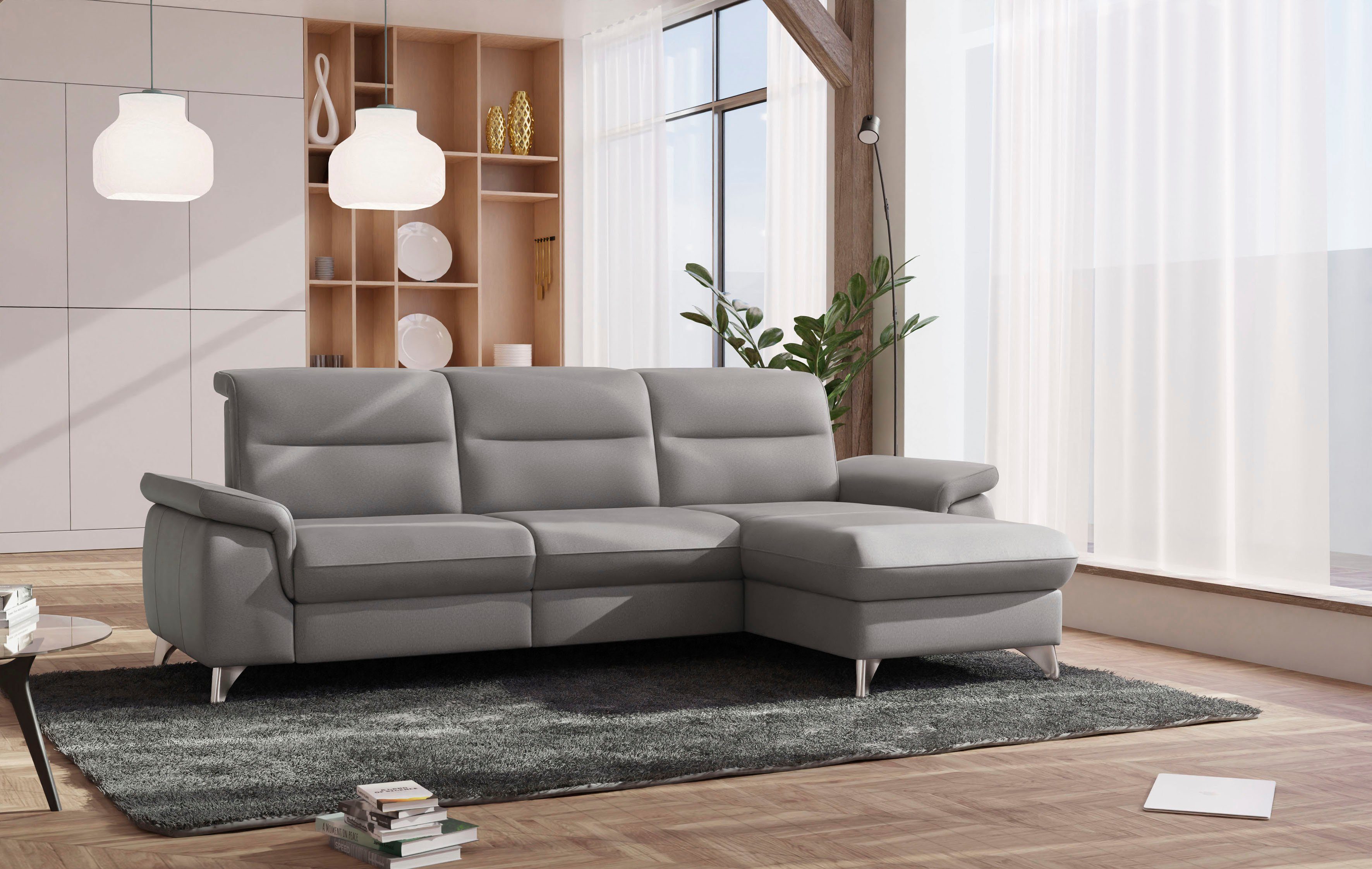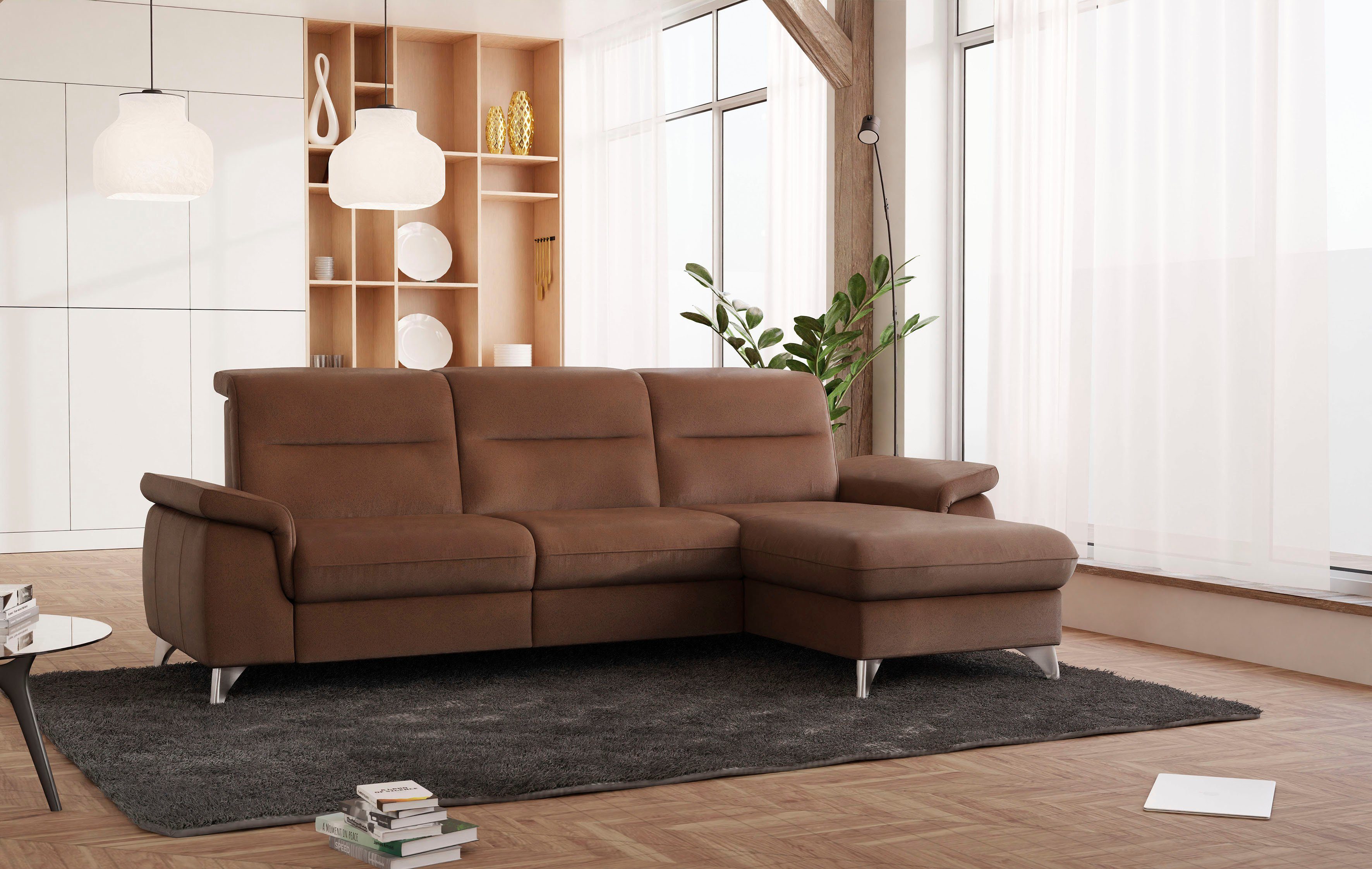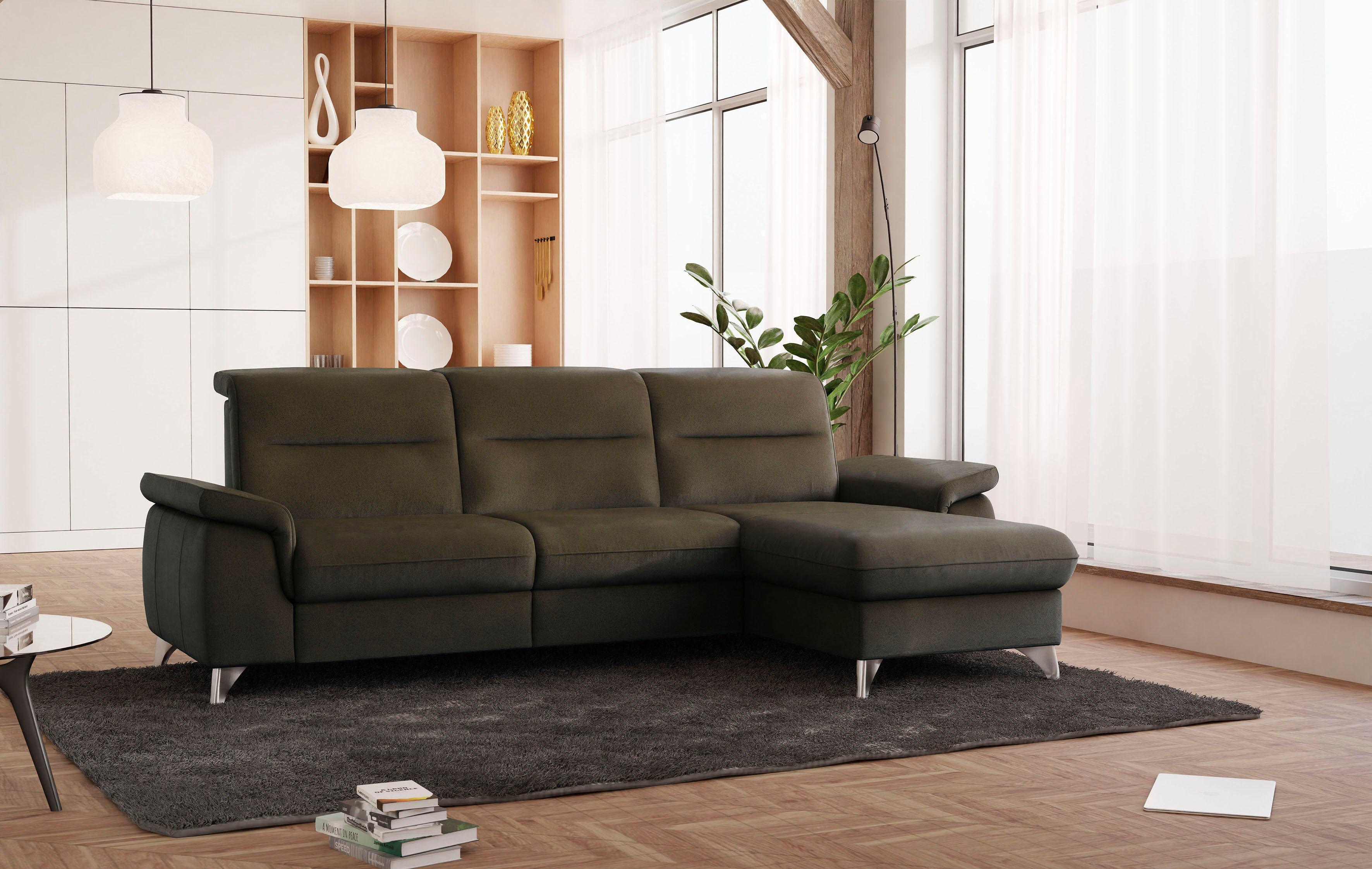 Durch die hochwertige Wellenunterfederung wird die Sitzfläche des Ecksofas »Astoria L-Form« von sit&more gut gefedert und bleibt dauerhaft elastisch. Beim Ecksofa befindet sich die Recamiere, von vorne betrachtet, rechts. Bei etwa 110 Kilogramm liegt die maximale Belastbarkeit pro Sitzplatz. Die Luxus-Microfaser ALTARA NUBUCK® neigt kaum zur Fusselbildung und sorgt für eine softe und glatte Oberfläche mit guten Pflegeeigenschaften. Aus Liebe zum Detail wurde dieses Modell von Hand angefertigt.