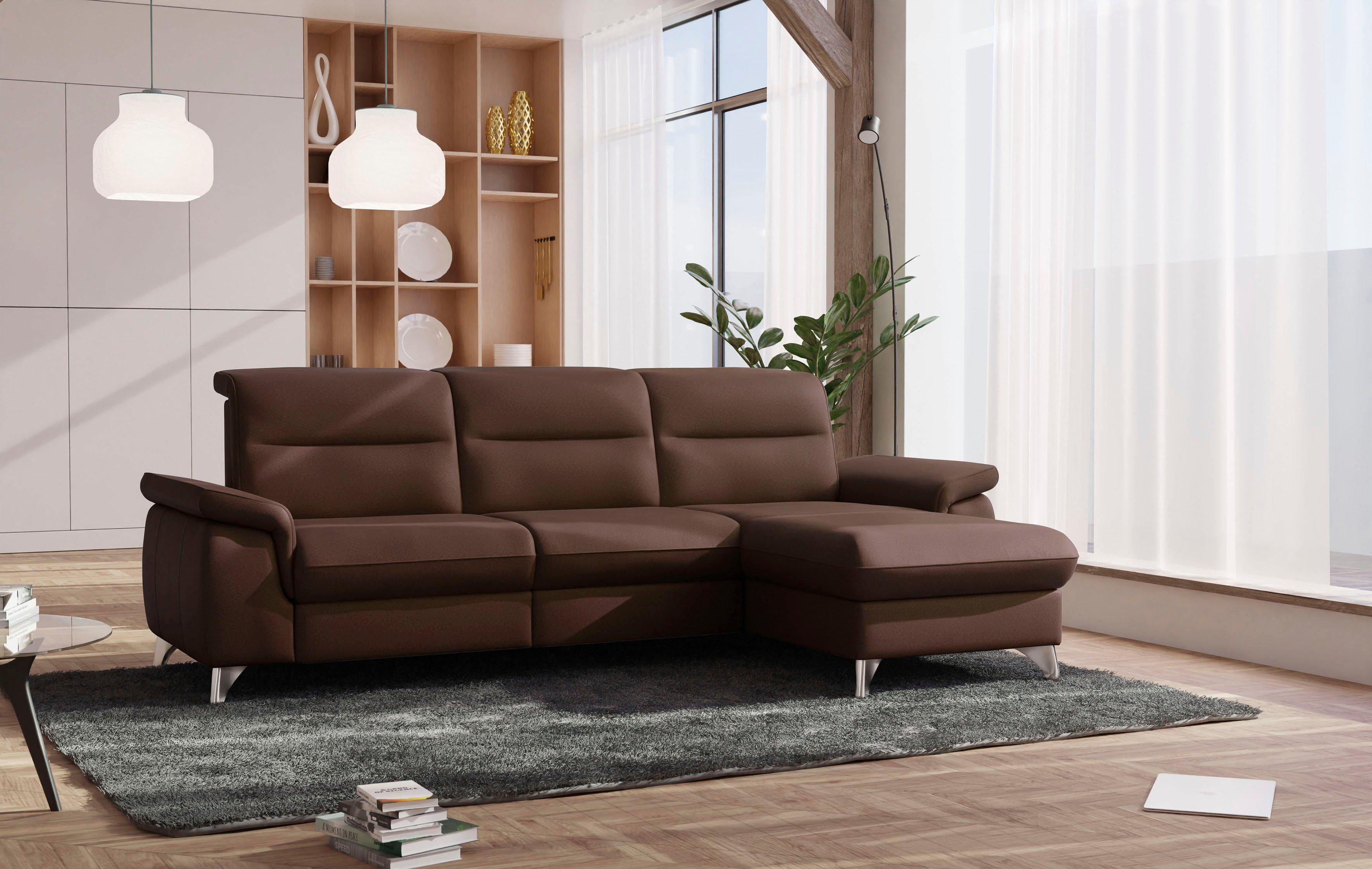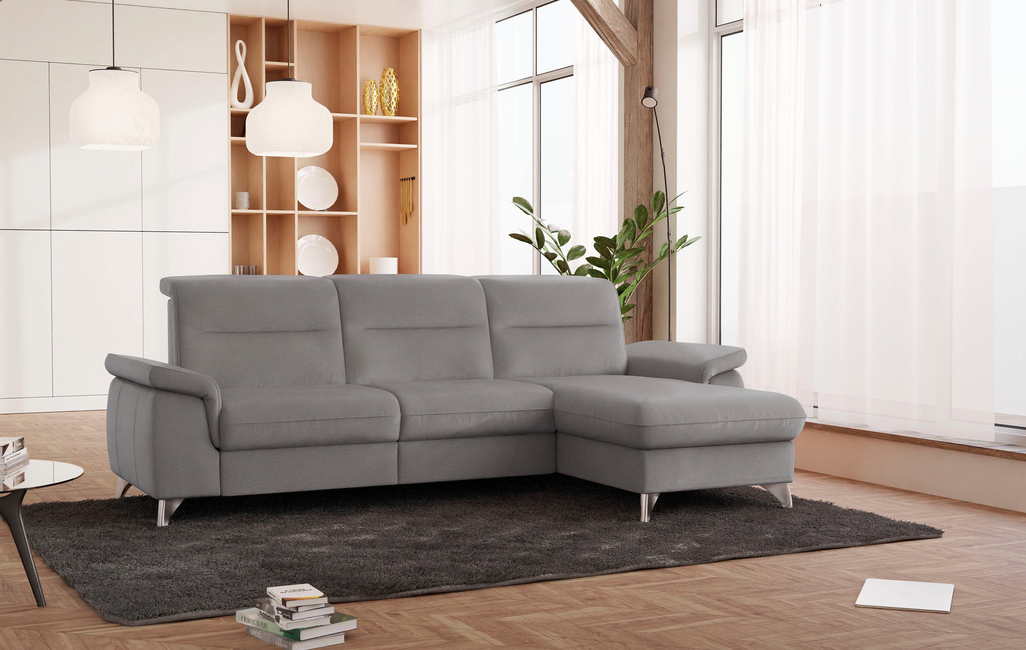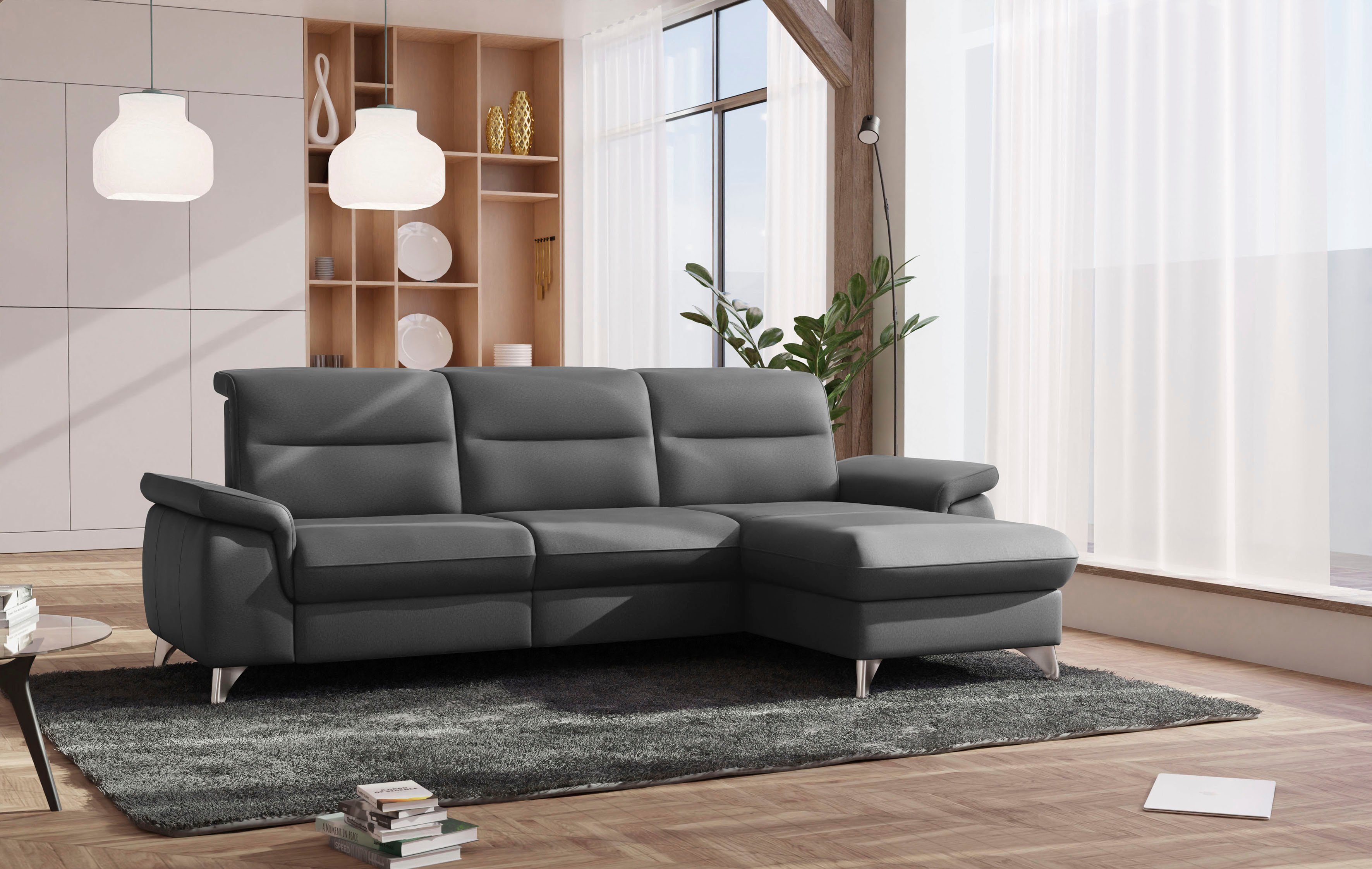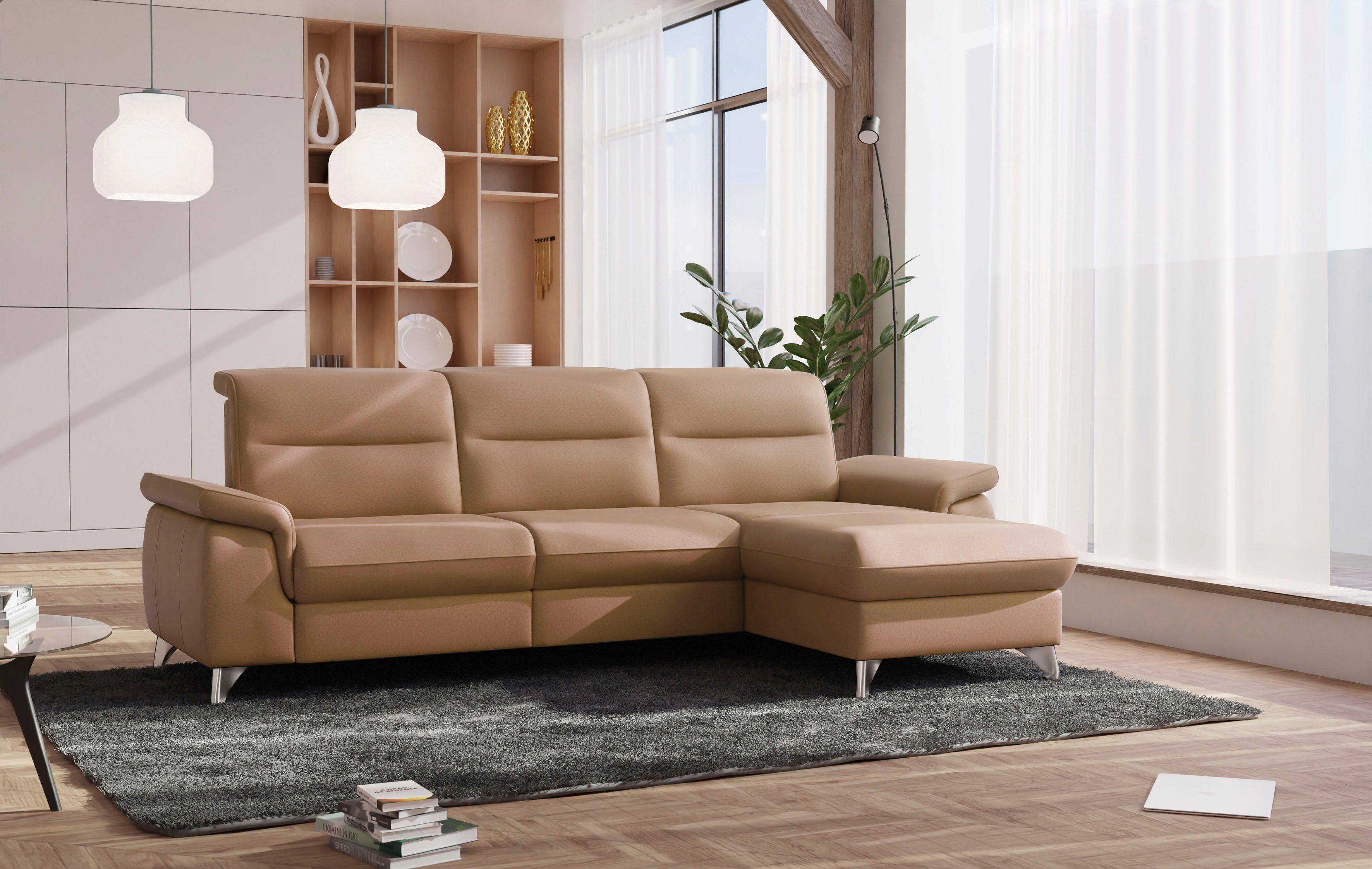 Durch die hochwertige Wellenunterfederung wird die Sitzfläche des Ecksofas »Astoria L-Form« von sit&more gut gefedert und bleibt dauerhaft elastisch. Beim Ecksofa befindet sich die Recamiere, von vorne betrachtet, rechts. Bei etwa 110 Kilogramm liegt die maximale Belastbarkeit pro Sitzplatz. Die Luxus-Microfaser ALTARA NUBUCK® neigt kaum zur Fusselbildung und sorgt für eine softe und glatte Oberfläche mit guten Pflegeeigenschaften. Aus Liebe zum Detail wurde dieses Modell von Hand angefertigt.