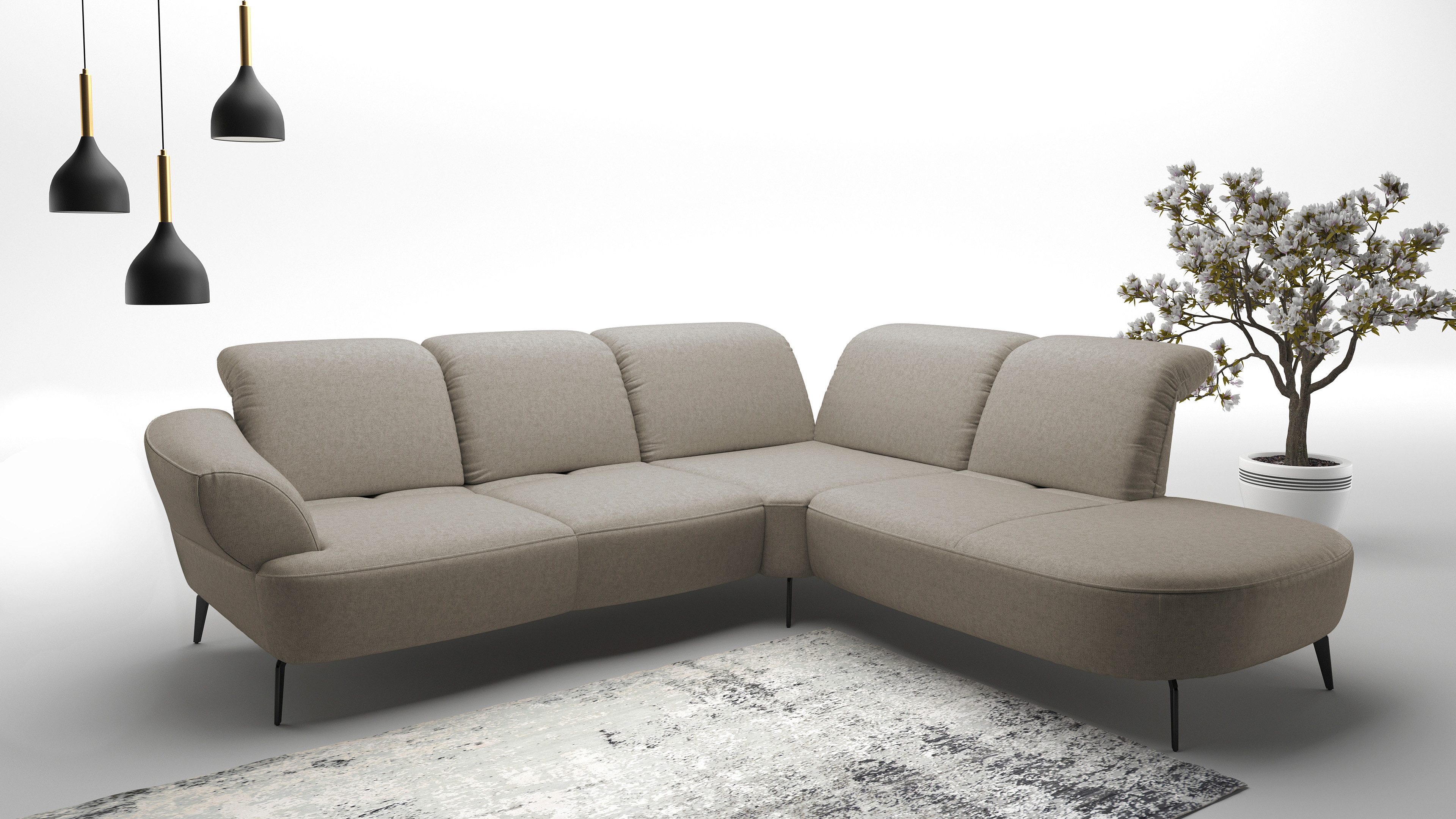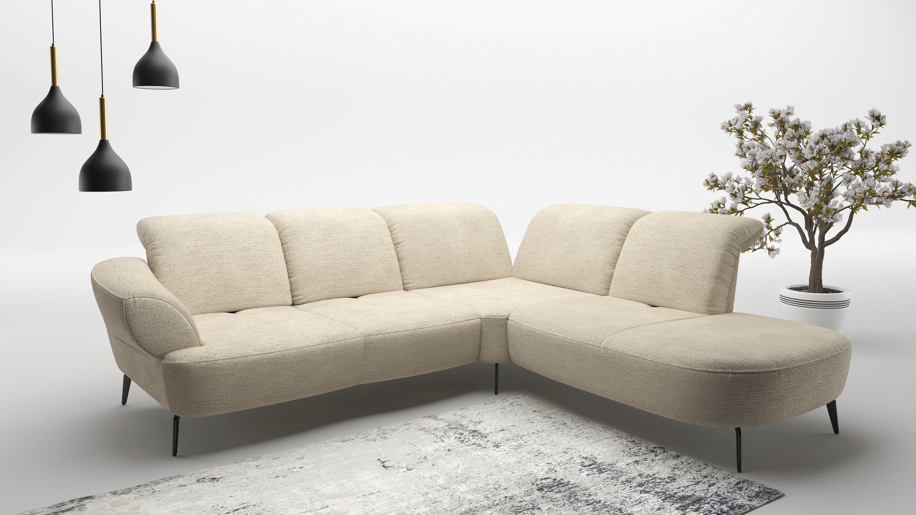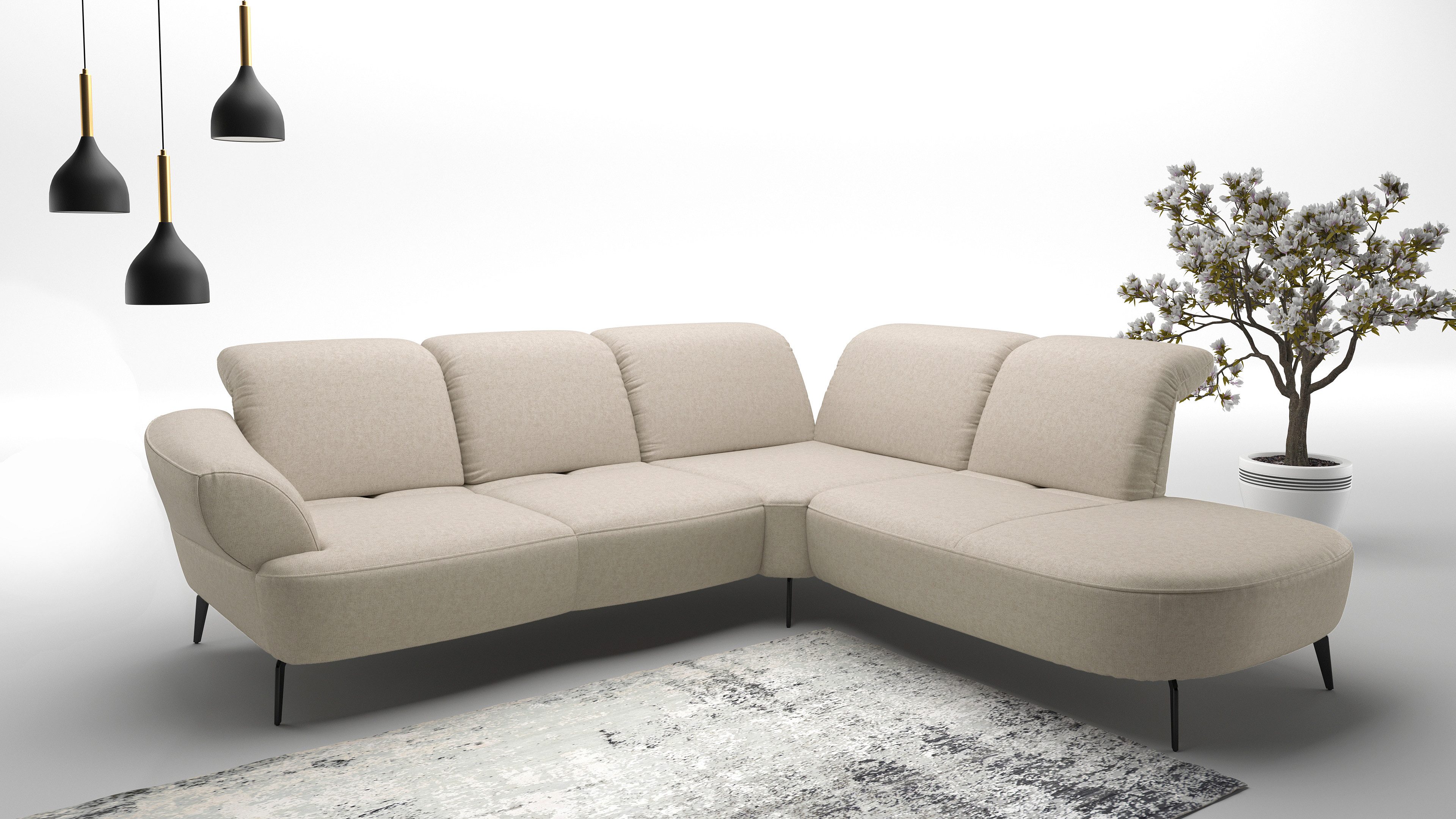 Dieses Ecksofa »Dance, L-Form, inkl. Sitztiefenverstellung« von sit&more bietet dir dank der Wellenunterfederung hohen Sitzkomfort und Tragfähigkeit. Die Couch ist manuell verstellbar, sodass du die Ausrichtung mit einer einfachen Bewegung anpassen kannst. Beim Ecksofa befindet sich die lange Ottomane, von vorne betrachtet, auf der rechten Seite. Bei etwa 400 Kilogramm liegt die maximale Belastbarkeit. Die mattschwarzen Füße aus Metall sind korrosionsbeständig und besonders langlebig. Dieses Modell wurde von Hand gefertigt.