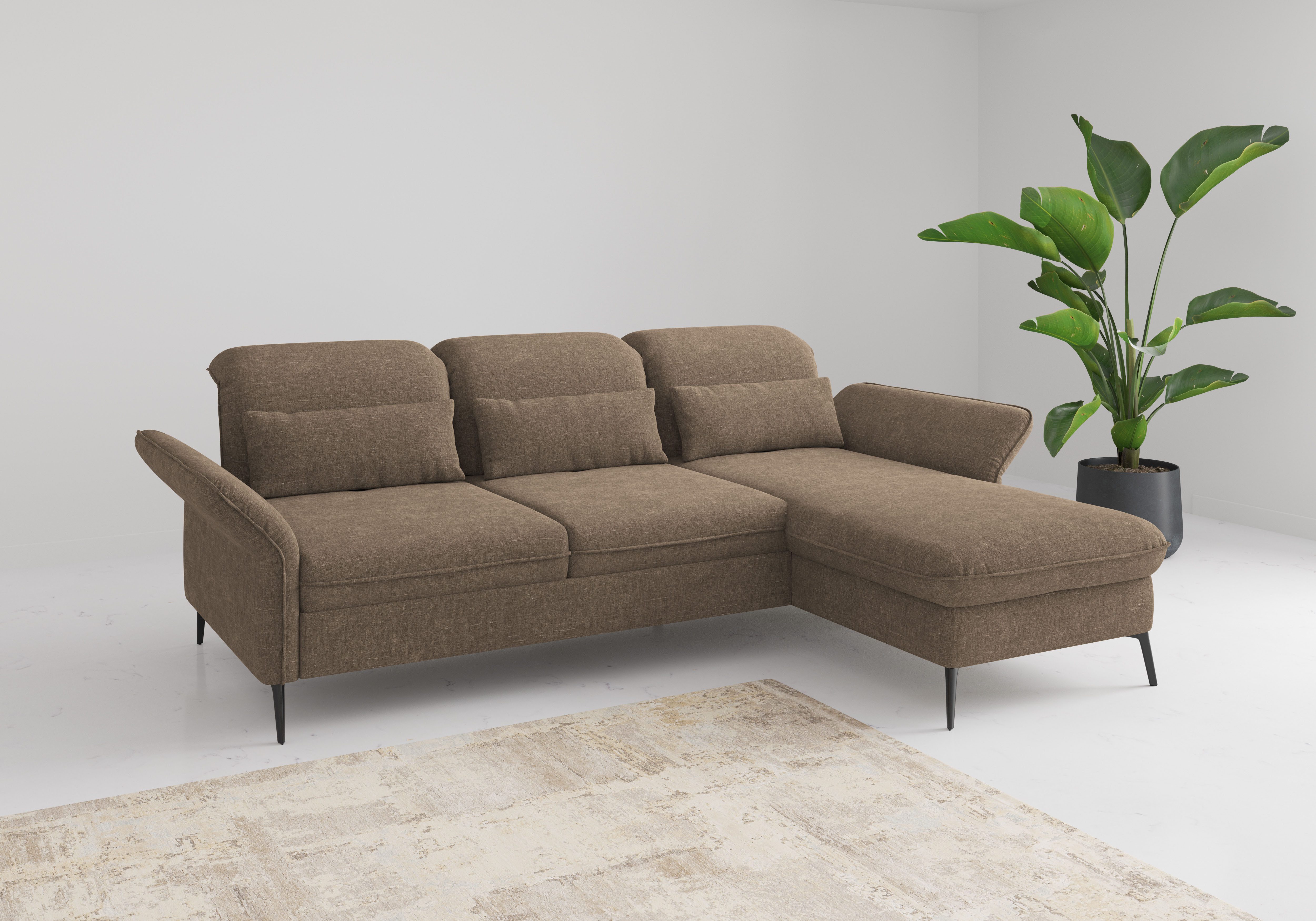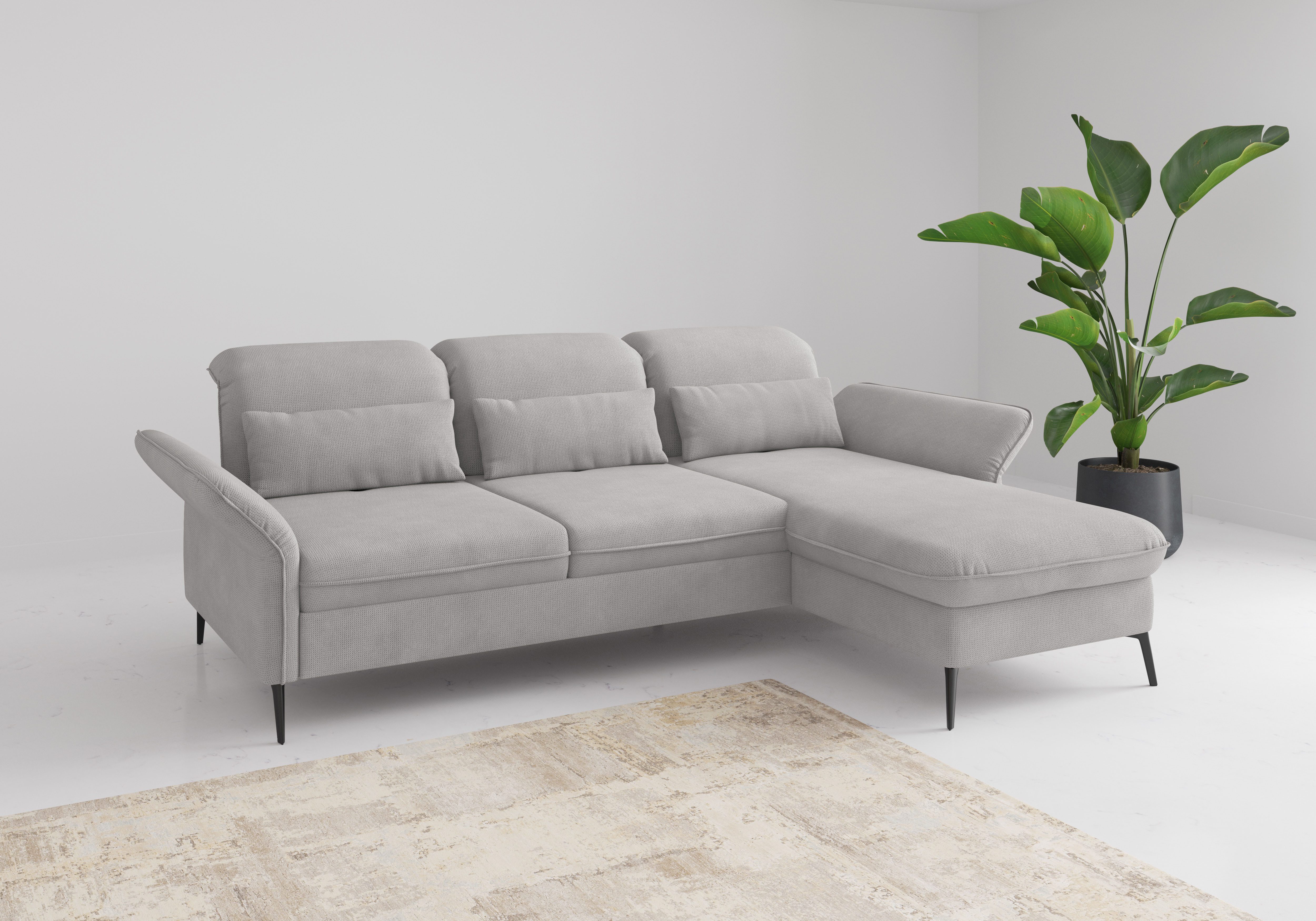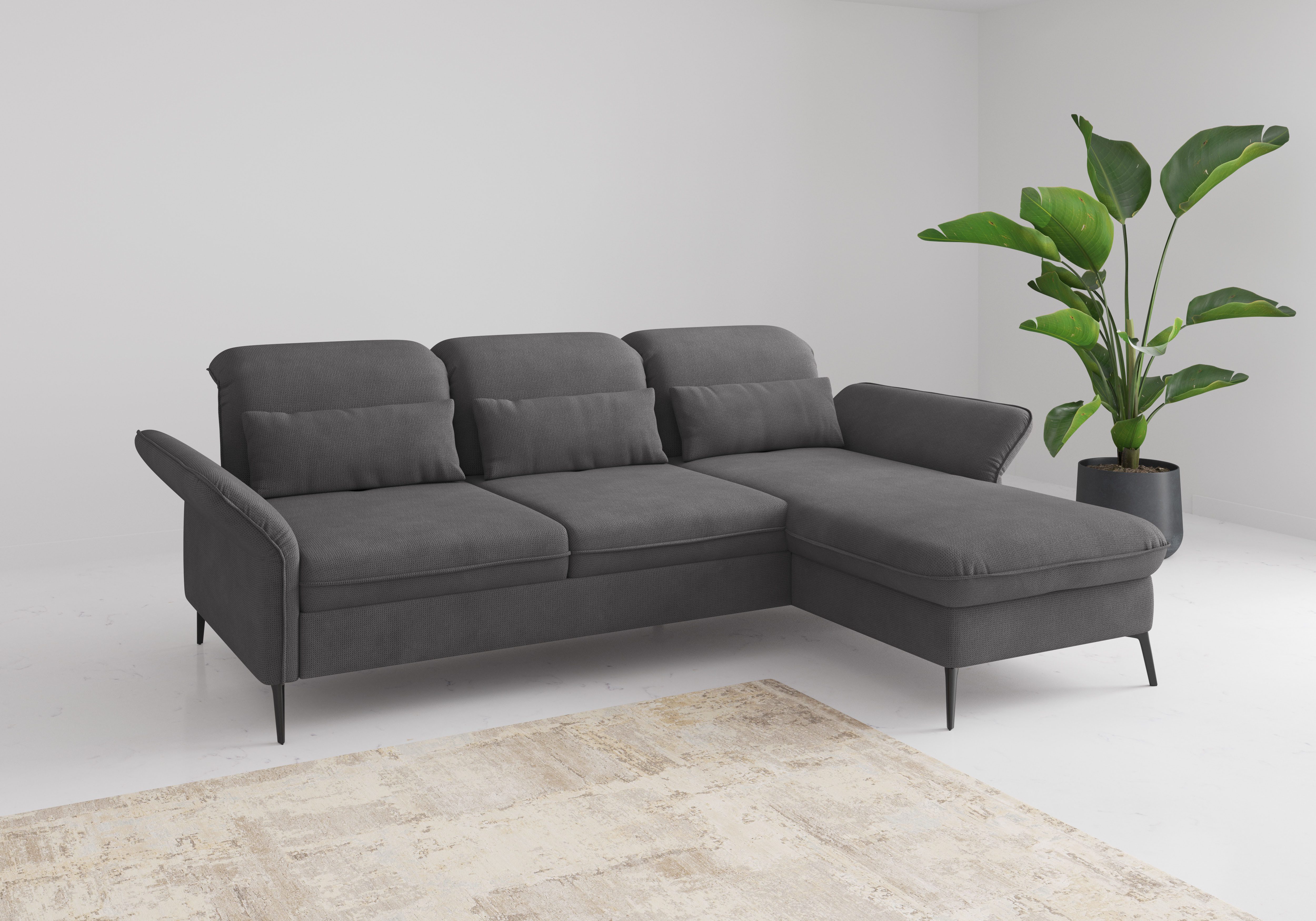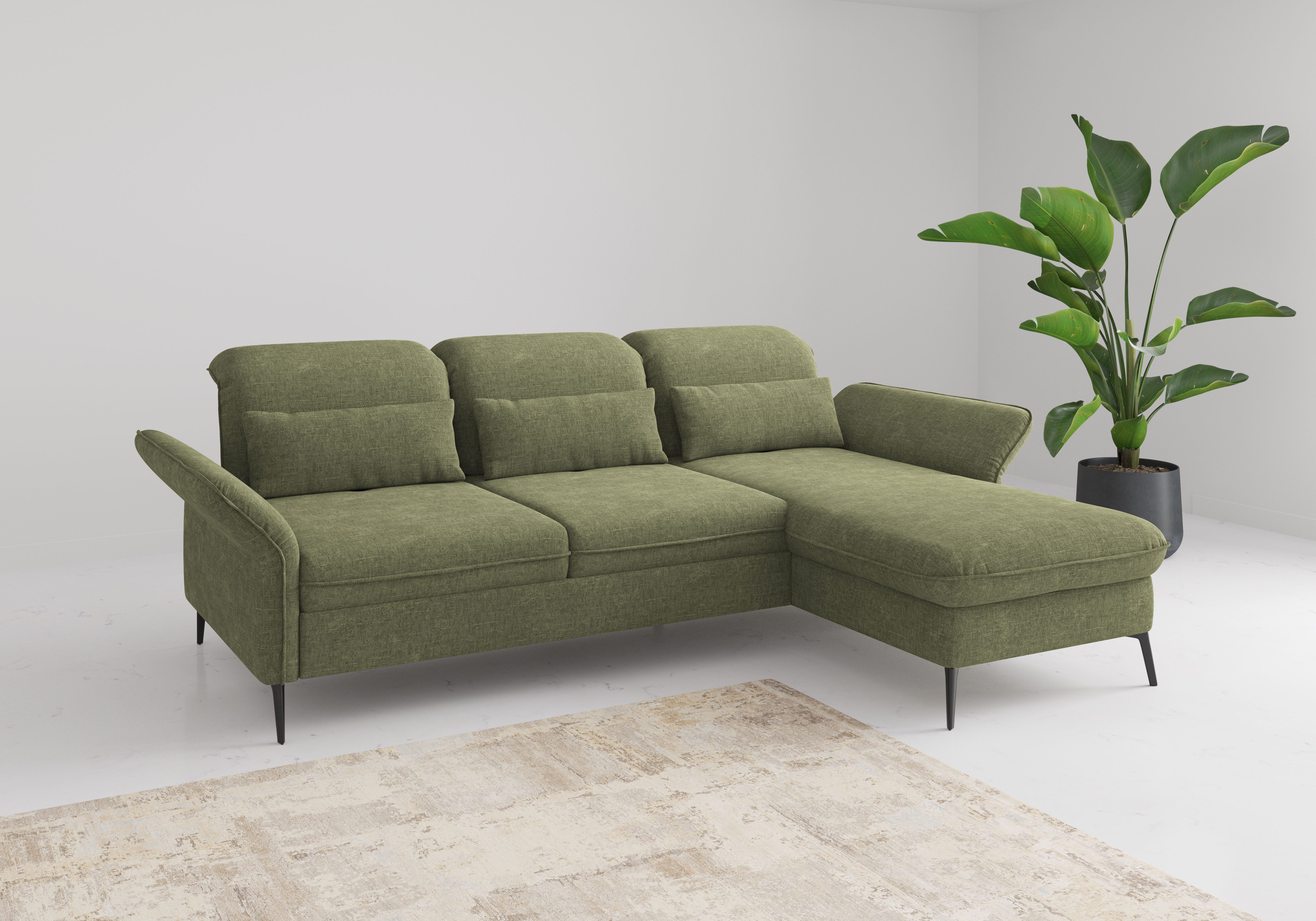 Durch die hochwertige Wellenunterfederung wird die Sitzfläche des Ecksofas »Emely, inkl. Sitztiefenverstellung« von sit&more gut gefedert und bleibt dauerhaft elastisch. Ein weiterer Vorteil ist die Sitztiefenverstellung, mit der jeder bequem darauf sitzt, egal ob groß oder klein. Von vorne betrachtet ist die Recamiere nach rechts ausgerichtet. Die maximale Belastbarkeit liegt bei einem Gewicht von 360 Kilogramm. Die mattschwarzen Füße aus Metall sind korrosionsbeständig und besonders langlebig. Dieses Modell wurde von Hand gefertigt.