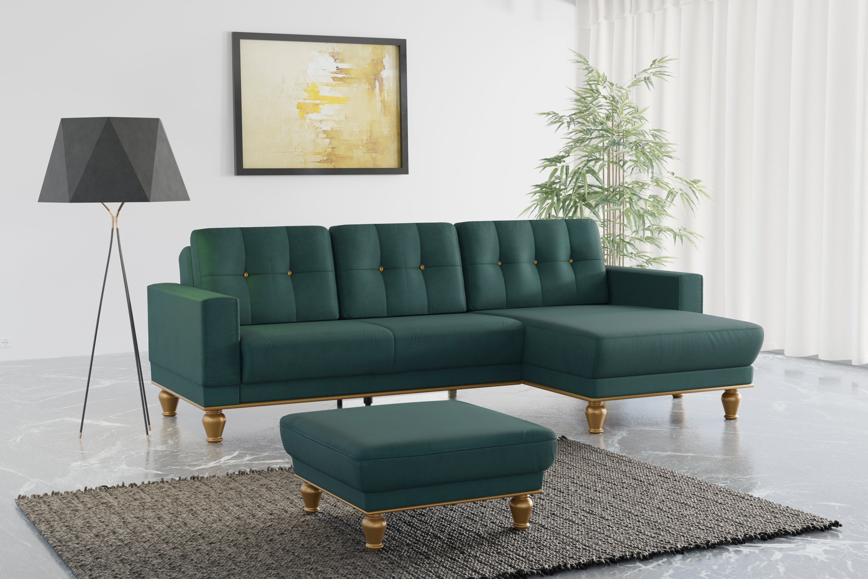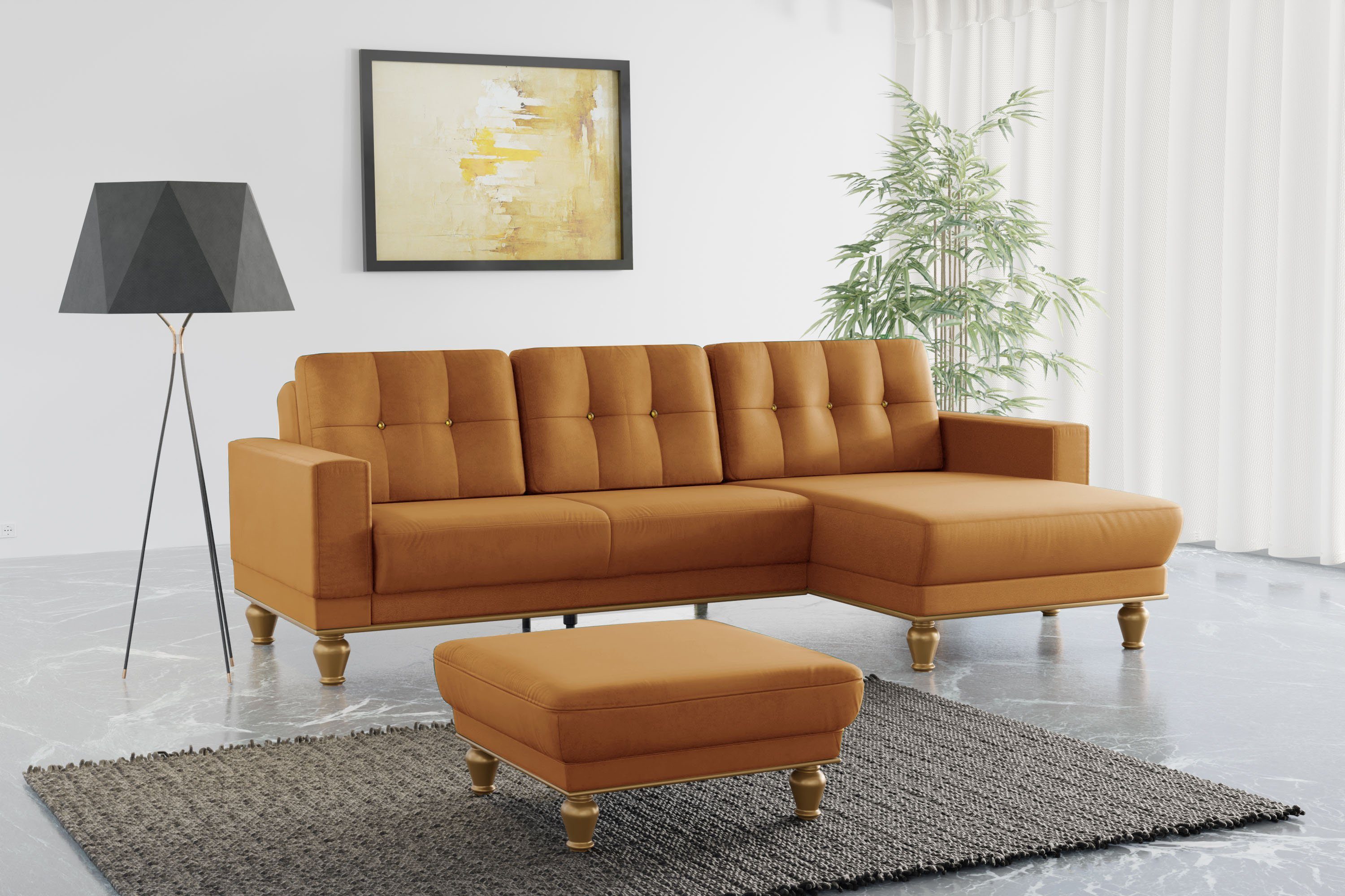 Eine dauerhaft elastische und komfortable Sitzfläche — das bekommst du bei diesem Ecksofa »Orient 5 L-Form« von sit&more, das mit einer hochwertigen Wellenunterfederung ausgestattet ist. Beim Ecksofa befindet sich die Recamiere, von vorne betrachtet, auf der rechten Seite. Bei etwa 110 Kilogramm liegt die maximale Belastbarkeit pro Sitzplatz. Der Bezug besteht aus einem Gewebe, das durch seine Samtoptik und die weiche Oberfläche besticht. Dieses Modell wurde von Hand gefertigt.