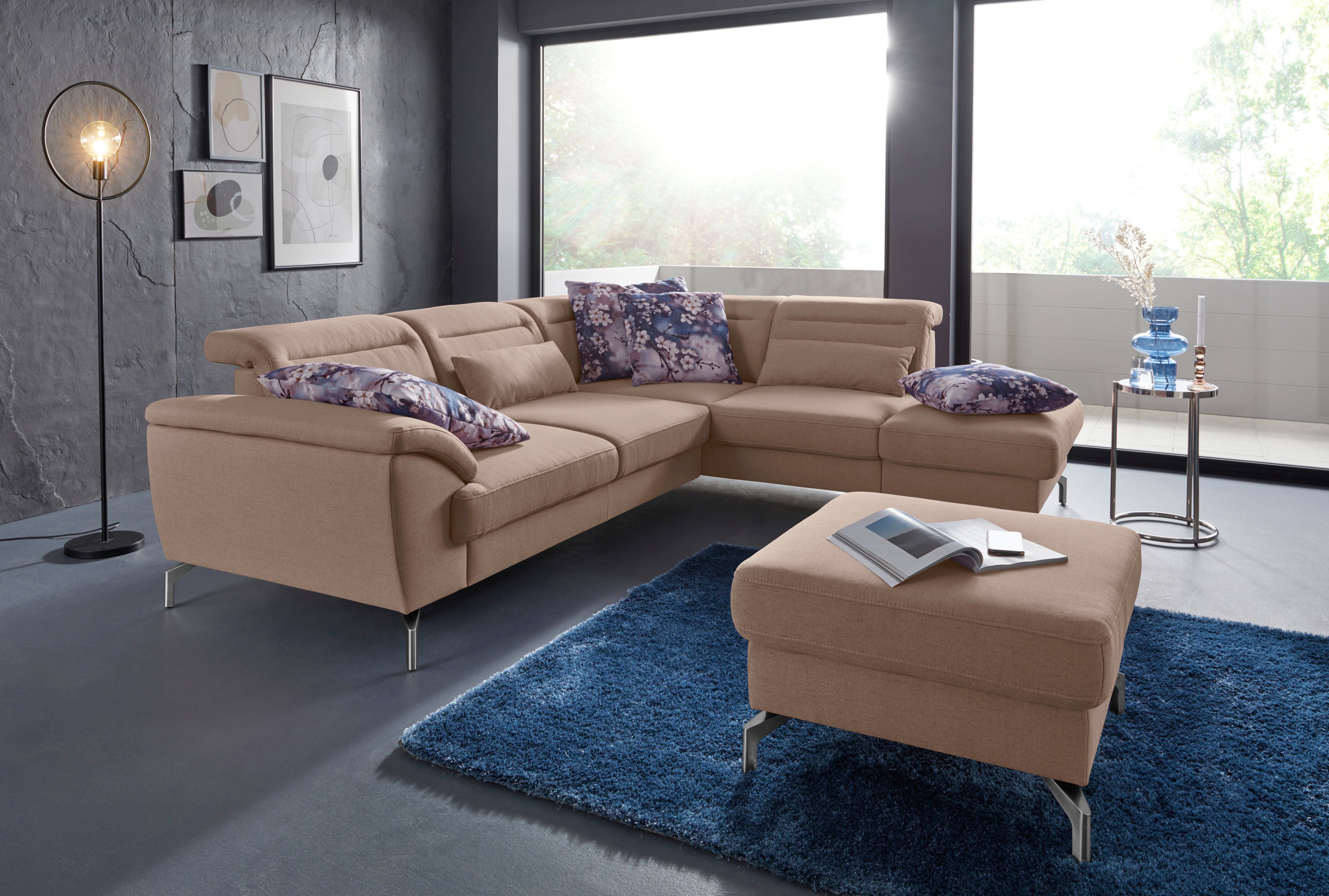 Eine dauerhaft elastische und komfortable Sitzfläche — das bekommst du bei diesem Ecksofa »Percy L-Form« von sit&more, das mit einer hochwertigen Wellenunterfederung ausgestattet ist. Beim Ecksofa befindet sich die Ottomane, von vorne betrachtet, auf der rechten Seite. Die maximale Belastbarkeit pro Sitzplatz liegt bei einem Gewicht von 110 Kilogramm. Die satinierten Füße aus Metall benötigen nahezu keine Pflege, denn Rückstände, Schmutz oder Staub lassen sich ohne großen Aufwand mit einem feuchten Tuch abwischen. Aus Liebe zum Detail wurde dieses Modell von Hand angefertigt.