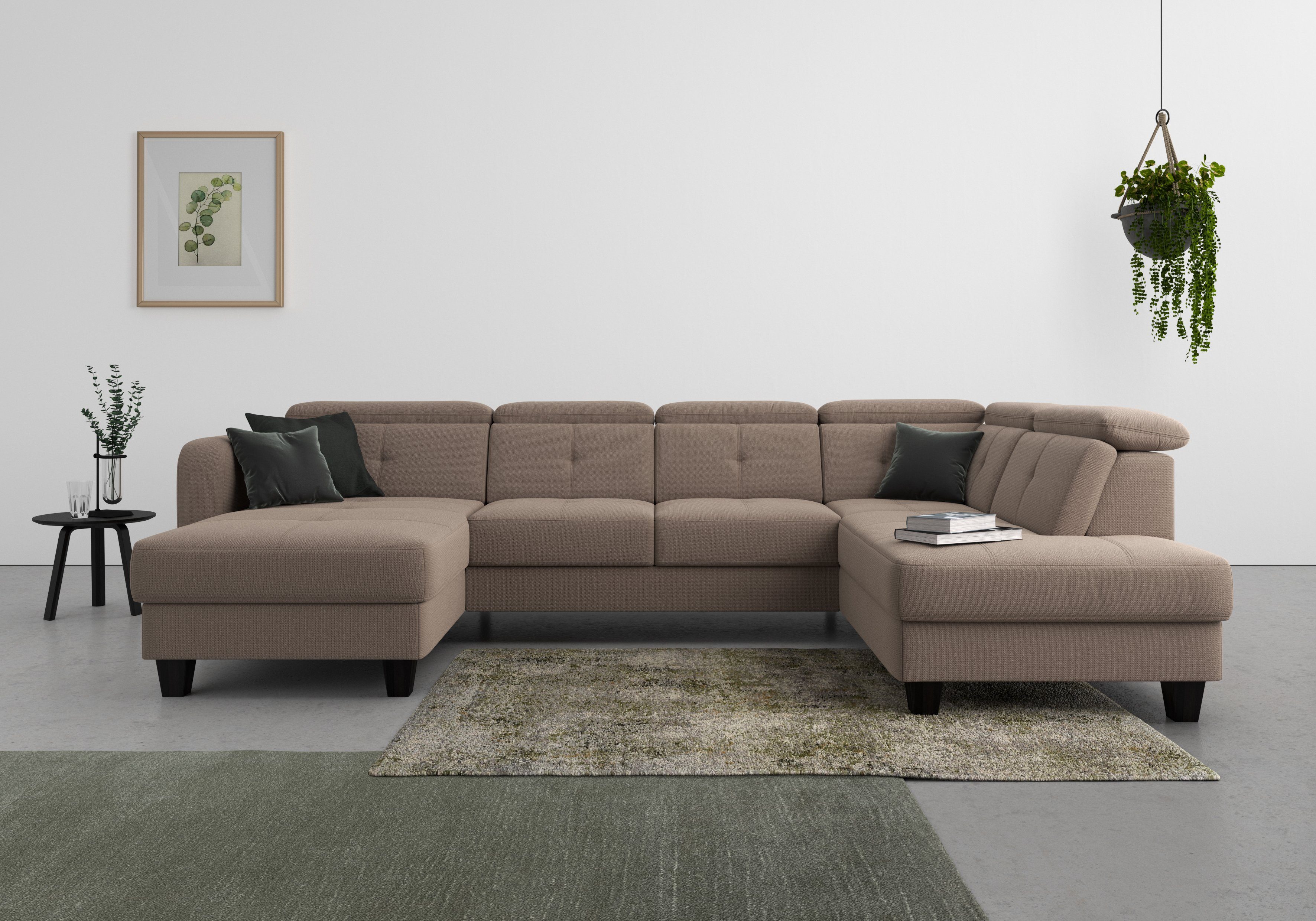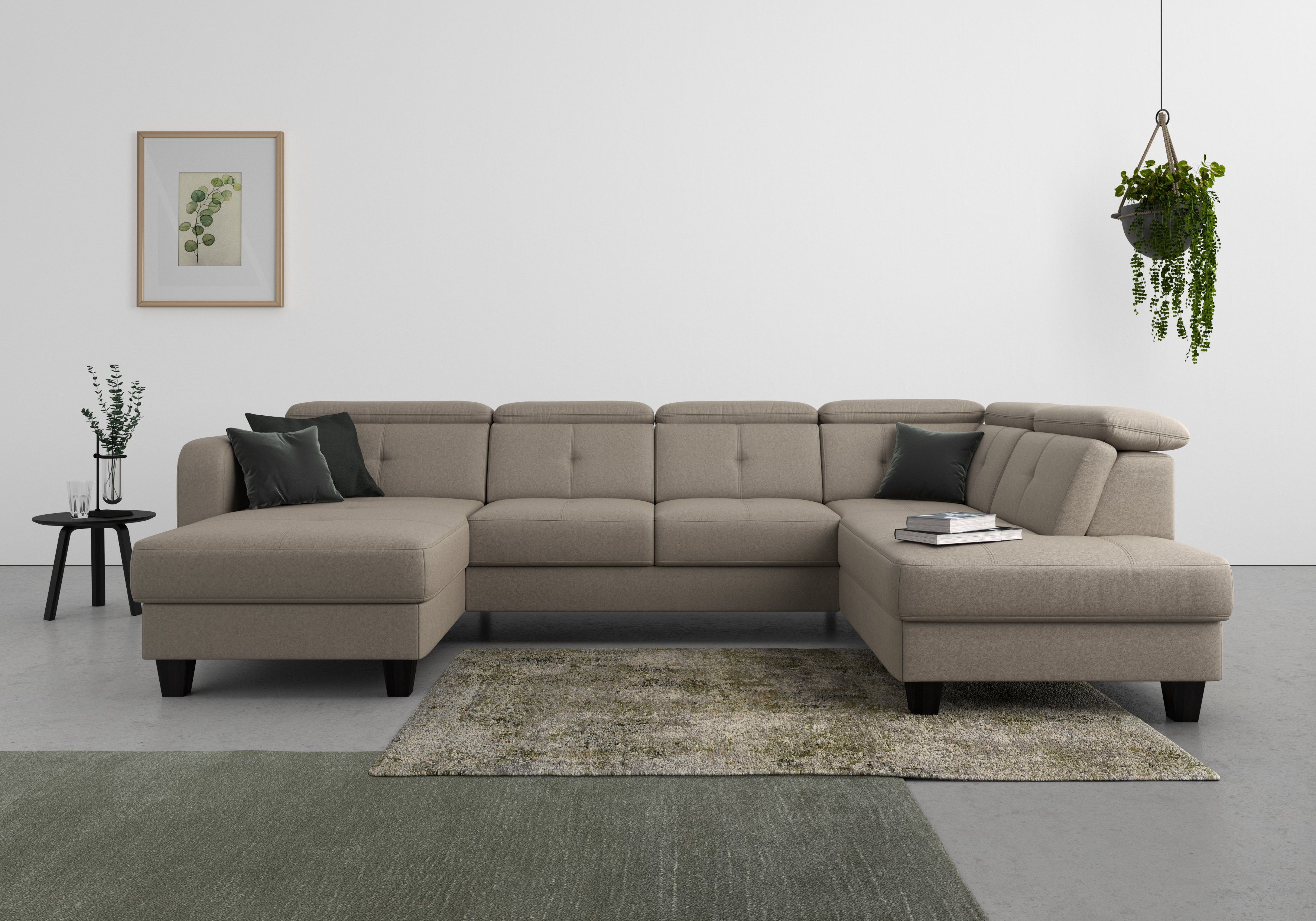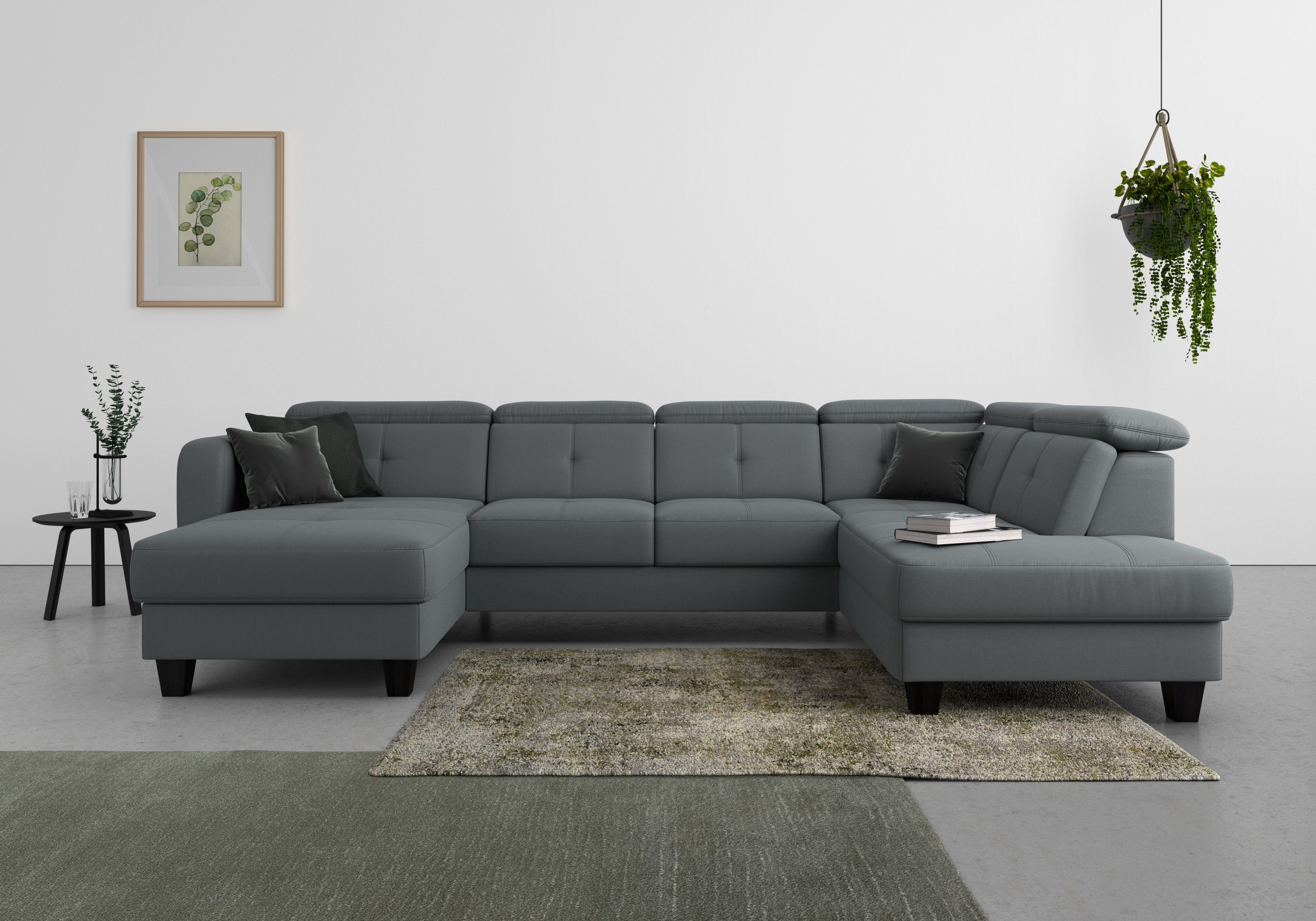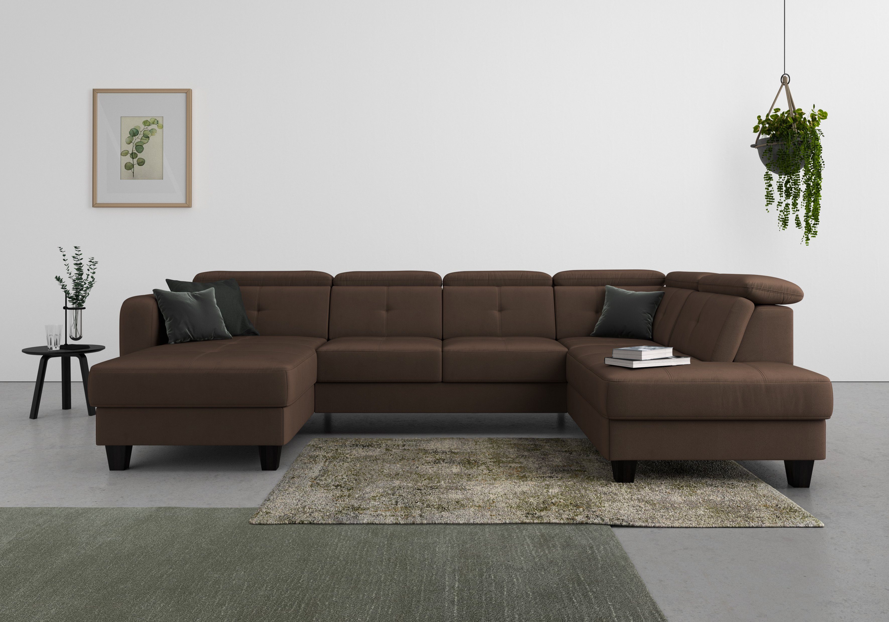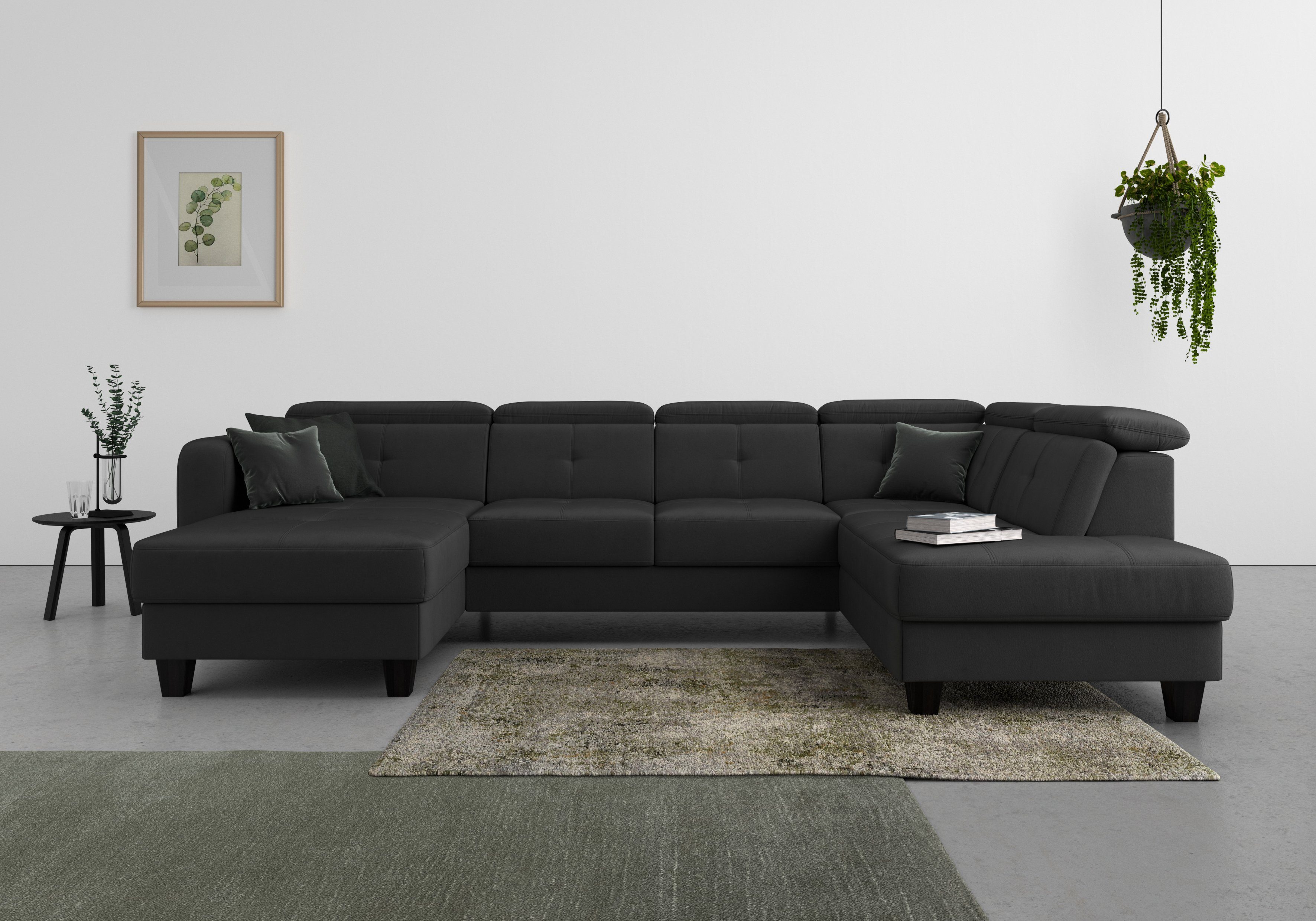 Diese Wohnlandschaft »Belluci U-Form« von sit&more bietet dir dank der Wellenunterfederung hohen Sitzkomfort und Tragfähigkeit. Bei der Wohnlandschaft befindet sich die Recamiere, von vorne betrachtet, auf der linken Seite. Bei etwa 110 Kilogramm liegt die maximale Belastbarkeit. Die Luxus-Microfaser ALTARA NUBUCK® neigt kaum zur Fusselbildung und sorgt für eine softe und glatte Oberfläche mit guten Pflegeeigenschaften. Aus Liebe zum Detail wurde dieses Modell von Hand angefertigt.