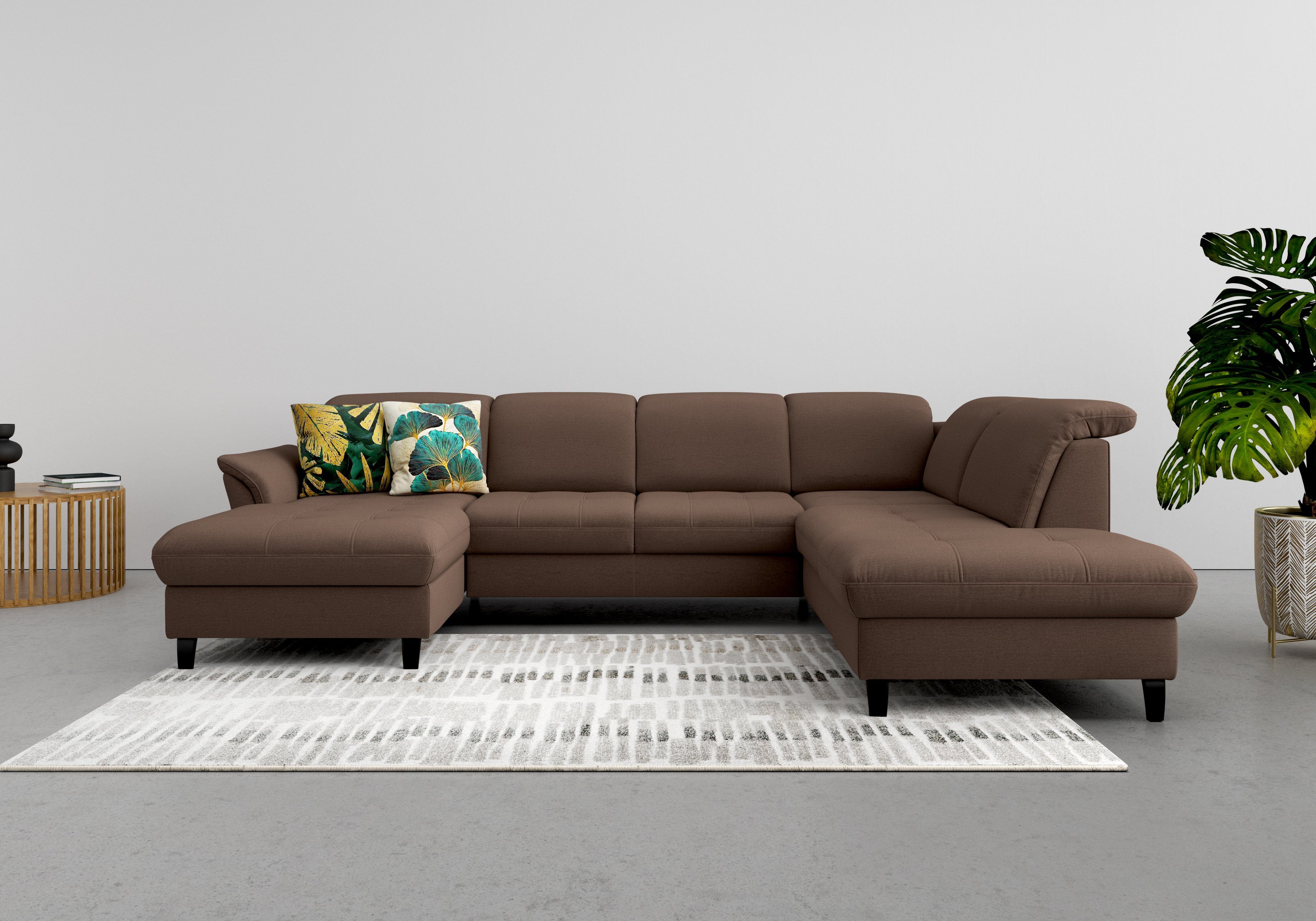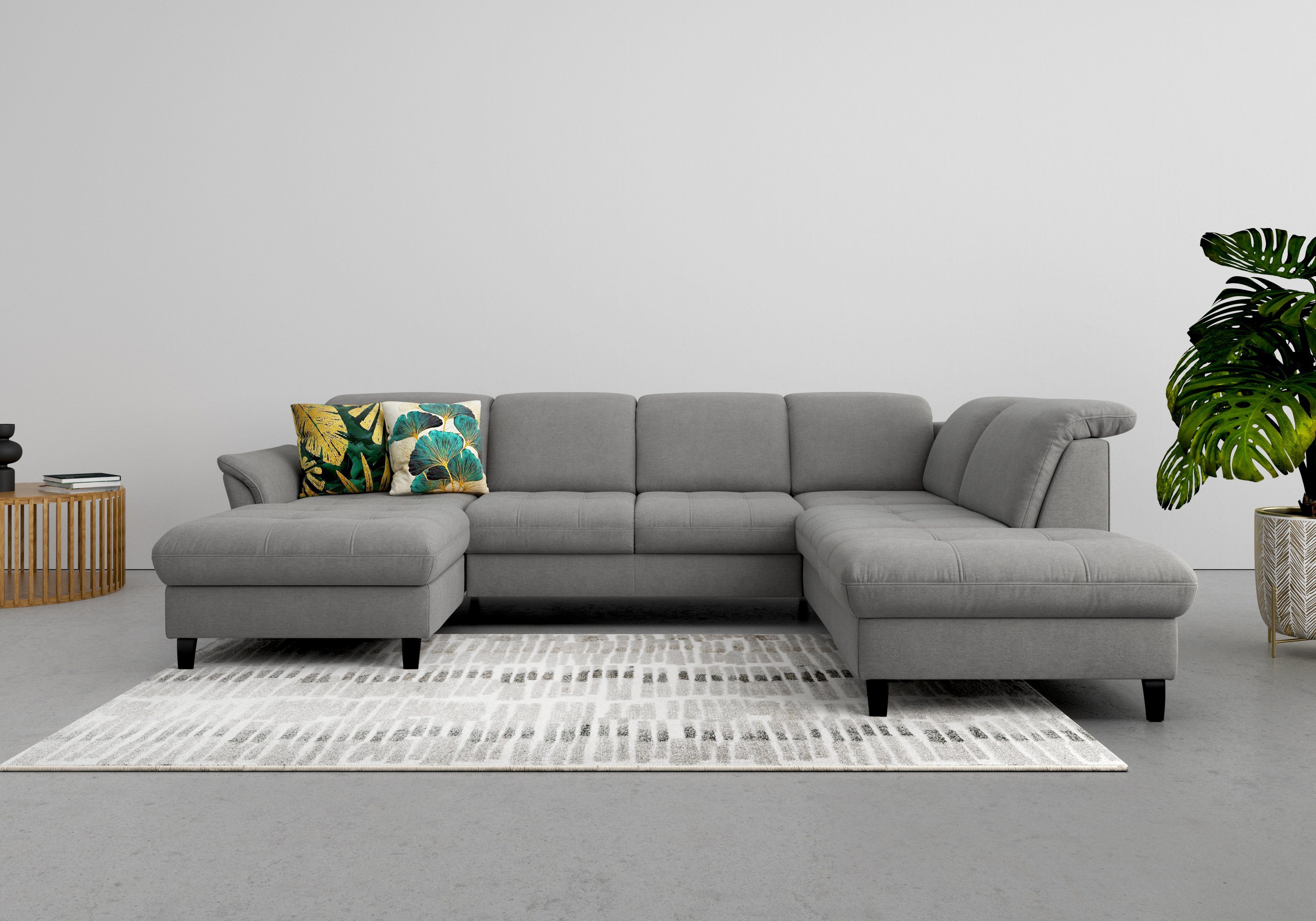 Durch die hochwertige Wellenunterfederung wird die Sitzfläche der Wohnlandschaft »Maggiore U-Form« von sit&more gut gefedert und bleibt dauerhaft elastisch. Bei der Wohnlandschaft befindet sich die Ottomane, von vorne betrachtet, rechts. Bei etwa 110 Kilogramm liegt die maximale Belastbarkeit pro Sitzplatz. Dank der resistenten Luxus-Microfaser bilden sich keine Fusseln, auch wenn das Sofa viel genutzt wird. Aus Liebe zum Detail wurde dieses Modell von Hand angefertigt.