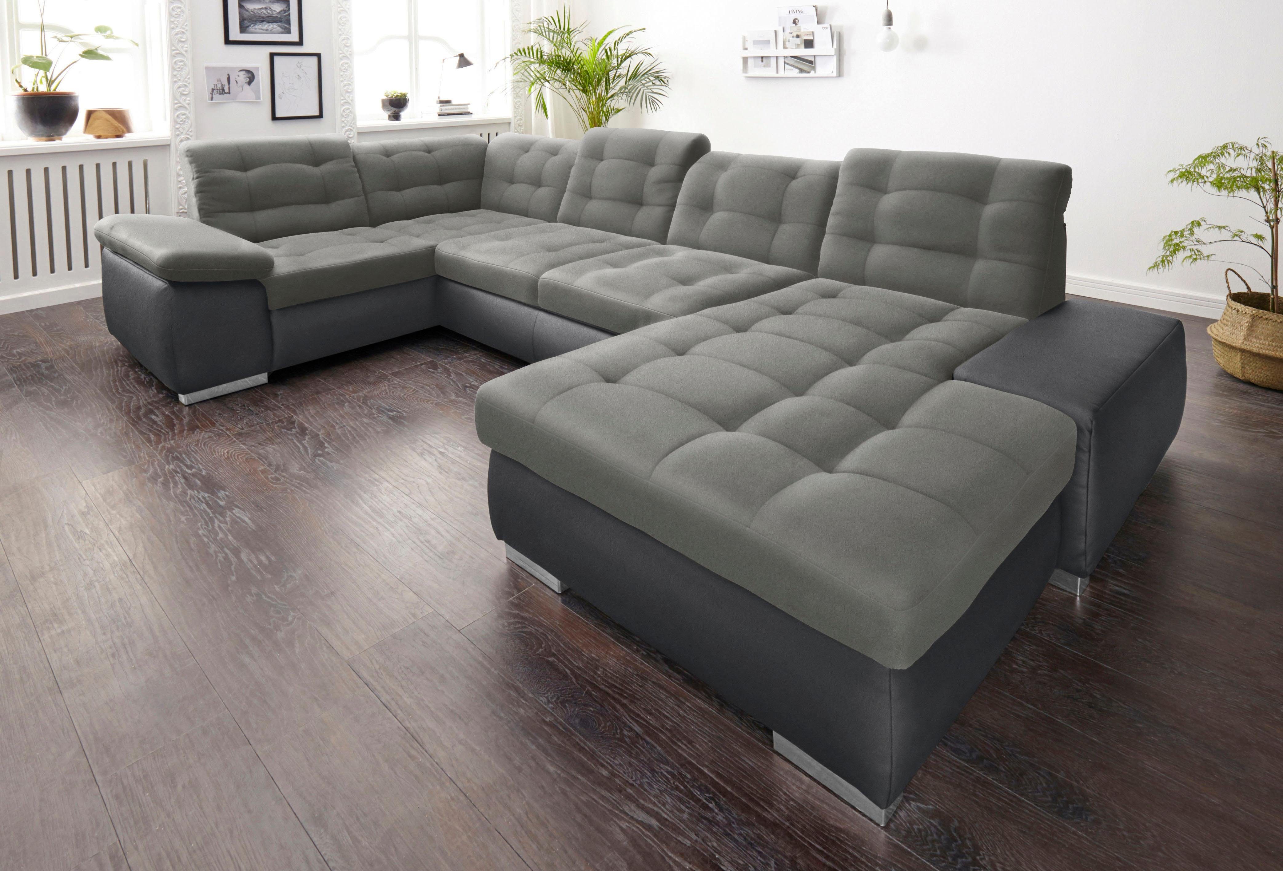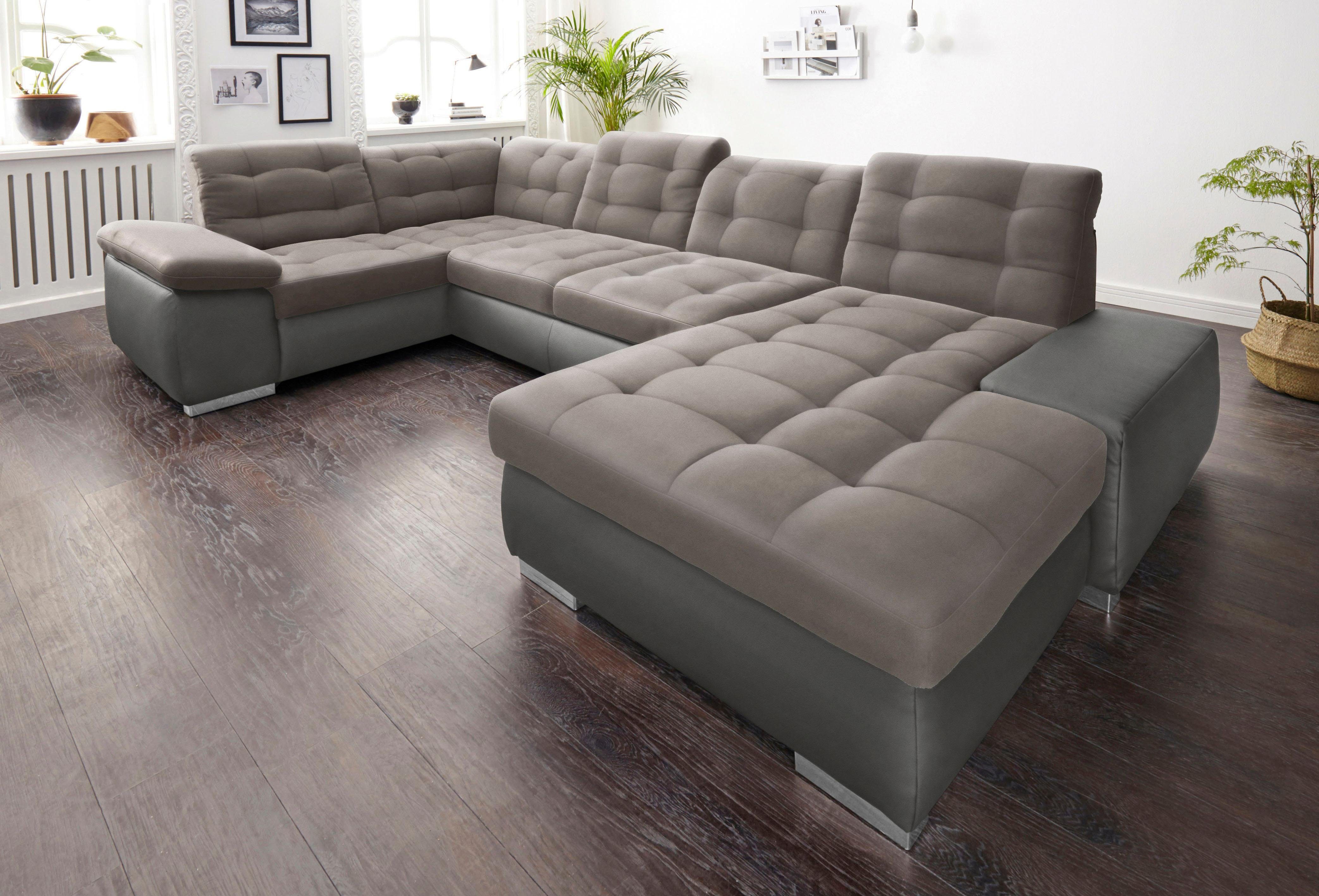 Diese Wohnlandschaft »Ontario U-Form« von sit&more bietet dir dank der Wellenunterfederung hohen Sitzkomfort und Tragfähigkeit. Die Couch ist manuell verstellbar und lässt sich so mit wenigen Handgriffen in die gewünschte Position bringen. Von vorne betrachtet ist die Recamiere nach rechts ausgerichtet. Bei etwa 110 Kilogramm liegt die maximale Belastbarkeit pro Sitzplatz. Der strukturierte Bezug überzeugt durch seine pflegeleichte und hautsympathische Eigenschaft.