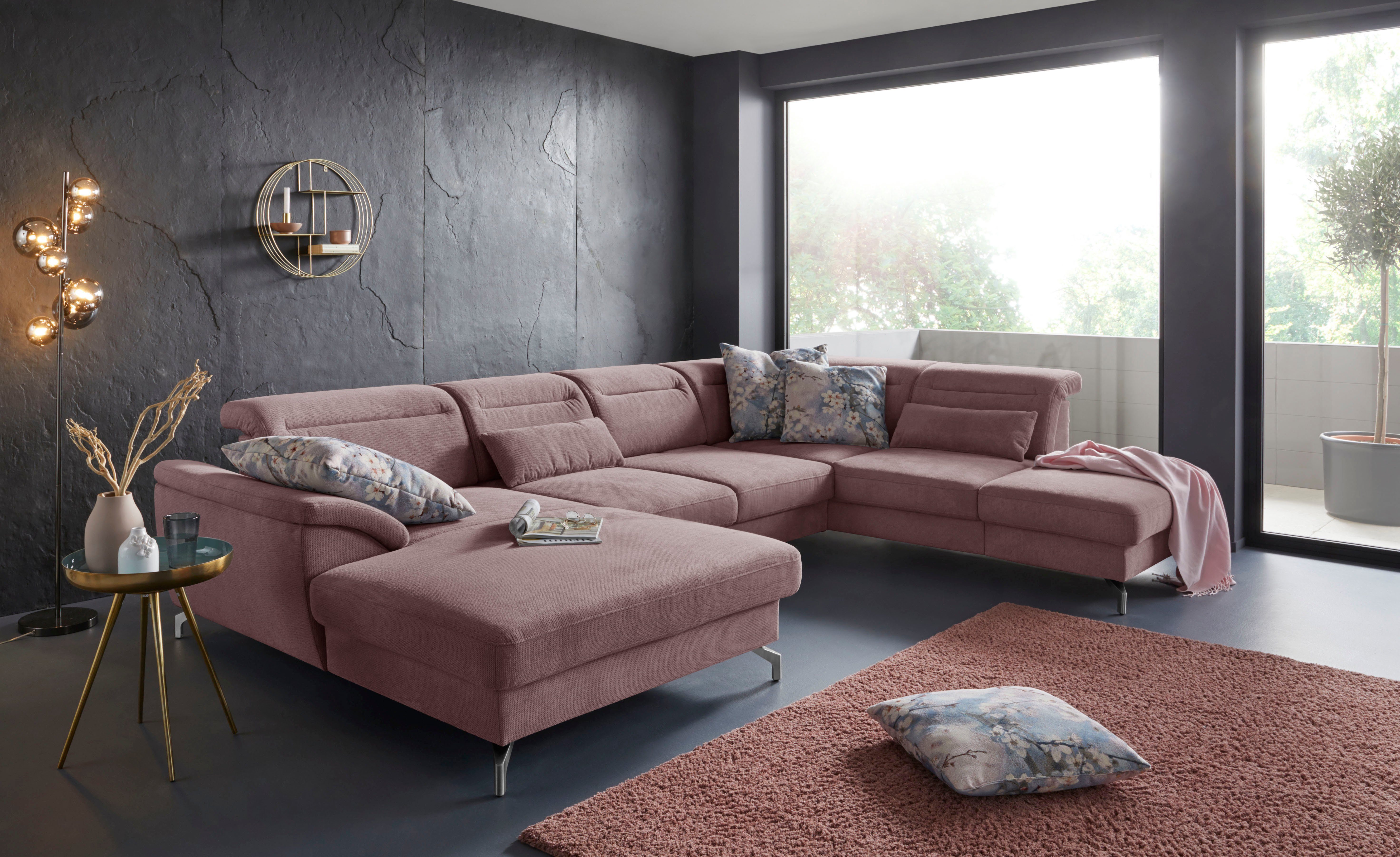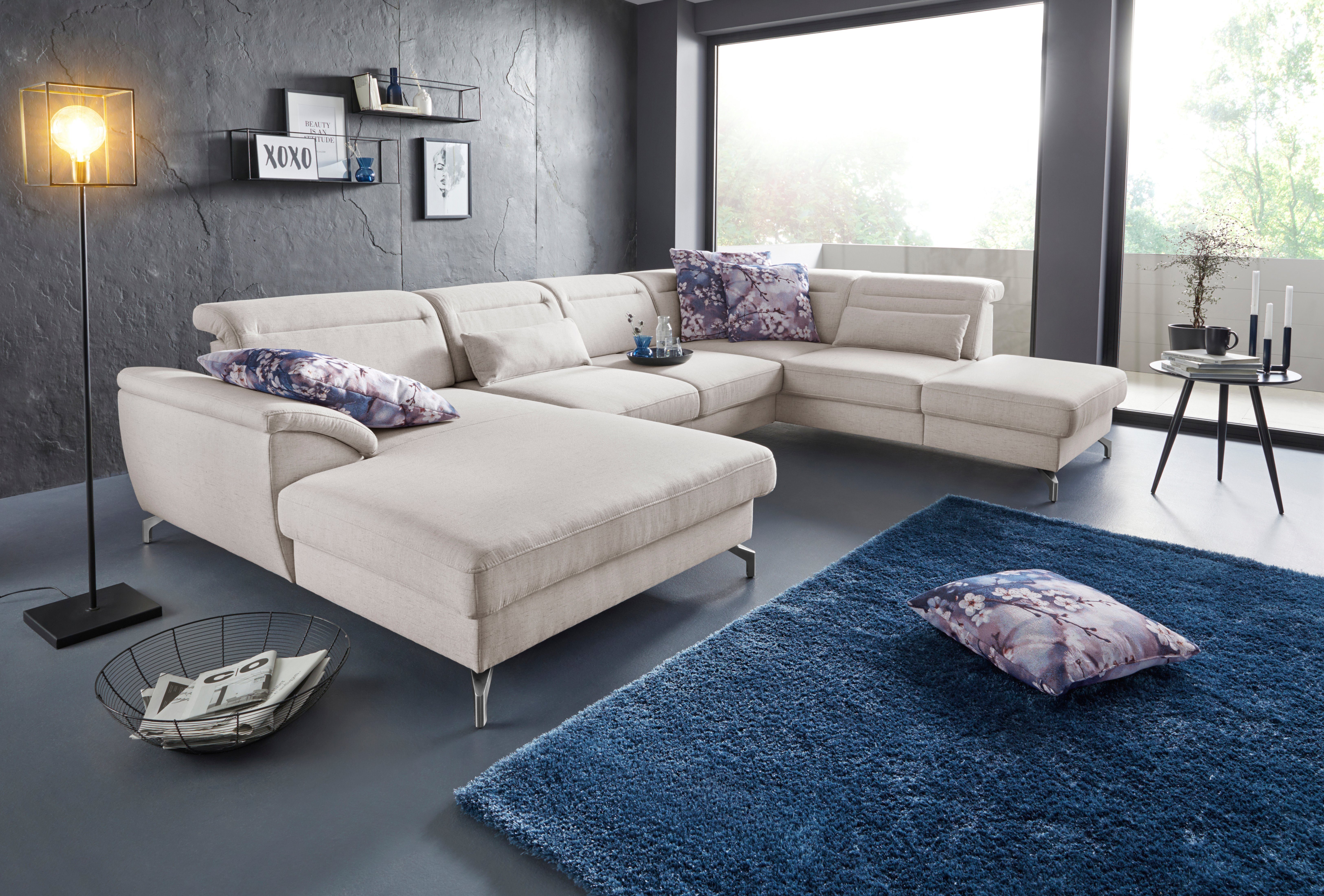 Diese Wohnlandschaft »Percy U-Form« von sit&more bietet dir dank der Wellenunterfederung hohen Sitzkomfort und Tragfähigkeit. Von vorne betrachtet ist die Recamiere nach links ausgerichtet. Die maximale Belastbarkeit pro Sitzplatz liegt bei einem Gewicht von 110 Kilogramm. Die satinierten Füße aus Metall benötigen nahezu keine Pflege, denn Rückstände, Schmutz oder Staub lassen sich ohne großen Aufwand mit einem feuchten Tuch abwischen. Aus Liebe zum Detail wurde dieses Modell von Hand angefertigt.
