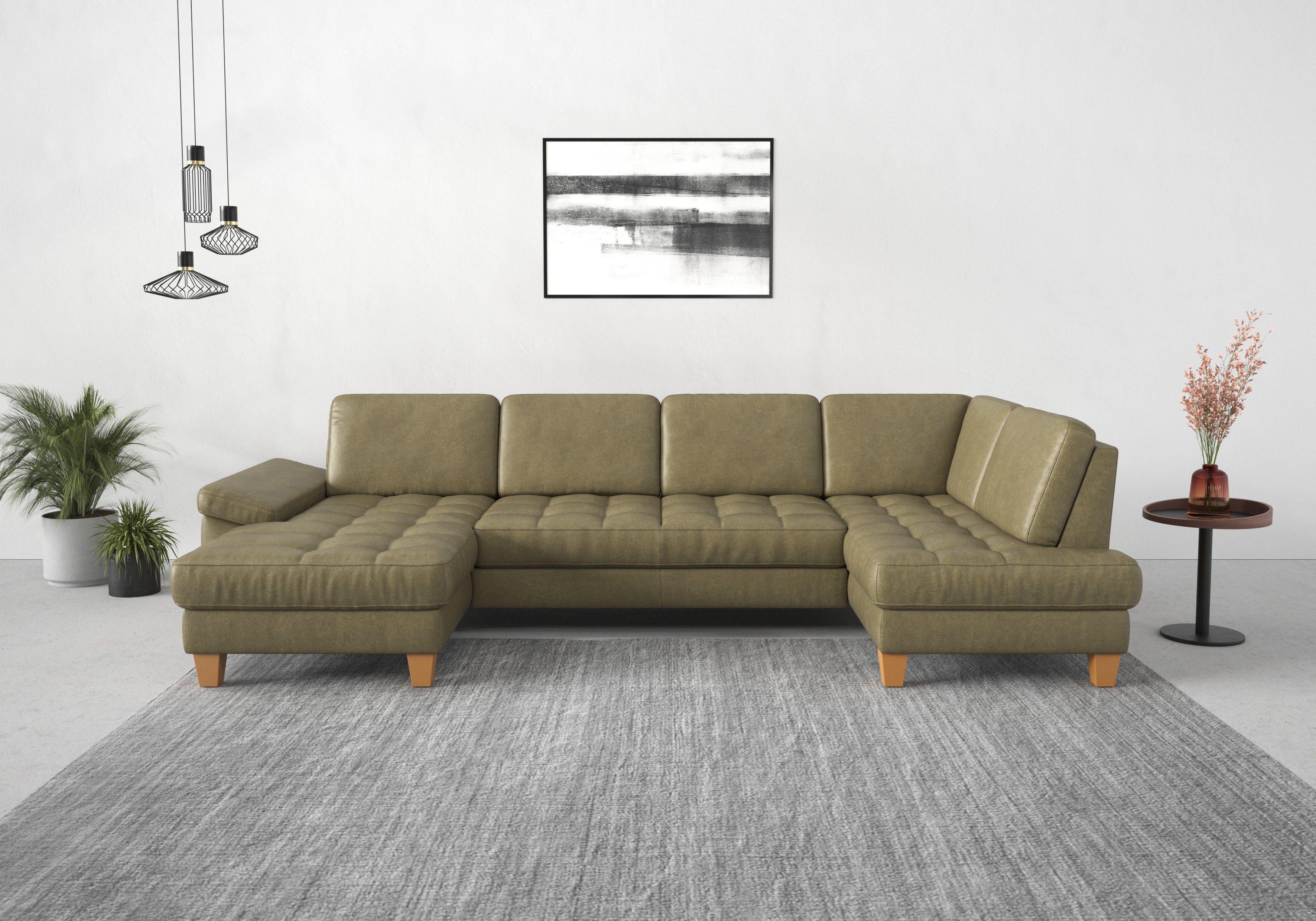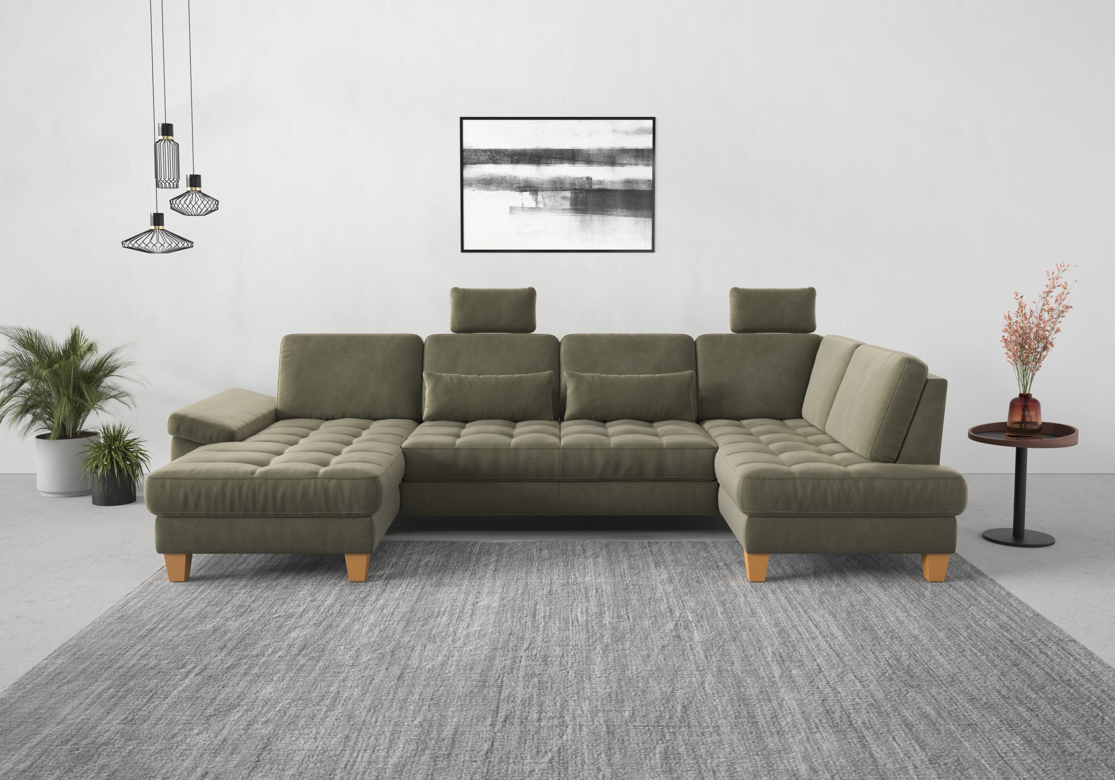 Diese Wohnlandschaft »Westham U-Form« von sit&more bietet dir dank der Wellenunterfederung hohen Sitzkomfort und Tragfähigkeit. Von vorne betrachtet ist die Ottomane nach rechts ausgerichtet. Bei etwa 110 Kilogramm liegt die maximale Belastbarkeit pro Sitzplatz. Die Luxus-Microfaser ALTARA NUBUCK® neigt kaum zur Fusselbildung und sorgt für eine softe und glatte Oberfläche mit guten Pflegeeigenschaften. Aus Liebe zum Detail wurde dieses Modell von Hand angefertigt.