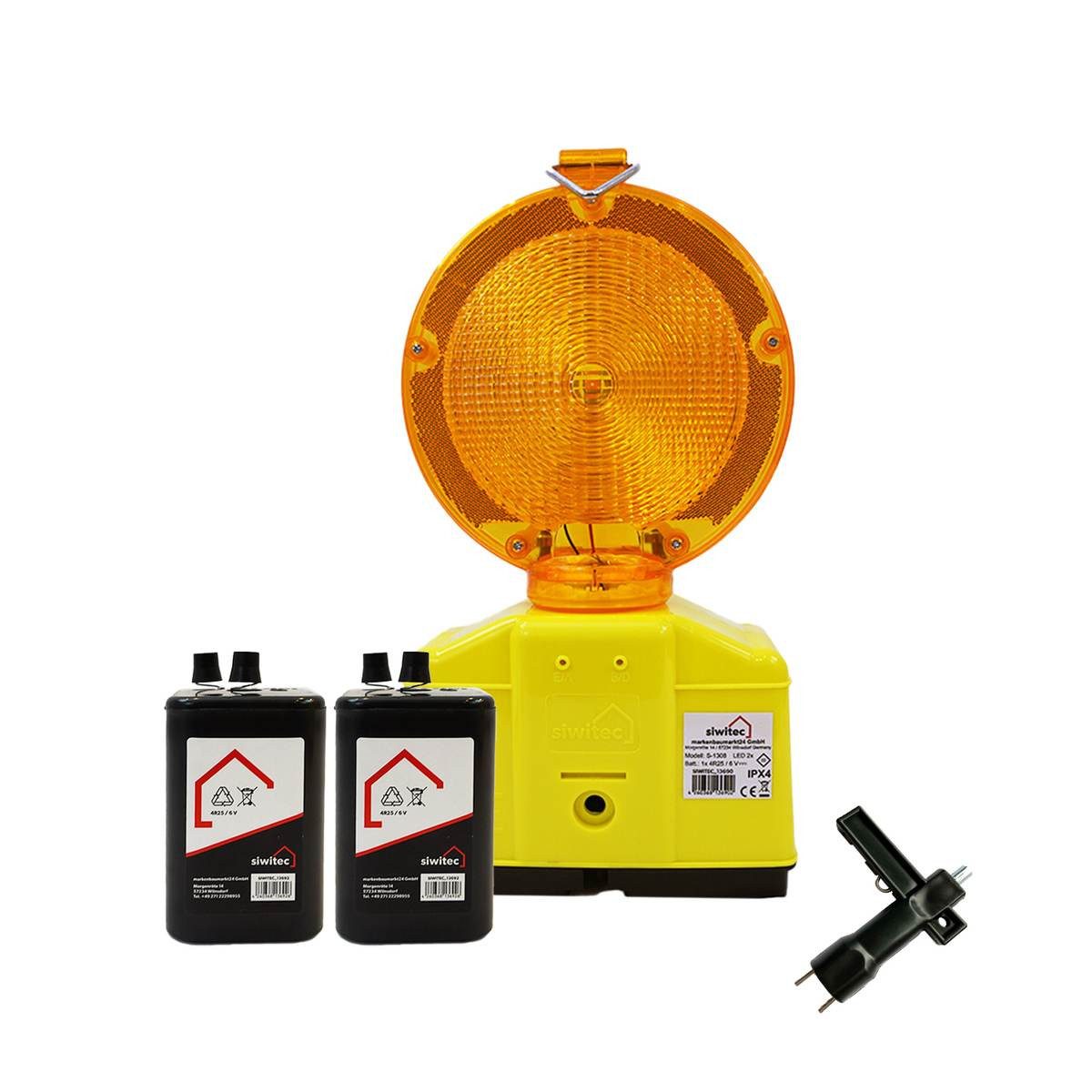 Lieferumfang | siwitec LED Warnleuchten in gewählter Farbausführung mit Lampenschlüssel inkl. passender Anzahl Blockbatterien |