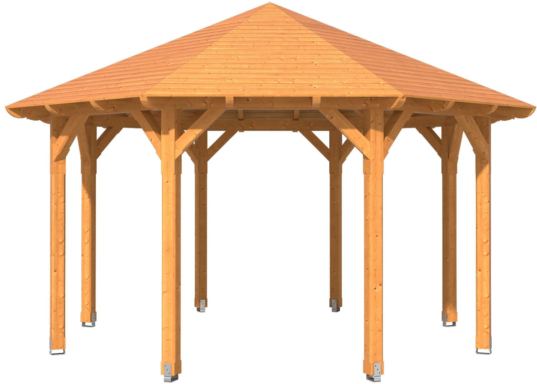 Das Dach wird mit 20 mm starker Dachschalung zur Eindeckung mit Dachschindeln geliefert (Dachschindeln sind als Zubehör optional bestellbar).
