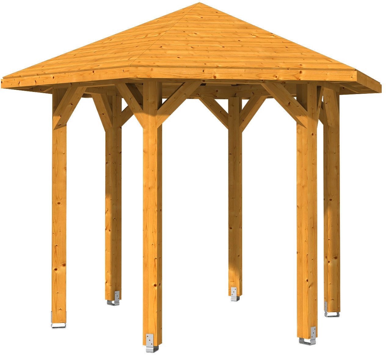 Das Dach wird mit 20 mm starker Dachschalung zur Eindeckung mit Dachschindeln geliefert (Dachschindeln sind als Zubehör optional bestellbar).