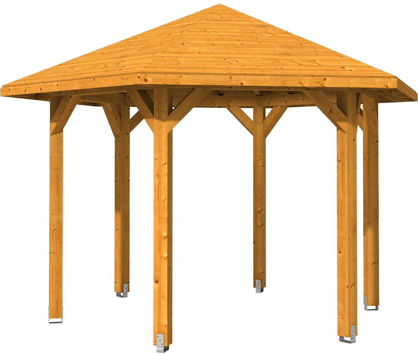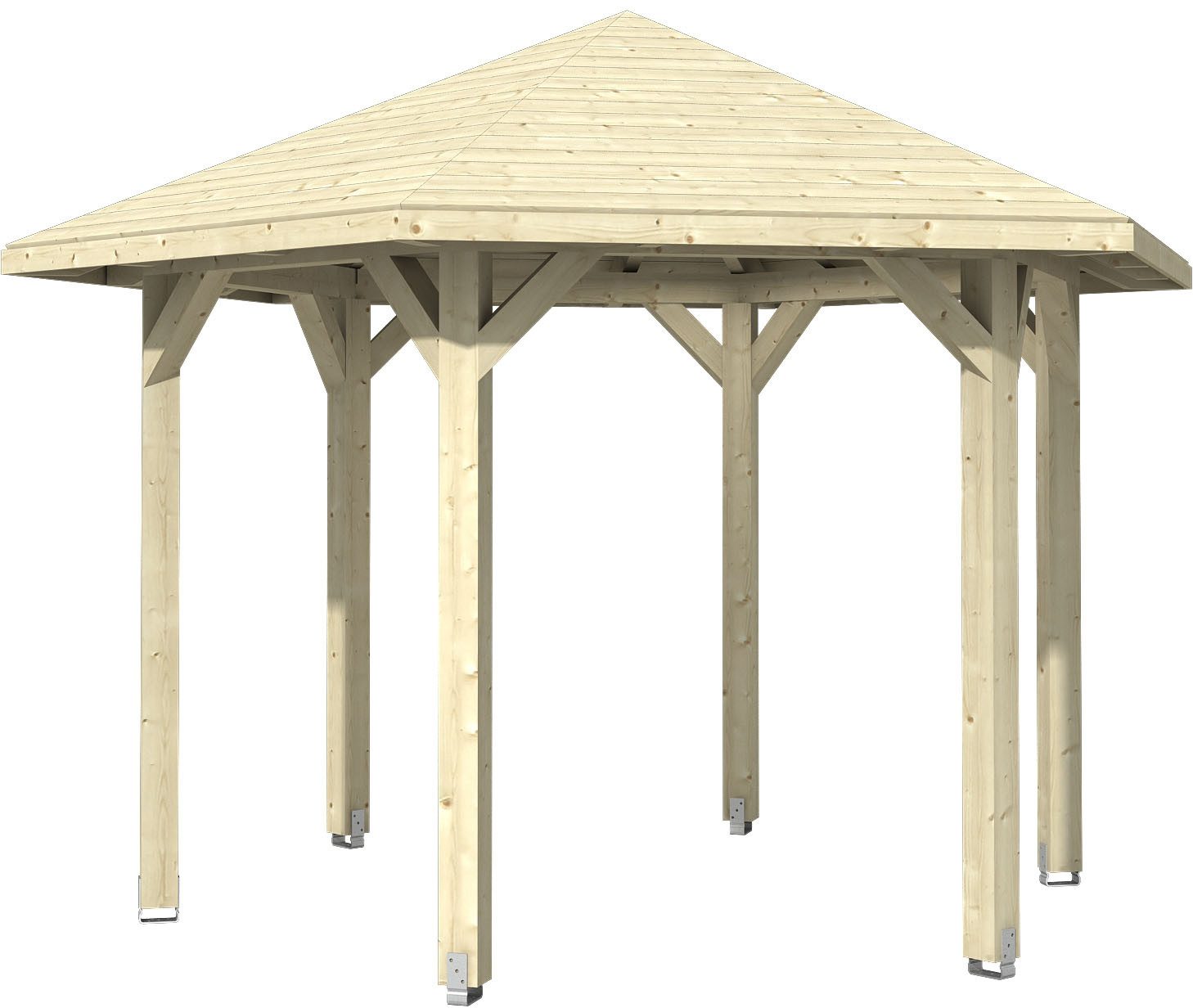 Das Dach wird mit 20 mm starker Dachschalung zur Eindeckung mit Dachschindeln geliefert (Dachschindeln sind als Zubehör optional bestellbar).