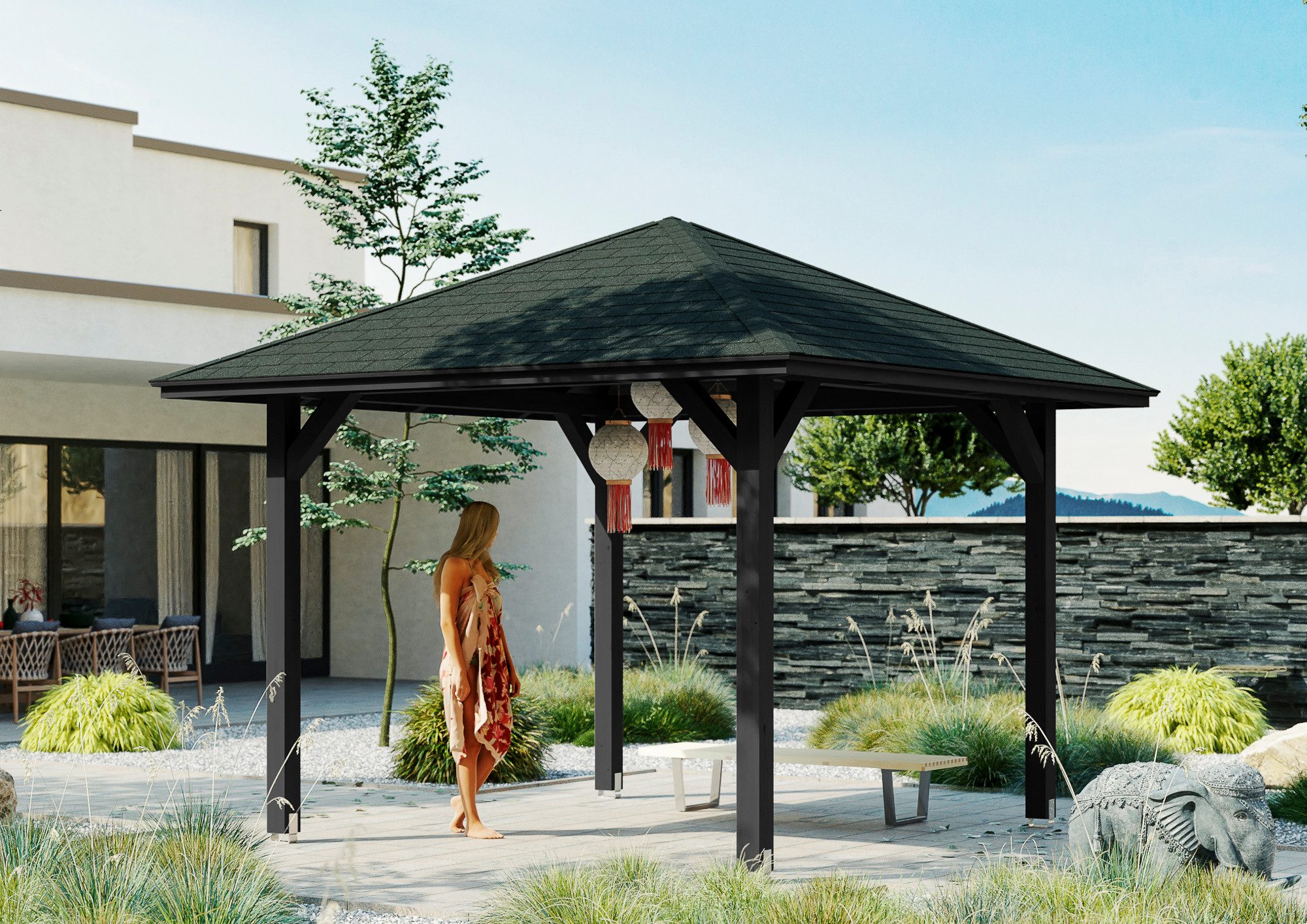 Das Dach wird mit 20 mm starker Dachschalung zur Eindeckung mit Dachschindeln geliefert (Dachschindeln sind als Zubehör optional bestellbar).