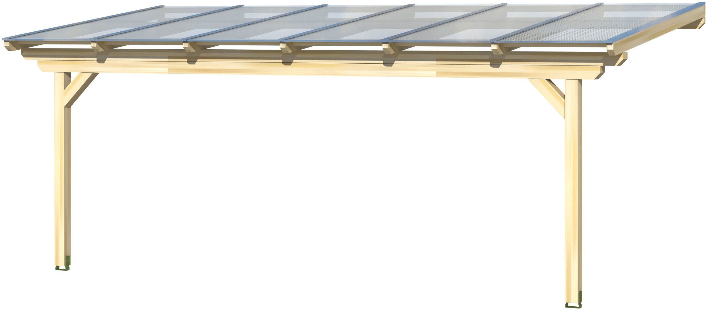 Die Dacheindeckung besteht aus stabilen, 16 mm dicken Polycarbonat Doppelstegplatten. Die Oberseite ist mit einer UV-reflektierenden Schicht versehen. Befestigt werden diese durch hochwertige Aluminium-Profile mit EPDM-Lippendichtungen.
