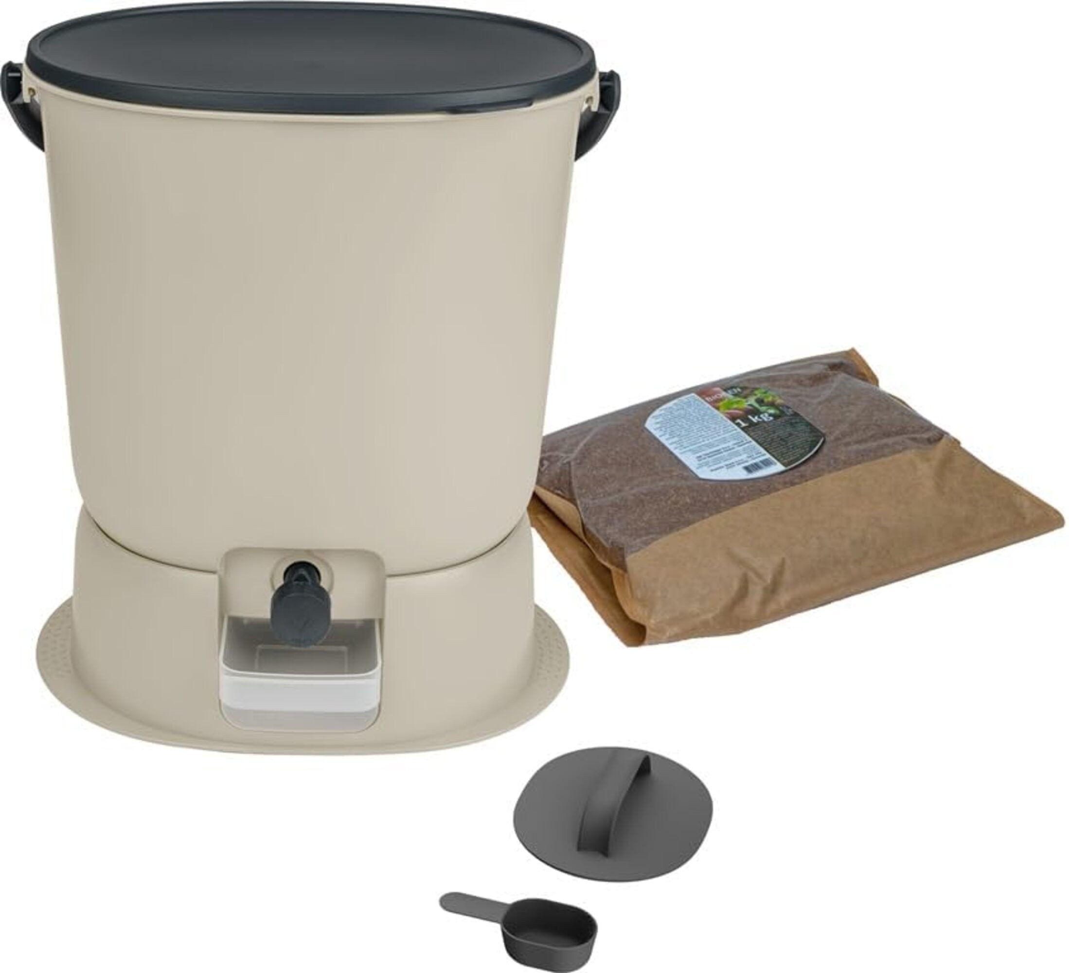 Bokashi Organko Essential unterscheidet sich von anderen Kompostern. Es wird aus recycelten Kunststoffen nach dem Verbrauch hergestellt. Mit anderen Worten, es handelt sich um recycelten Kunststoff aus entsorgten Produkten, die in Behältern gesammelt werden, die für Verpackungen oder Kunststoff geeignet sind. Bokashi Organko Essential ist somit ein Spiegelbild unseres und Ihrer Achtung für den Planeten Erde für eine bessere und gesündere Zukunft. Bei der Bokashi-Methode verhindert die Verwendung seines Bokashi mit effektiven Mikroorganismen das Verrotten von organischen Lebensmitteln. Organische Abfälle fermentieren stattdessen, wodurch organische Abfälle ohne Fliegen und Gerüche gesammelt werden können. Schließlich wird das Volumen von organischen Abfällen in der Küche um 25% reduziert