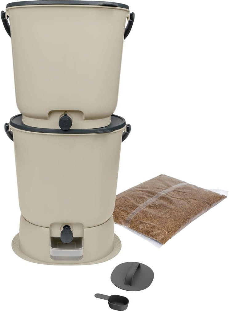 Lieferumfang | 2 Eimer mit Deckel Standfuß Dosierhilfe und Spachtel Fermentier-Material |