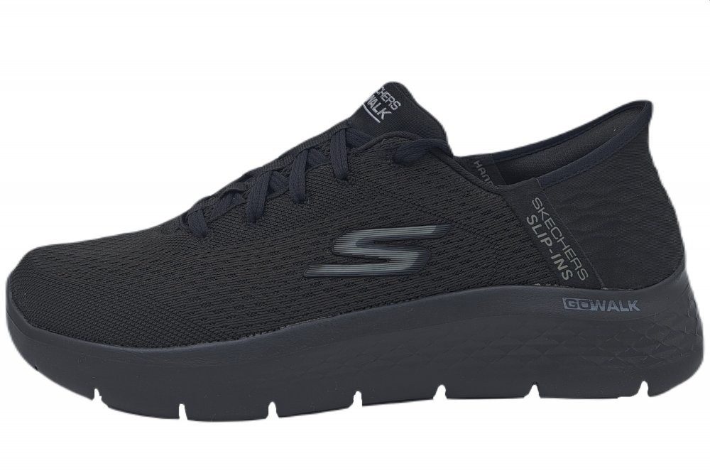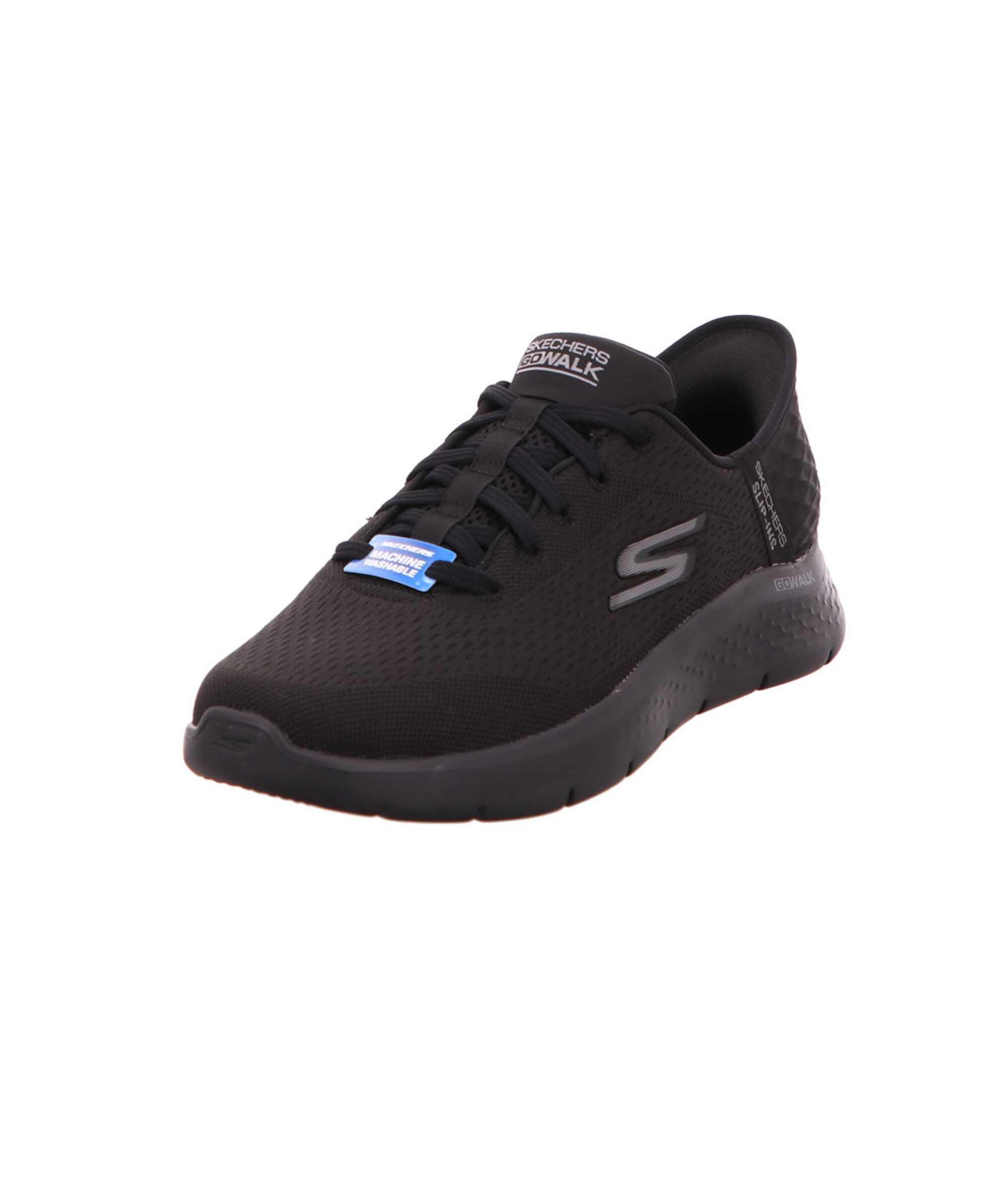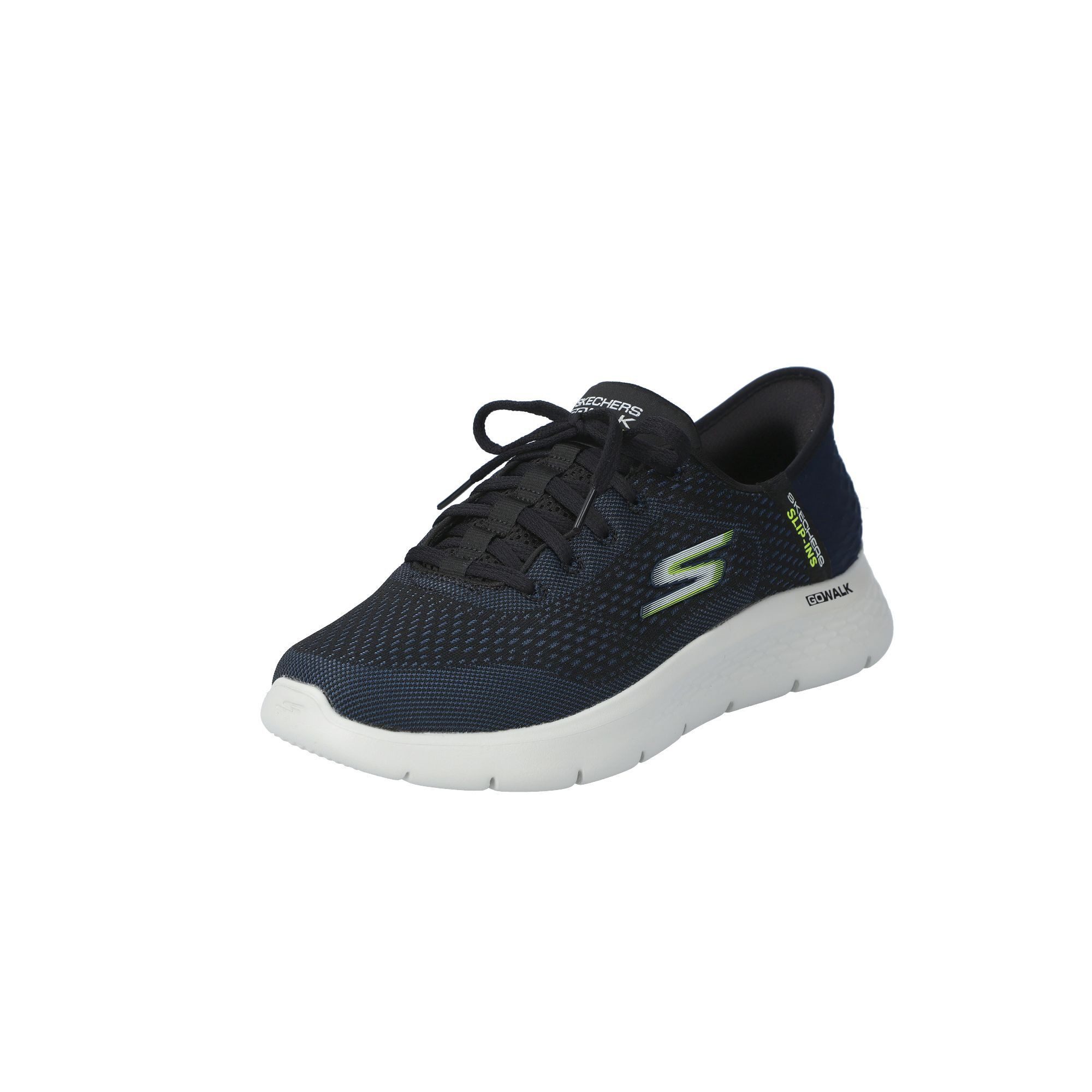Ultimativer Tragekomfort mit Skechers Hands Free Slip-ins: Go Walk Flex - New World. Zusammen mit unserem exklusiven Heel Pillow, das Ihren Fuß sicher an Ort und Stelle hält, verfügt dieser vegane Schuh über das einzigartig geformtes Pop-up-geformtes Fersenpanel der Skechers Slip-ins, ein Obermaterial aus Mesh, Schnürsenkeln und eine gepolsterte Innensohle aus Skechers Air-Cooled Memory Foam.