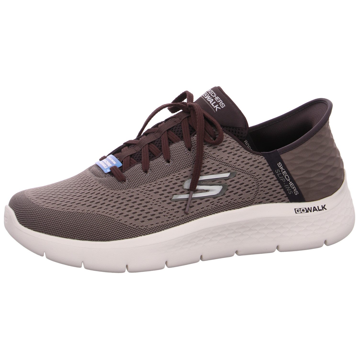 Ultimativer Tragekomfort mit Skechers Hands Free Slip-ins: Go Walk Flex - New World. Zusammen mit unserem exklusiven Heel Pillow, das Ihren Fuß sicher an Ort und Stelle hält, verfügt dieser vegane Schuh über das einzigartig geformtes Pop-up-geformtes Fersenpanel der Skechers Slip-ins, ein Obermaterial aus Mesh, Schnürsenkeln und eine gepolsterte Innensohle aus Skechers Air-Cooled Memory Foam.