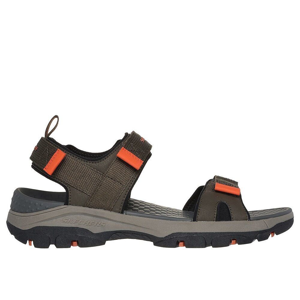 Die Herren‑Sandale TRESMEN RYER von Skechers vereint sportliche Funktionalität mit modernem City‑Flair und ist damit ideal für Männer, die Action in der Natur lieben und trotzdem urban auftreten wollen. Das robuste Obermaterial kombiniert atmungsaktive Mesh‑Einsätze mit wetterfestem Synthetik, sodass die Füße gut belüftet bleiben und gleichzeitig Schutz vor Feuchtigkeit besteht. Dank des verstellbaren Drei‑Riemen‑Systems lässt sich die Passform individuell anpassen – von enger Fixierung für anspruchsvolle Trail‑Passagen bis zur lockeren Einstellung für entspannte Strandspaziergänge. Die dämpfende Skechers‑Mittelsohle sorgt bei jedem Schritt für angenehmen Komfort, während die griffige TPU‑Außensohle sicheren Halt auf feuchten, felsigen und unebenen Untergründen bietet. Ob Wandern, Reisen oder Stadtbummel – die Sandale ist vielseitig, leicht und strapazierfähig. Ihr sportlich‑urbanes Design mit dezentem Label‑Patch wirkt modern und unaufdringlich zugleich. Ideal für Sportbegeisterte, die aktiv unterwegs sind und dabei Wert auf Leichtigkeit, Stabilität und Style legen. Diese Outdoor‑Sandale ergänzt perfekt die funktionelle Sommergarderobe und macht aus jedem Schritt ein Erlebnis – jederzeit bereit für das nächste Abenteuer.