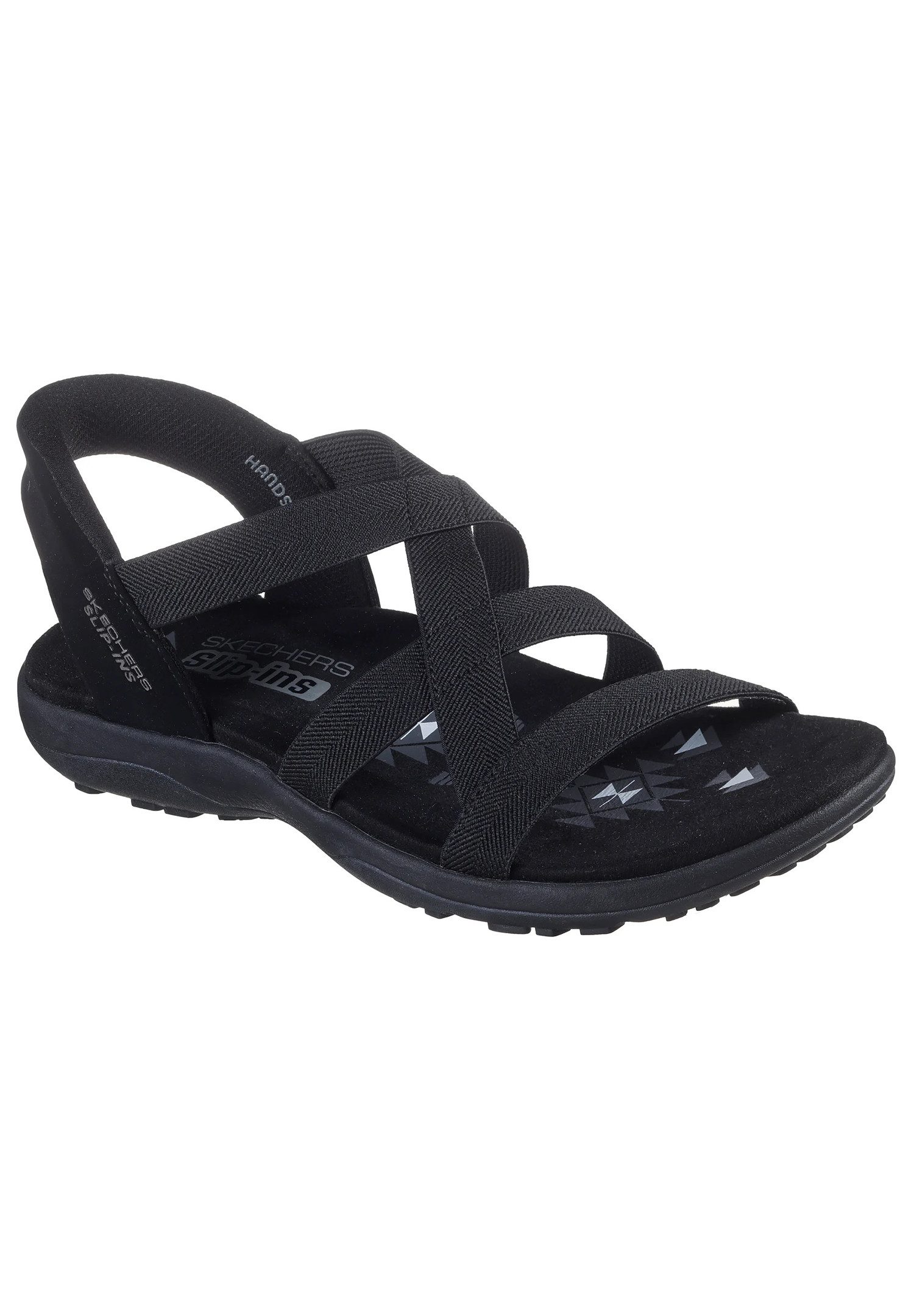 Die Skechers Damen Slip-Ins Sandalen REGGAE SLIM in Dunkelblau überzeugen durch ihre funktionale und bequeme Gestaltung. Der Materialmix aus Textil und Synthetik sorgt für eine angenehme Passform und hohen Tragekomfort. Sportliche Elastikzierriemen bieten zusätzlichen Halt, während der gepolsterte Fersenbereich und das weiche Fußbett für ein angenehmes Laufgefühl sorgen. Die flexible, rutschhemmende Laufsohle gewährleistet Stabilität auf verschiedenen Untergründen. Besonders praktisch: Die Sandalen sind waschmaschinengeeignet und lassen sich somit mühelos reinigen. Ihr sportliches Design macht sie zu einem idealen Begleiter für Freizeitaktivitäten oder den Alltag. Egal ob für Spaziergänge, Städtetrips oder den Urlaub – diese Sandalen bieten Komfort und Stil zugleich.