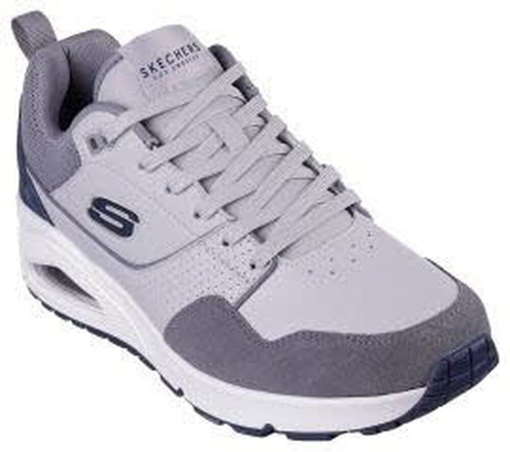 Der Skechers UNO – RETRO ONE Herren-Sneaker vereint klassischen Jogger-Stil mit modernem Komfort. Das Obermaterial besteht aus hochwertigem Duraleder, Leder und Veloursleder-Overlays, die dem Schuh eine robuste Struktur und einen sportlichen Look verleihen. Die modische Schnürung ermöglicht eine individuelle Anpassung, während die praktische Schlaufe an der Ferse das An- und Ausziehen erleichtert. Für außergewöhnlichen Tragekomfort sorgt die Skechers Air-Cooled Memory Foam®-Innensohle, die sich der Fußform anpasst und gleichzeitig für Atmungsaktivität sorgt. Die sichtbare Skech-Air®-Zwischensohle mit Luftkissendämpfung bietet zusätzliche Dämpfung und ein federndes Laufgefühl. Die flexible Gummilaufsohle gewährleistet hervorragenden Halt auf unterschiedlichsten Untergründen. Mit einer Absatzhöhe von 3,8 cm bietet dieser Sneaker sowohl eine optische Verlängerung der Beine als auch Stabilität. Das dezente Skechers®-Logo rundet das moderne Design ab. Erhältlich in verschiedenen Größen und Farben ist der Skechers UNO – RETRO ONE die perfekte Wahl für Herren, die Wert auf Komfort und Stil legen.