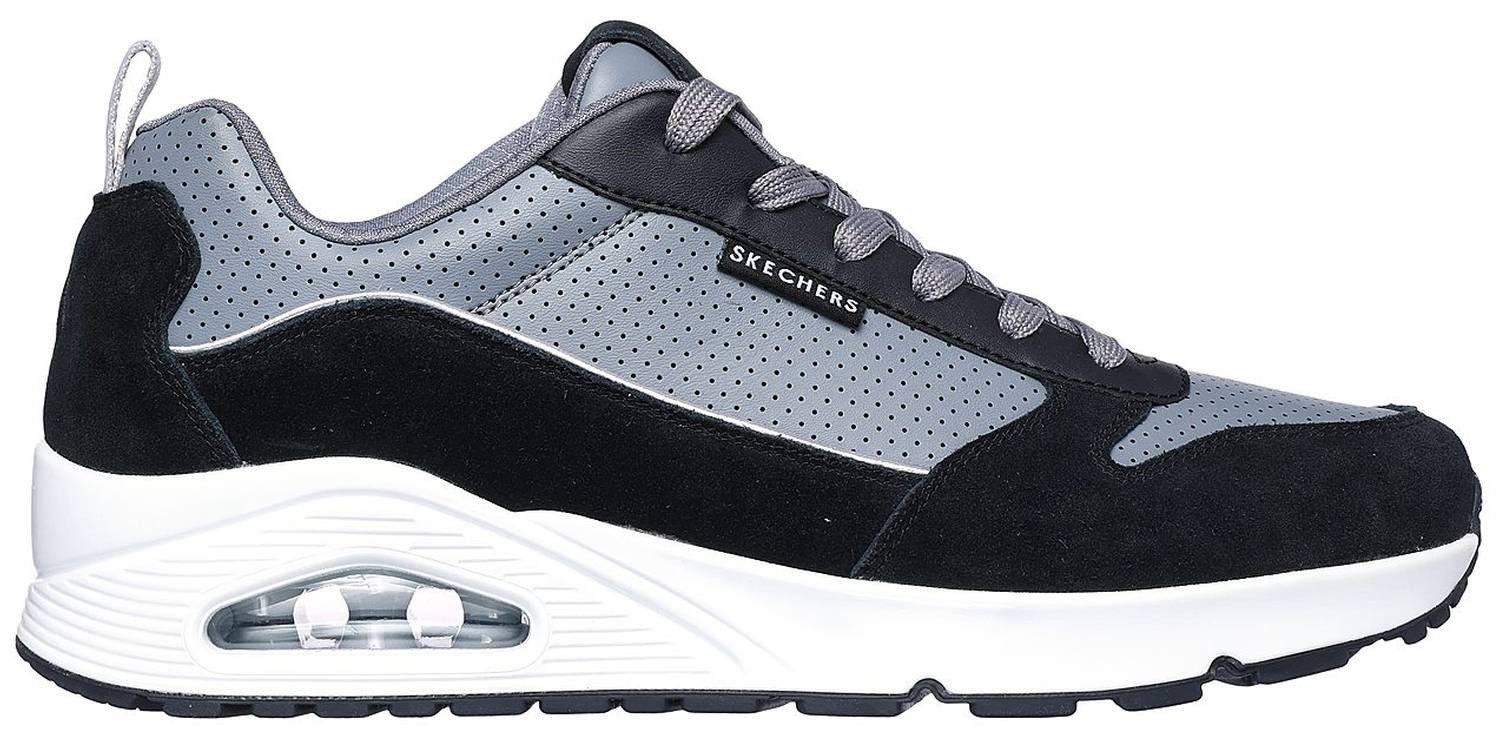 Skechers Uno Stacre 2.0 Black Размер EU 47,5 - Der Herrenschuh aus Leder und einer Sohle aus Gummi. Schöne Sneaker Low mit Innenmaterial aus Synthetik.Größe | 47,5 |
