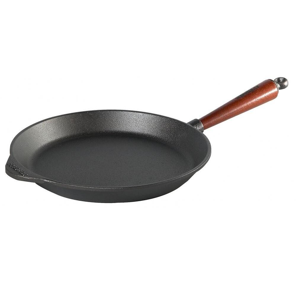 Skeppshult Bratpfanne (18 cm / 3,5 cm) aus Gusseisen mit Holzgriff und schrägem Rand. Ideal zum krossen Braten von Fleisch und Gemüse. Hervorragende Wärmespeicherung. Handgegossener Boden, für alle Herdarten geeignet. 25 Jahre Garantie auf das Gusseisen. Hinweis: Nicht für den Ofen geeignet wegen des Holzgriffs.