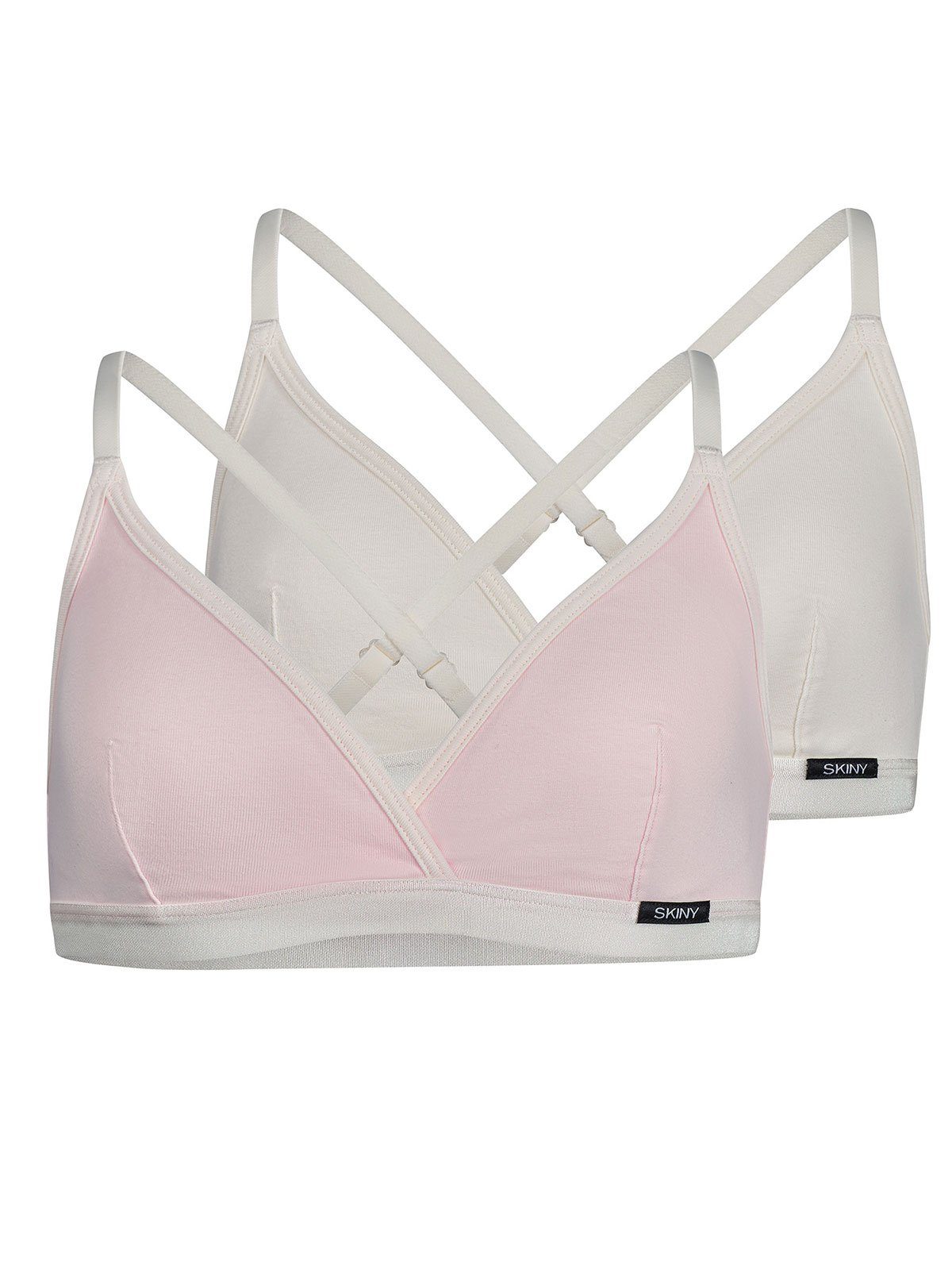 Girls Bustier herausn. Pads 2er Pack von der Marke Skiny aus der Serie Cotton Elastic. Besondere Merkmale des Artikels sind herausnehmbare Pads, überlappender V-Ausschnitt, Unterbrust mit elastischem Gummi für angenehmen Tragekomfort, verstellbare, überkreuzte Träger und kein Rückenverschluss. Die Wäsche von Skiny ist frech, bequem und umkompliziert. Hergestellt, um mit viel Liebe und Selbstbewusstsein getragen zu werden. Hochwertig verarbeitete Materialien für jeden Lifestyle.