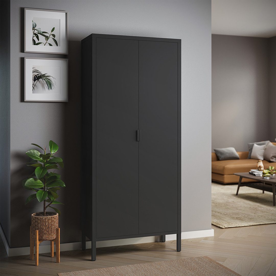 Ausstattung | mit Magnetverschluss 4 Einlegeböden 2 Kleiderstangen |