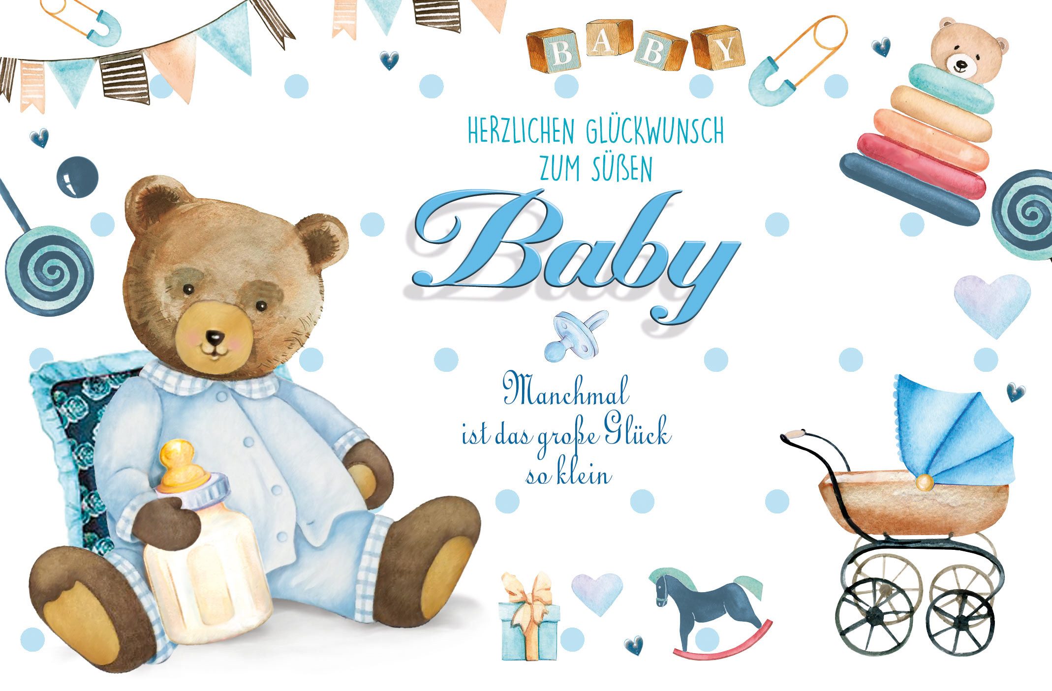 Glückwunschkarte zur Geburt im Format 11,5 x 17,5cm mit Briefumschlag
