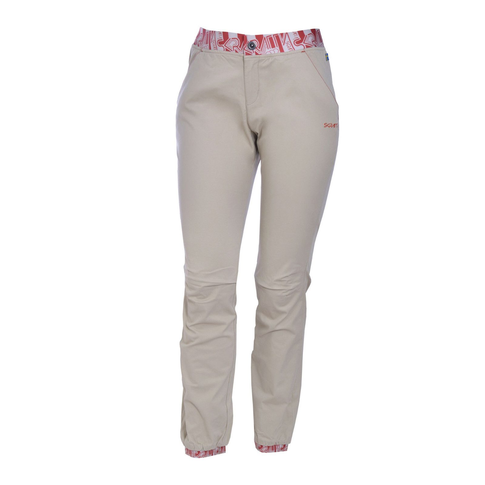 Die Women’s Pant Svea von Skratta ist eine stylische und sportliche Hose, die man gerne zum Klettern oder in der Freizeit trägt. Dank der hautfreundlichen Baumwolle trägt sie sich weich und angenehm auf der Haut. Eine ideale Passform und maximale Bewegungsfreiheit sind durch den Elasthan-Anteil im Gewebe gegeben. Große Schritte und ausladende Beinbewegungen beim Klettern am Fels oder in der Halle sind daher kein Problem. Der breite, elastische Bund, die elastischen Beinabschlüsse und die vorgeformten Knie machen die lange Kletterhose noch bequemer.
