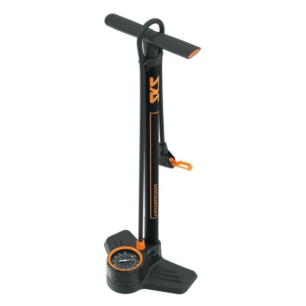 • SKS Standpumpe Airkompressor 10 bar DV/SV/AV, 650mm, mit Manometer, schwarz/orange