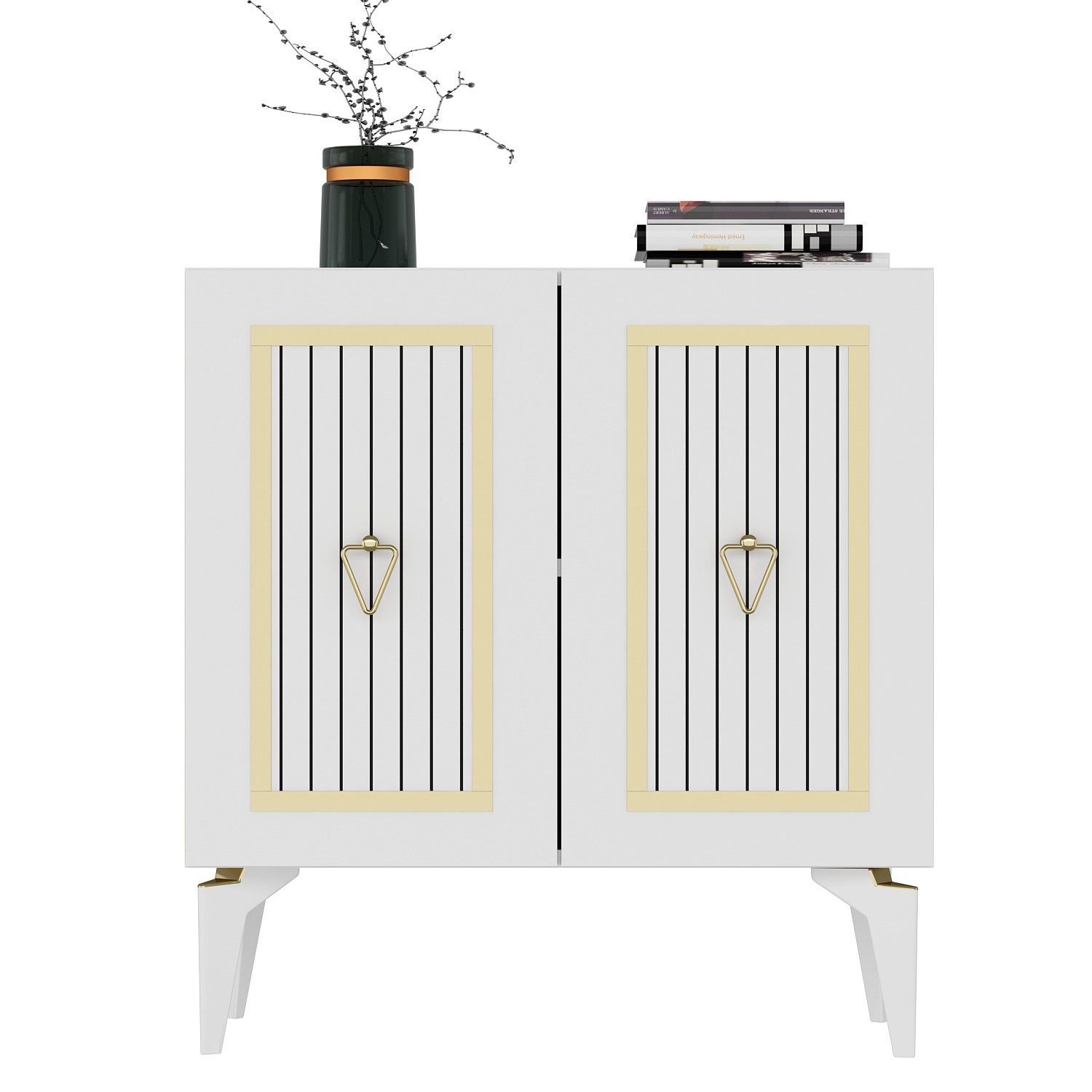 Unsere Konsole besteht aus 100% melaminharzbeschichteten Spanplatten und ist so gebaut, dass sie den Test der Zeit übersteht. Die Dicke von 18 mm sorgt für außergewöhnliche Robustheit und bietet Ihnen ein zuverlässiges und langlebiges Möbelstück. Die Farbkombination aus Weiß und Gold strahlt Opulenz und Raffinesse aus und wertet Ihren Wohnraum sofort ästhetisch auf.