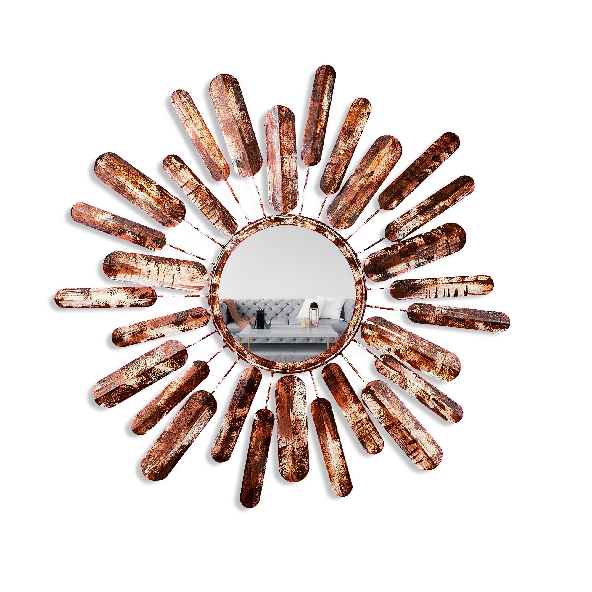 Jeder dekorative Spiegel wird in sorgfältiger Handarbeit von qualifizierten Kunsthandwerkern hergestellt, um außergewöhnliche Qualität und Haltbarkeit zu gewährleisten. Hergestellt aus 100% Metall, strahlt dieser Spiegel einen zeitlosen Charme aus, der mühelos die Ästhetik Ihres Hauses verbessern wird.