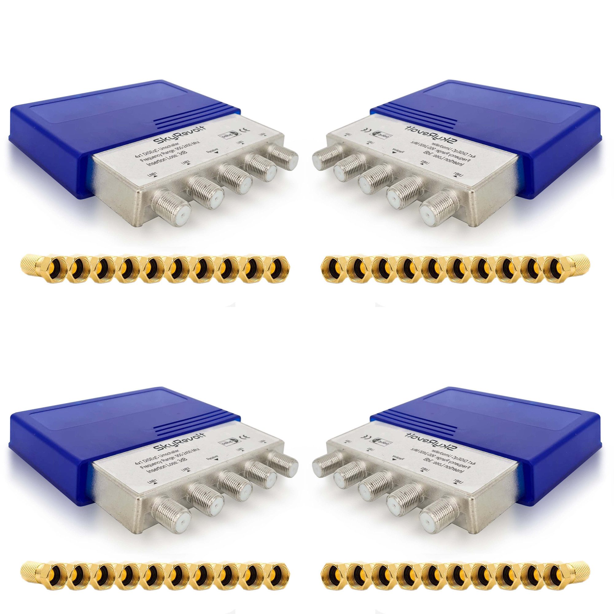Lieferumfang | 4x SkyRevolt 4x1 DiSEqC Schalter mit Wetterschutzgehäuse,4x Originalverpackung,40x F-Stecker |