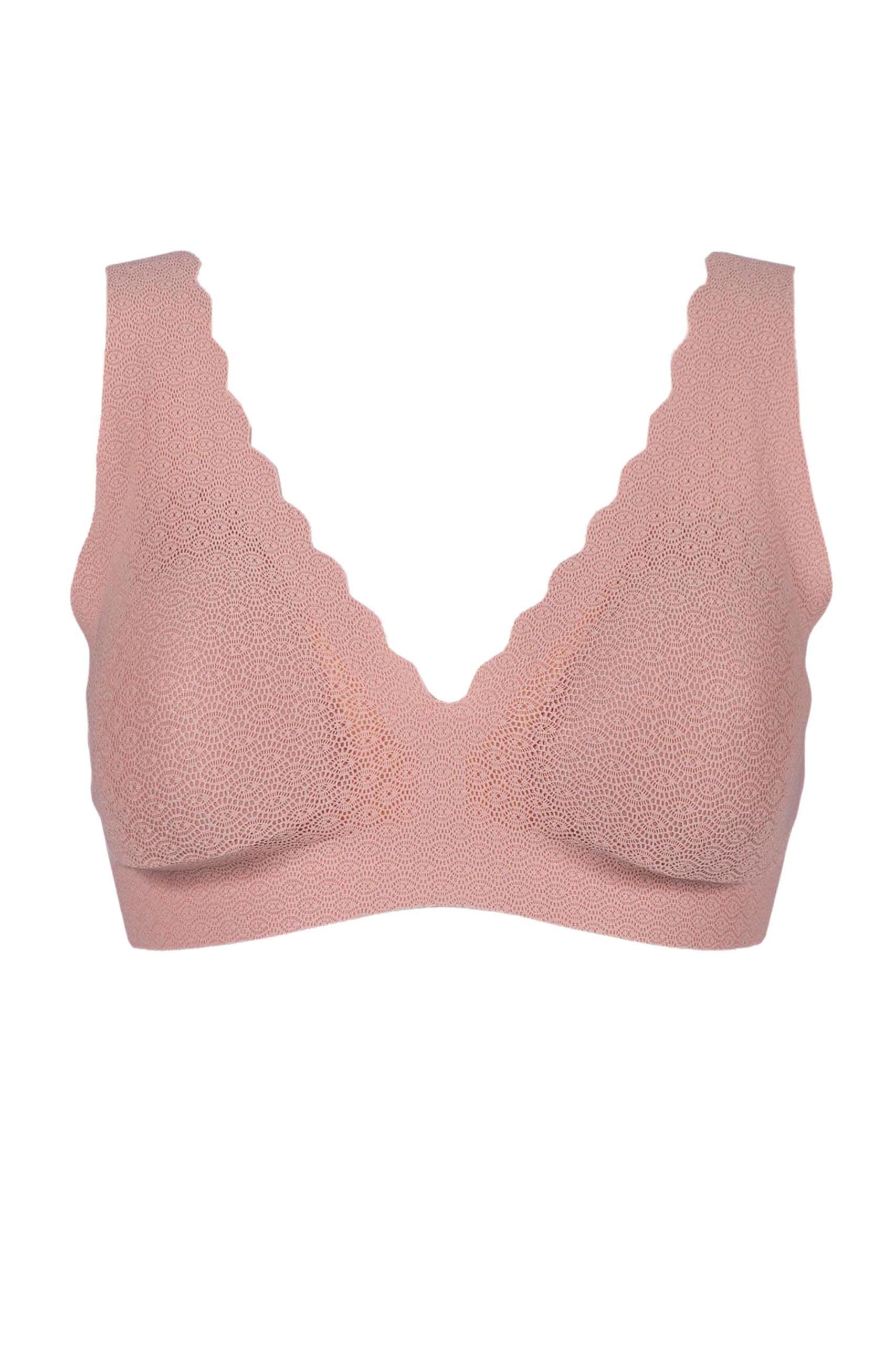 Das sloggi ZERO FEEL LACE Bralette zeichnet sich durch sein elegantes Design mit V-Ausschnitt vorne und hinten aus. Die leichten, gepolsterten Cups mit zartem Mesh-Einsatz bieten nicht nur Komfort, sondern auch eine sanfte Unterstützung, während der abgerundete Spitzensaum für eine schöne und glatte Ausschnittkante sorgt.