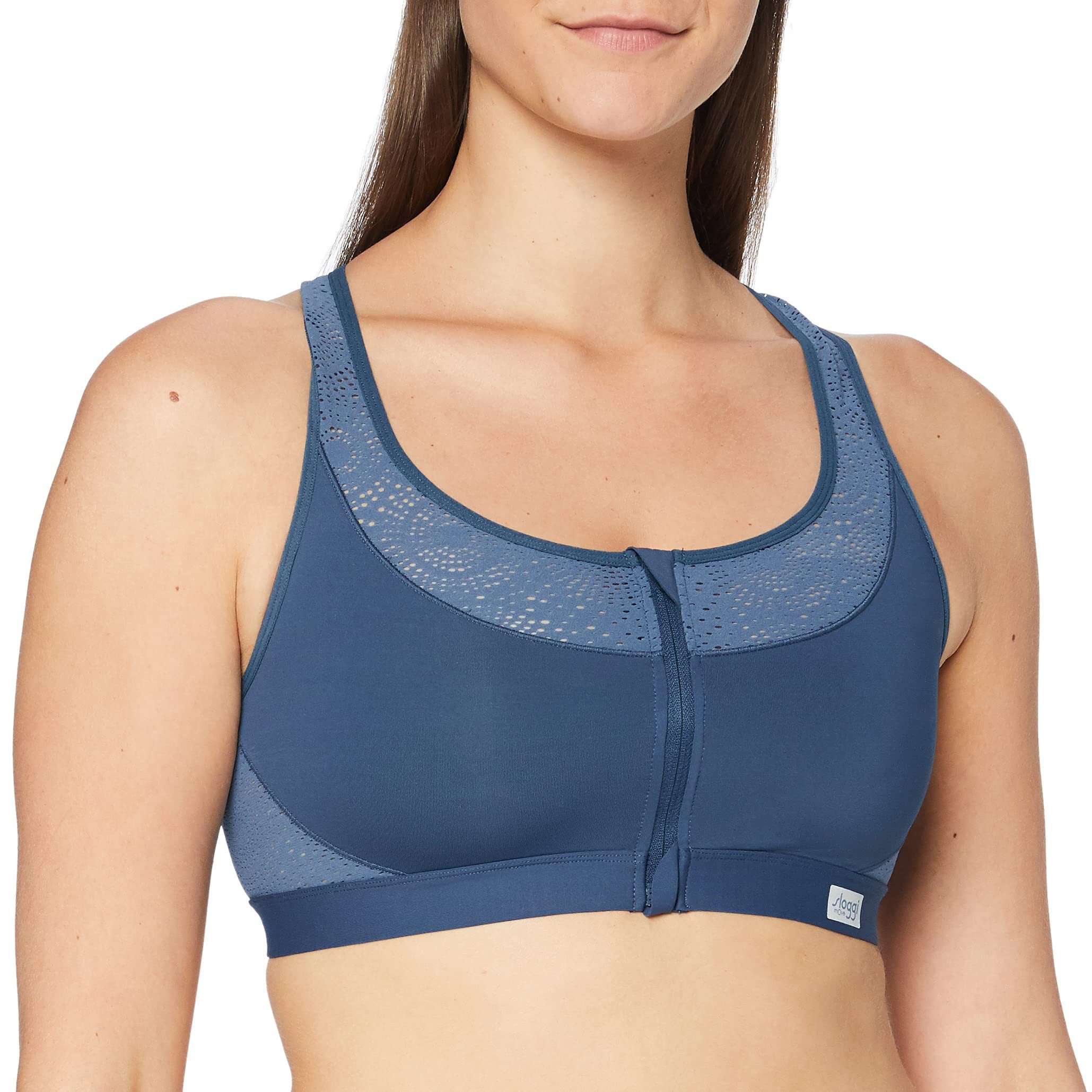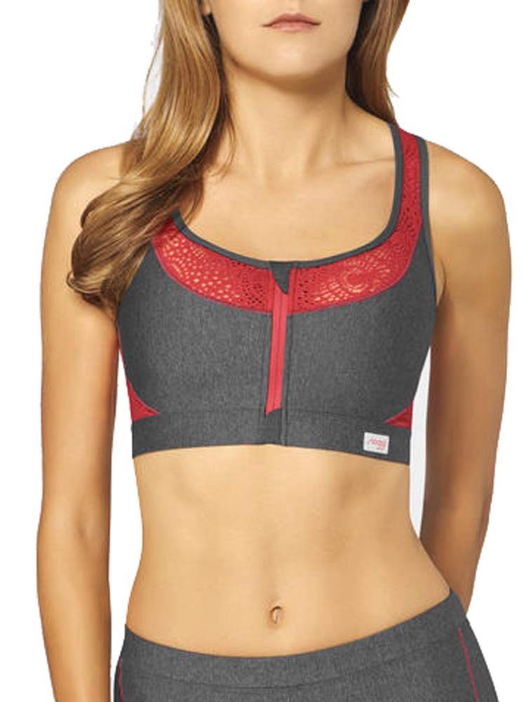 Breite Träger im Tank-Stil ohne Verstellmöglichkeit und ein komfortabler, breiter Unterbrustbund bieten zusätzlichen Halt. Der vordere Reißverschluss ermöglicht ein einfaches An- und Ausziehen.