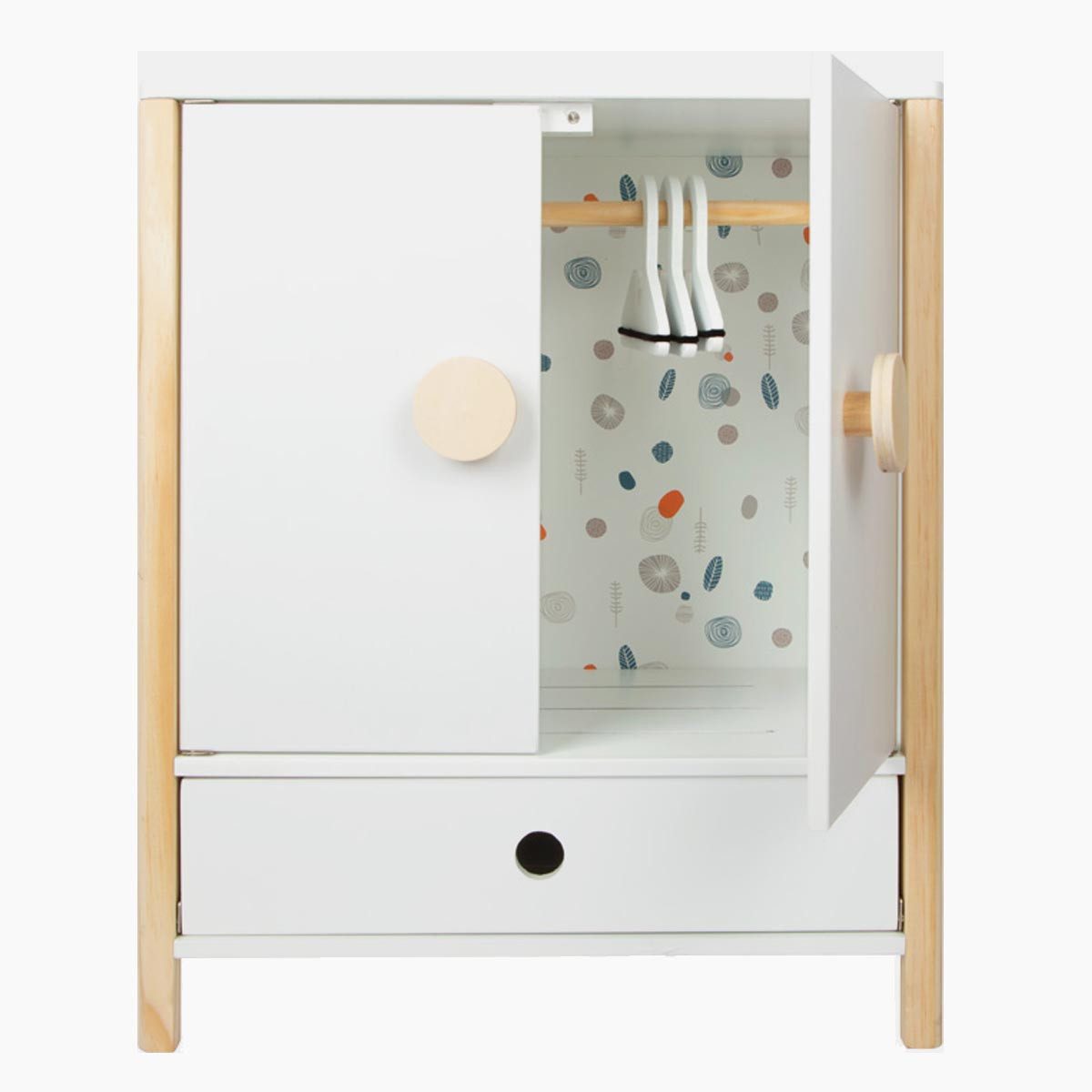 Der Schrank lässt sich mit anderen Möbelstücken der „Little Button“-Reihe kombinieren. So können Kinder ihr Puppenzimmer Schritt für Schritt erweitern und individuell gestalten – für langanhaltenden Spielwert und viele Ideen.
