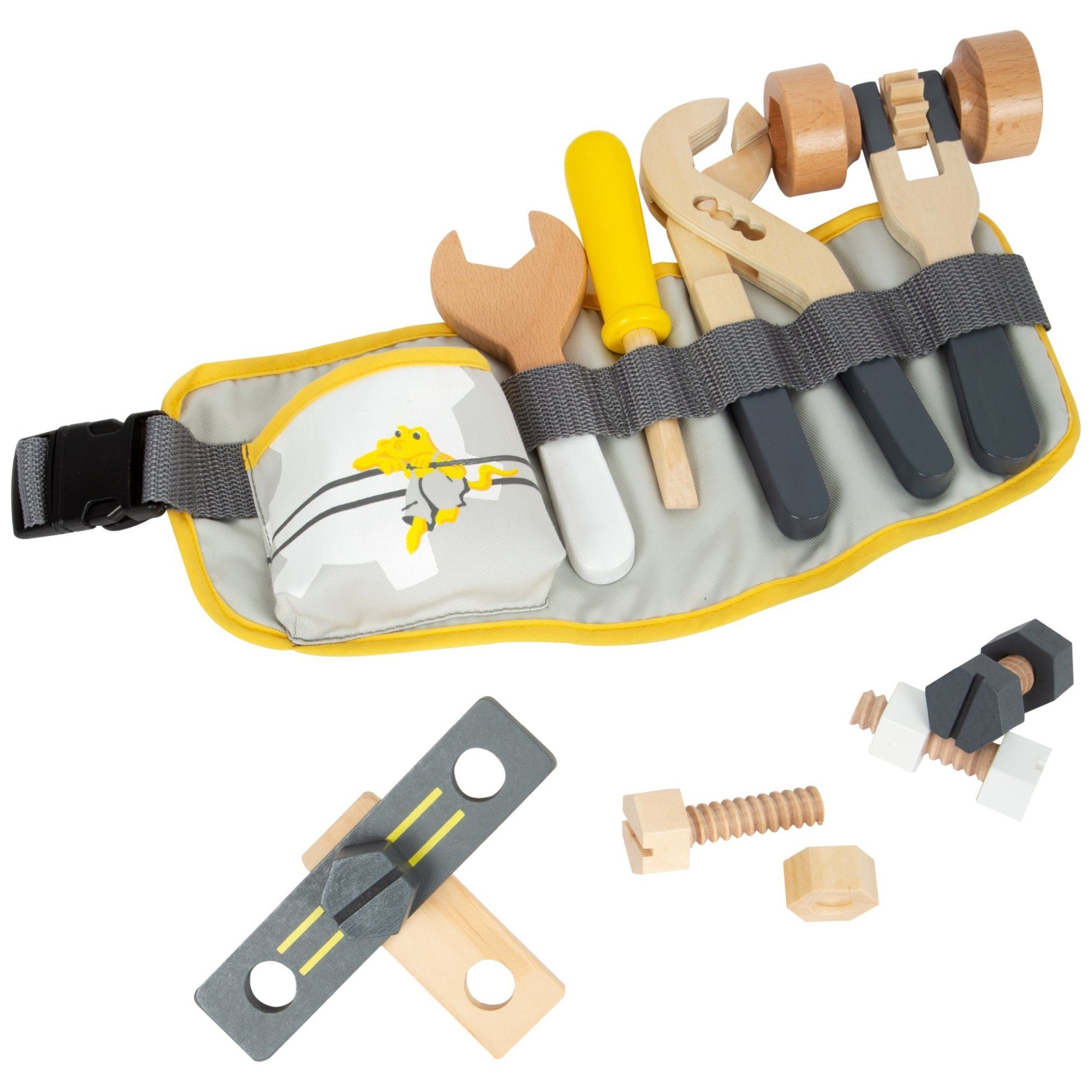 Ein praktischer Werkzeuggürtel für kleine Handwerker! Der verstellbare Werkzeuggürtel in klassischen Werkstattfarben ermöglicht es deinem Kind, die Hände frei zu haben und das Werkzeug jederzeit griffbereit zu haben. Der Gürtel besteht aus hochwertigem Stoff und ist mit einer realitätsnahen Miniwob-Illustration verziert. In den zahlreichen Taschen und Schlaufen finden alle Werkzeuge und das Zubehör aus Schrauben, Lochleisten und Holz ihren Platz. Besonders hervorzuheben ist die Wasserpumpenzange und die Ratsche, die im Set enthalten sind. Der Gürtel lässt sich mit der praktischen Klickschnalle einfach öffnen und schließen. Mit einer Размер von ca. 78 x 15 x 1 cm bietet er genug Platz für das komplette Werkzeugequipment und ist somit immer griffbereit. Der Werkzeuggürtel eignet sich nicht nur zum Spielen zu Hause, sondern ist auch für unterwegs ideal geeignet. So kann dein Kind auch unterwegs professionell werkeln!