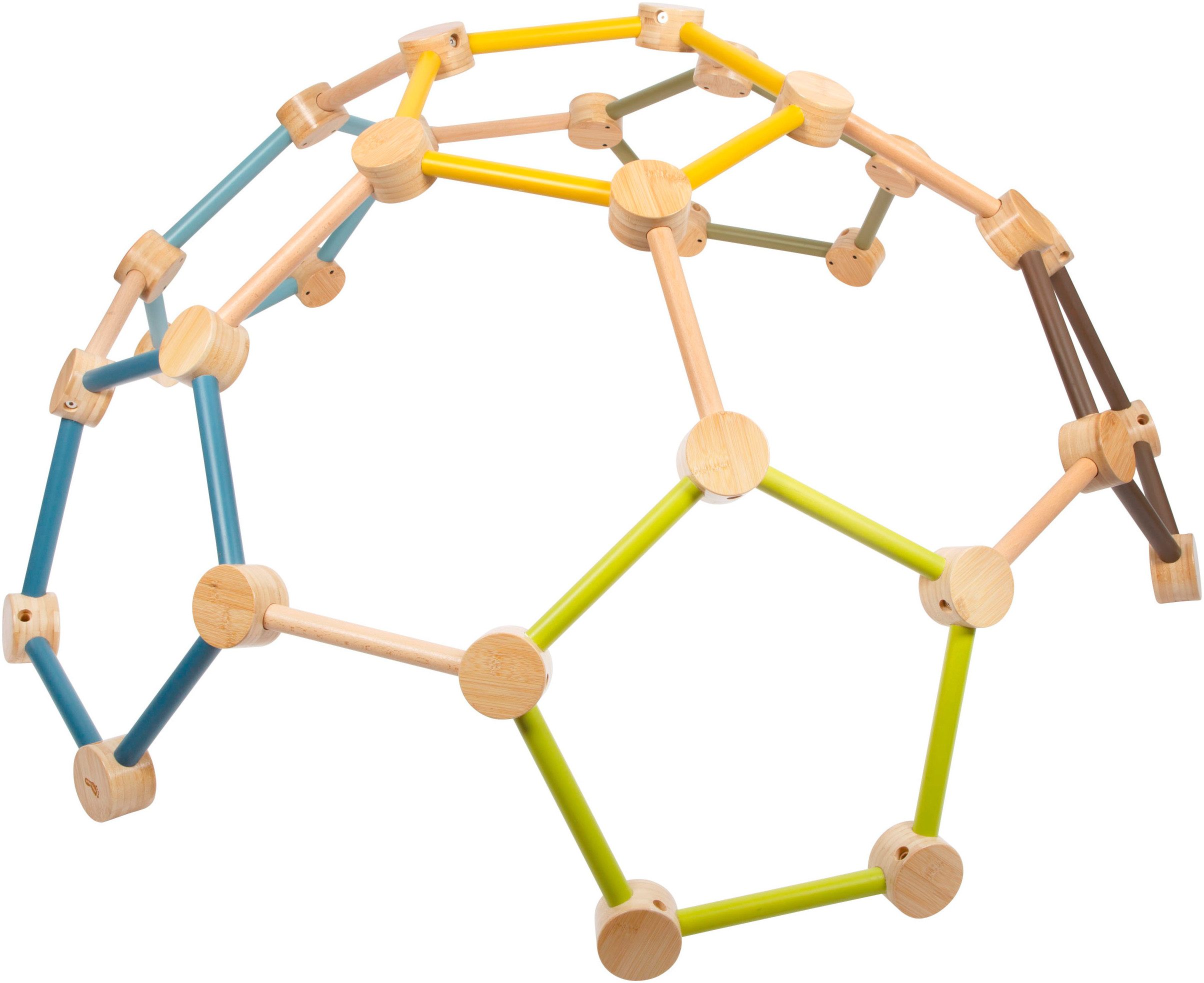 Spielerisch neue Höhen erobern! Diese Polygon-Kletterkuppel ist als vielseitiges Klettergerüst der perfekte Begleiter für abenteuerlustige Kinder. Ob als Klettergerüst, geheimes Versteck oder Ort für fantasievolle Rollenspiele – die geometrische Kletterkuppel bietet endlose Spieloptionen und viele Möglichkeiten zur Schulung der motorischen Fähigkeiten. Die einfache Montage ermöglicht einen schnellen Start ins Kletterabenteuer, während stabile Verbindungen Sicherheit für kleine Gipfelstürmer gewährleisten. Hergestellt aus robustem Vollholz, fügt sich die Kuppel dank der Kombination aus viel naturbelassenem Holz und den typischen „Adventure“-Farben harmonisch in jedes Kinderzimmer ein und überzeugt dabei mit robuster Langlebigkeit und ansprechender Optik. Ein innovatives Aktivitätsspielzeug für endlose Spielstunden. Einfach zu montieren durch vormontierte Elemente. Freude an Bewegung! Die Kletterkuppel – auch als Kletterdome oder Geodome bekannt – ist nicht nur ein tolles Holzspielzeug, sondern eine Investition in eine gesunde und aktive Kindheit, denn sie bietet die perfekte Verbindung aus Bewegung, Spaß und Sicherheit. Während Kinder die stabilen Holzstangen erklimmen, trainieren sie Gleichgewichtssinn, Kraft, Koordination und motorische Fähigkeiten. Belastbarkeit 50 kg.