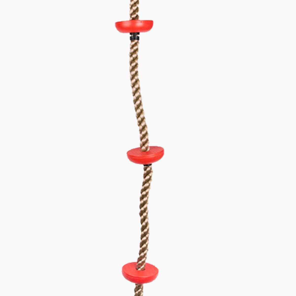 Das Seil misst ca. 2 Meter in der Длина und ist mit fünf rutschfesten Trittscheiben aus Kunststoff ausgestattet. Kinder ab 3 Jahren können damit erste Kletterversuche wagen oder ihre Fähigkeiten ausbauen. Die roten Trittscheiben setzen nicht nur optische Akzente, sondern verbessern auch die Trittsicherheit.