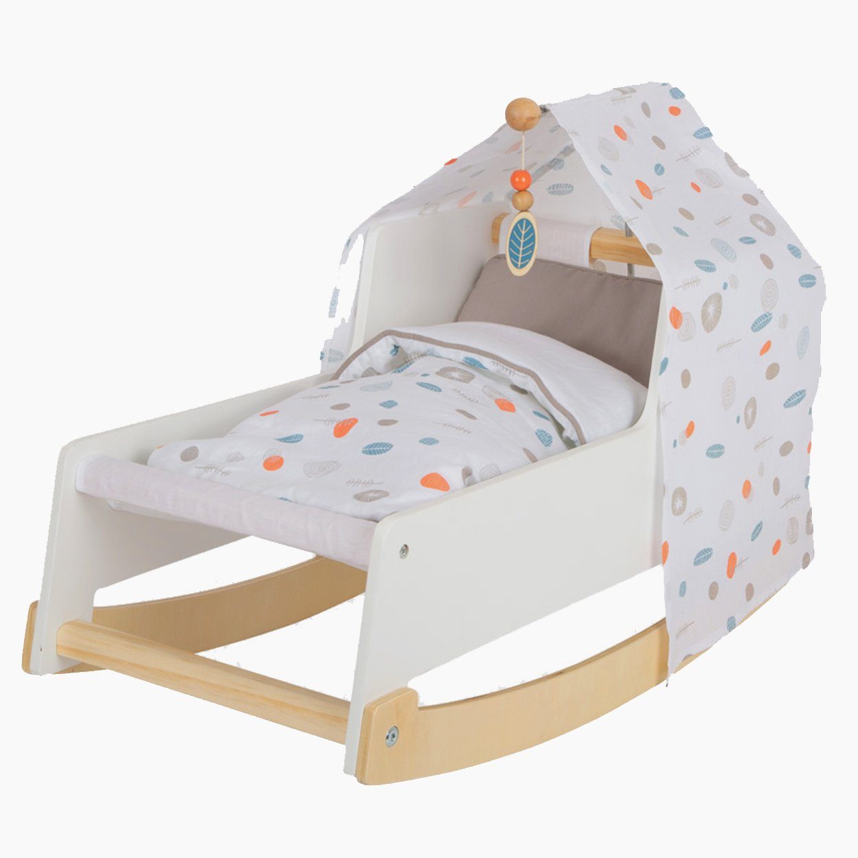 Durch das Einbetten, Zudecken oder Wiegen der Puppe entwickeln Kinder spielerisch Empathie und Verantwortungsbewusstsein. Gleichzeitig wird durch das Auf- und Zuklappen der Wiege sowie durch das Hantieren mit Decken und Zubehör die Feinmotorik geschult – ganz ohne Druck, aber mit viel Freude am Spiel.